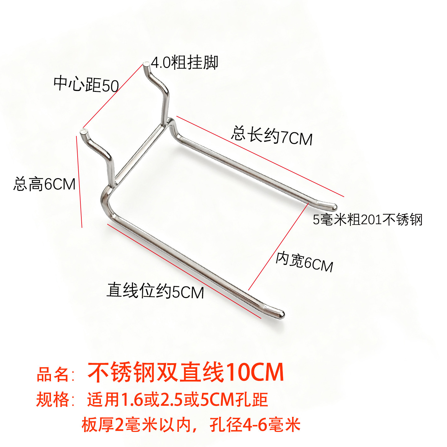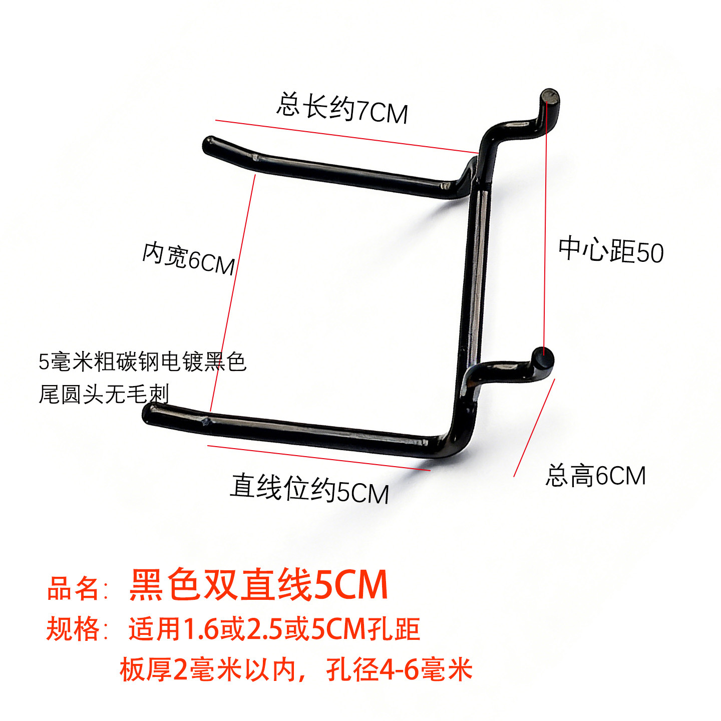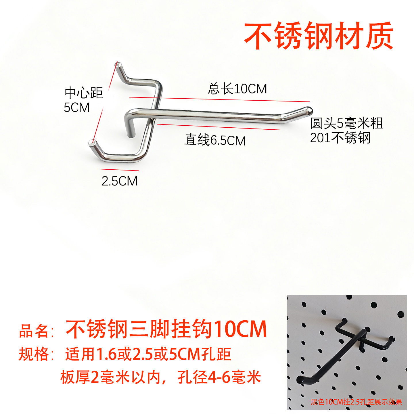 黑色洞洞板单线挂钩金属展示架配件货架圆孔板三脚钩加粗不锈钢
