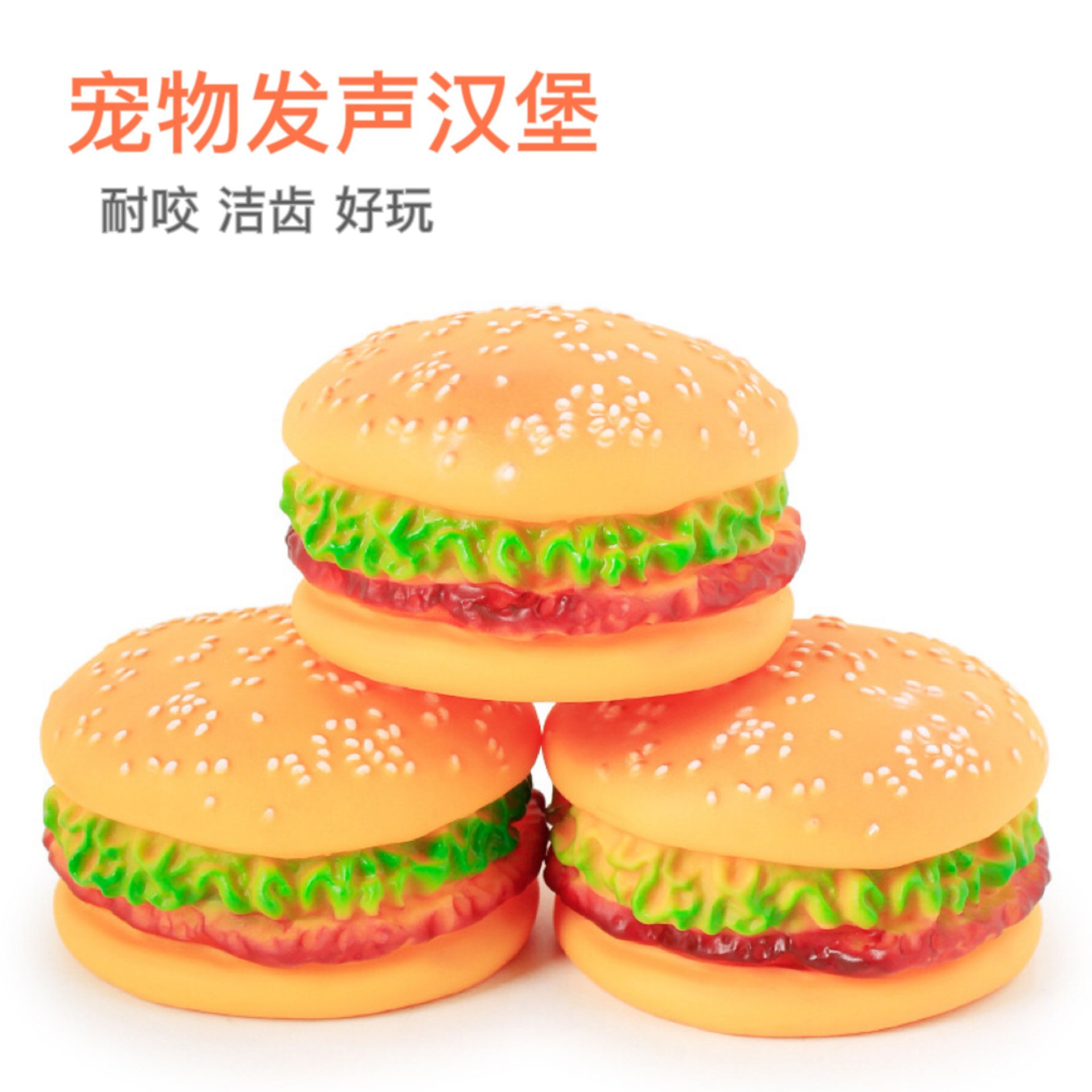 狗狗玩具仿真汉堡 耐咬磨牙发声玩具 搪胶彩色洁齿训练宠物用品