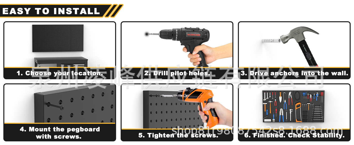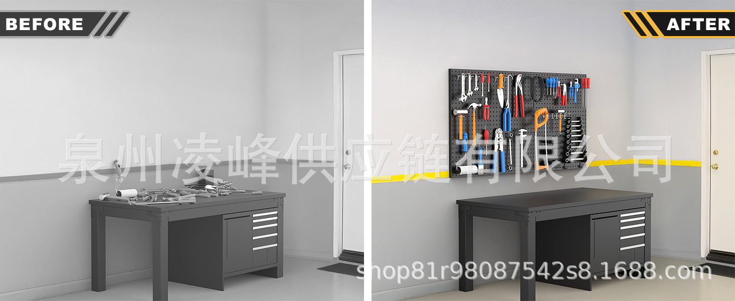 跨境专用金属钉板墙板车库工具收纳洞洞板仓库整理收纳钉板展示架