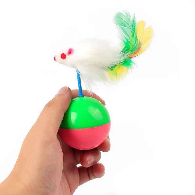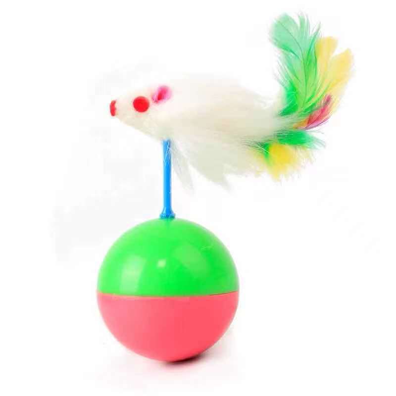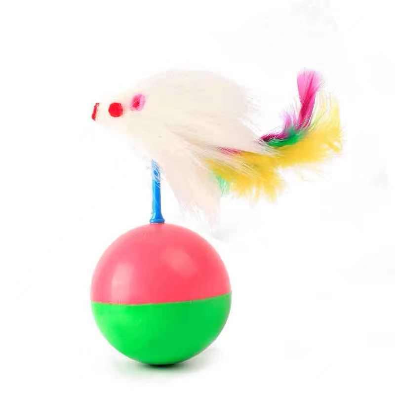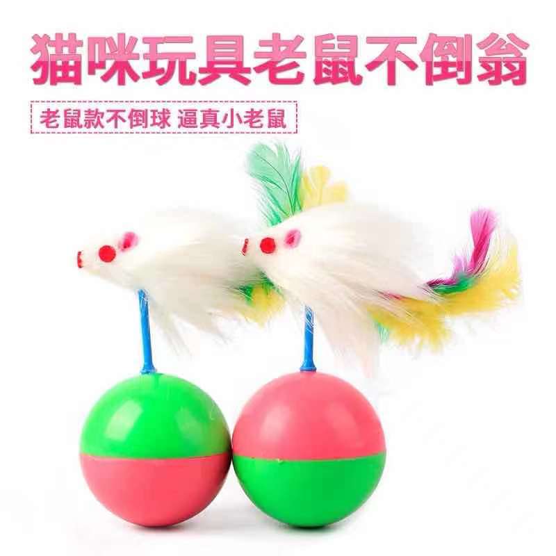 现货批发 新款猫用不倒翁老鼠玩具 彩色羽毛植绒老鼠款不倒翁玩具