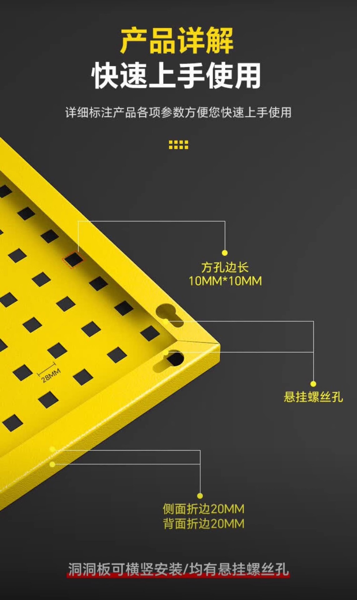 工作台洞洞板五金工具架置物架工具墙电钻扳手收纳展示架方孔加厚
