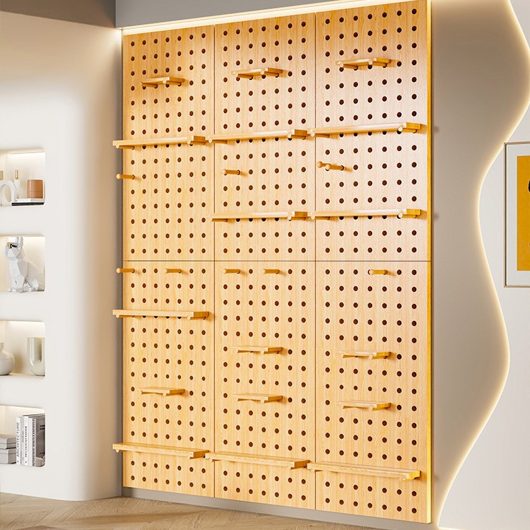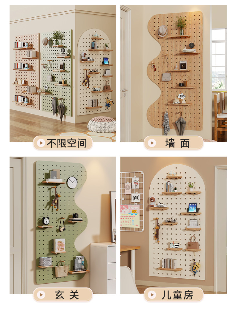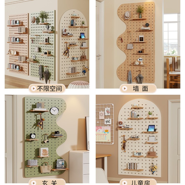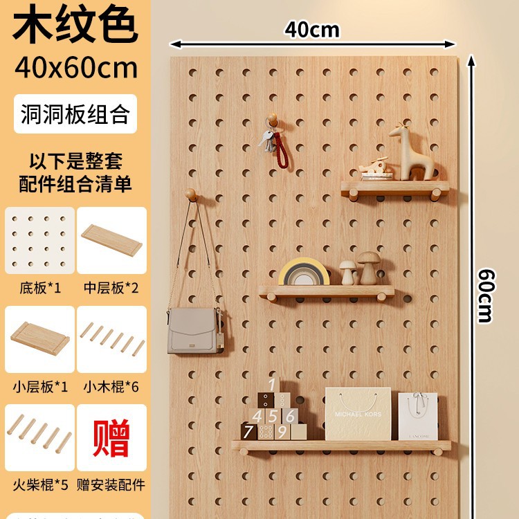 实木洞洞板置物架可定作墙上展示收纳架入户玄关墙面背景装饰挂板