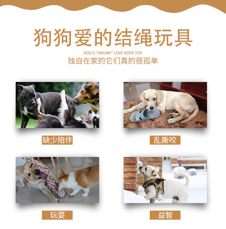 狗狗棉绳玩具边牧金毛耐咬绳结磨牙棒互动中大犬解闷训练宠物用品