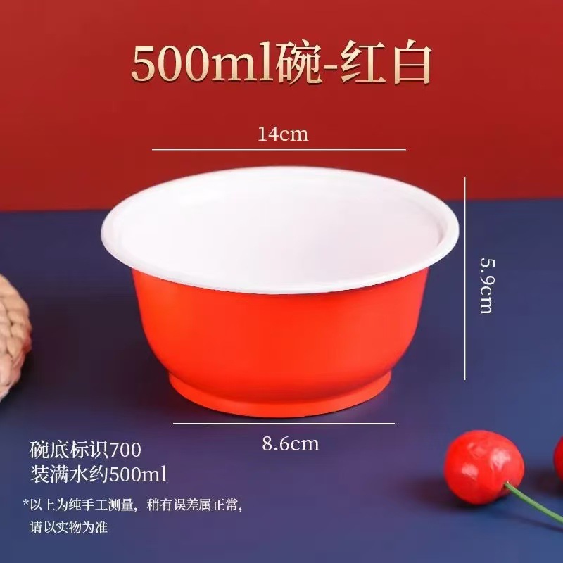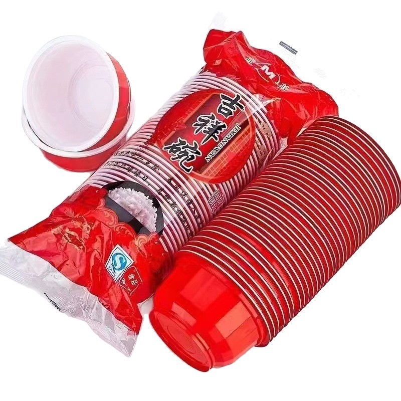 加厚一次性塑料红碗聚餐喜庆圆形碗家用餐具结婚新年圆碗工厂批发
