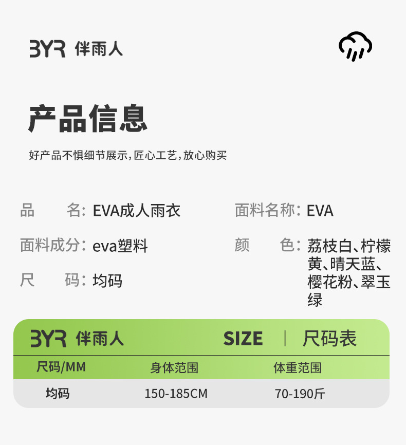 | 均码【真正EVA雨衣】 | USD $0.0 | 2350 piece available |