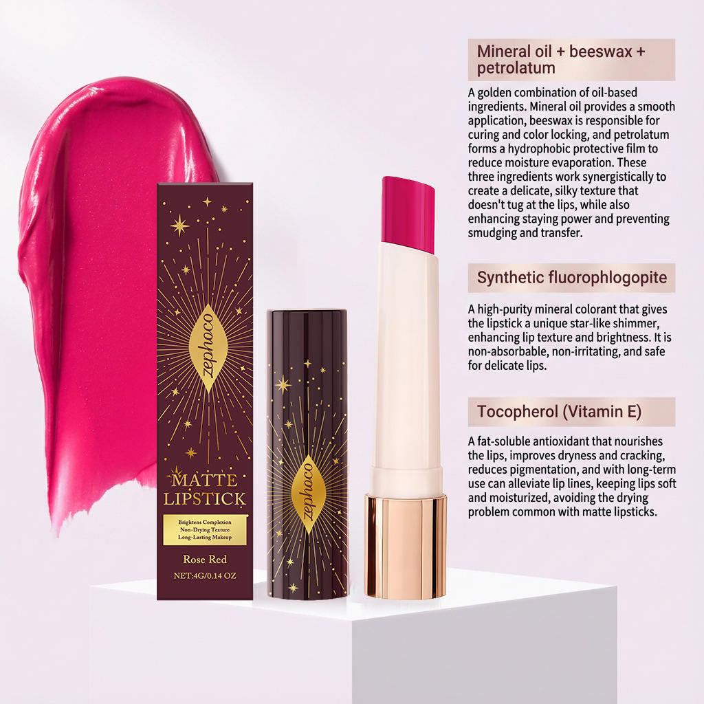 zephoco星芒雾面口红系列 自然显色轻薄雾感唇妆日常通勤便捷口红