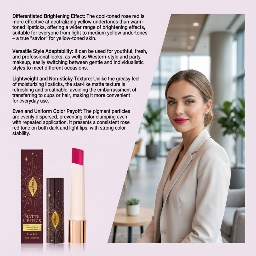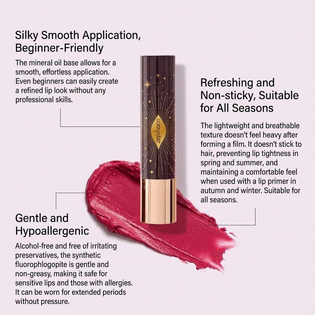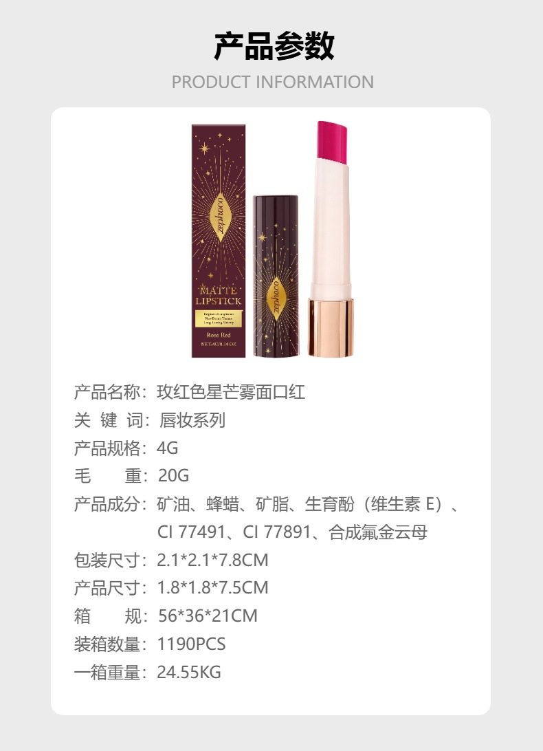 zephoco 玫红色星芒雾面口红 丝滑易涂雾面丝绒哑光唇妆派对适用