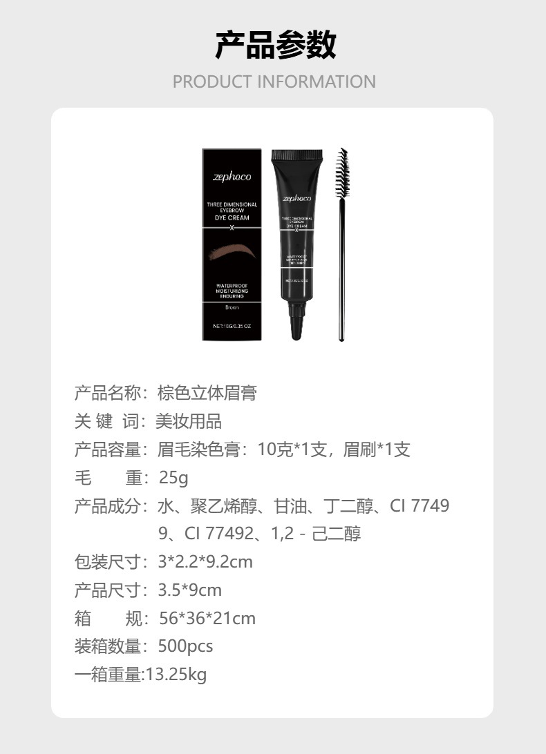 zephoco 棕色立体眉膏 日常修饰自然立体眉形顺滑显色个性眉妆
