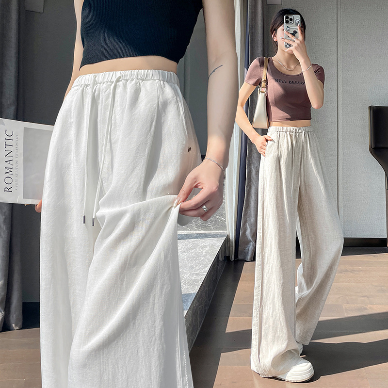 亚麻阔腿裤女装2026夏季莱赛尔天丝简约棉麻休闲垂感直筒拖地裤子