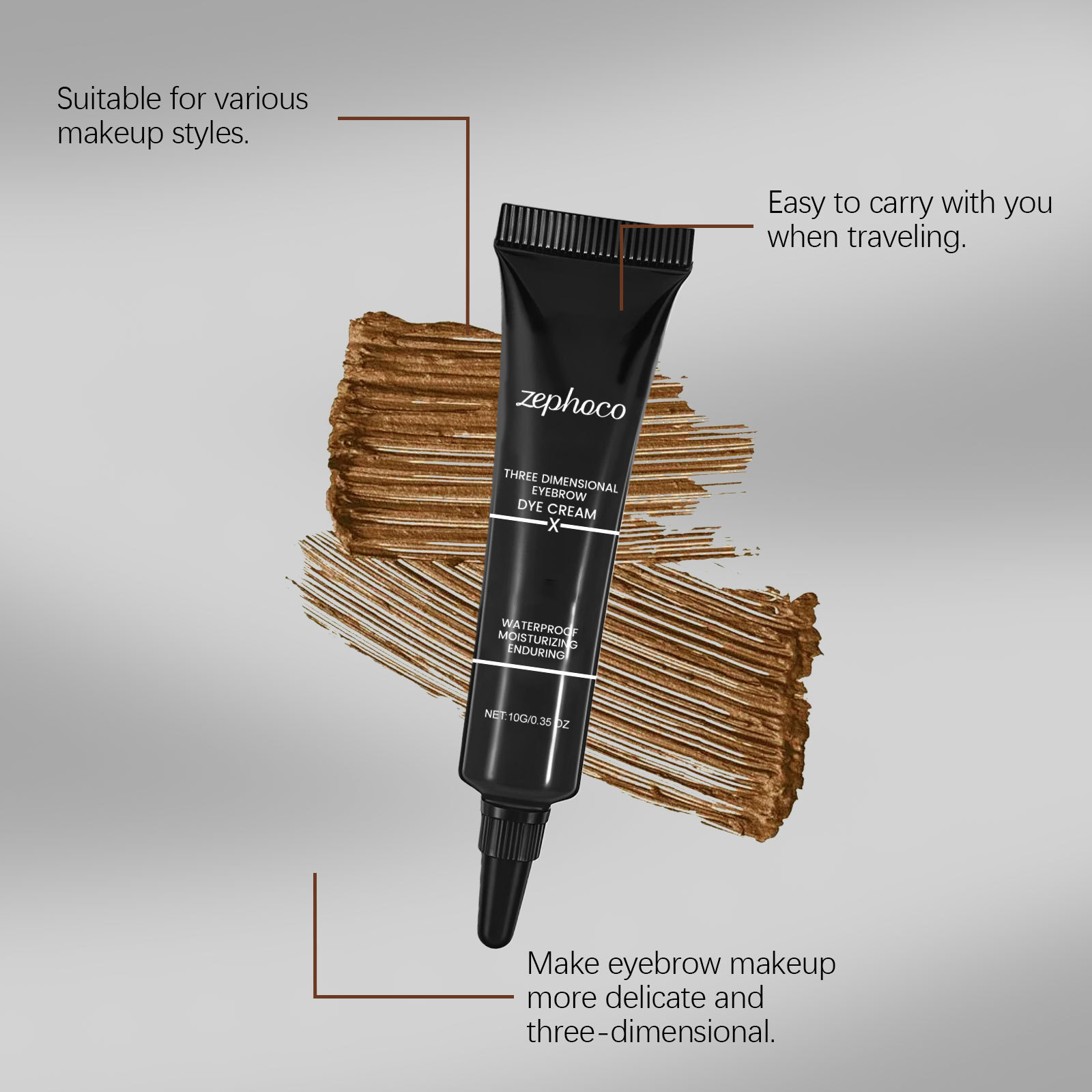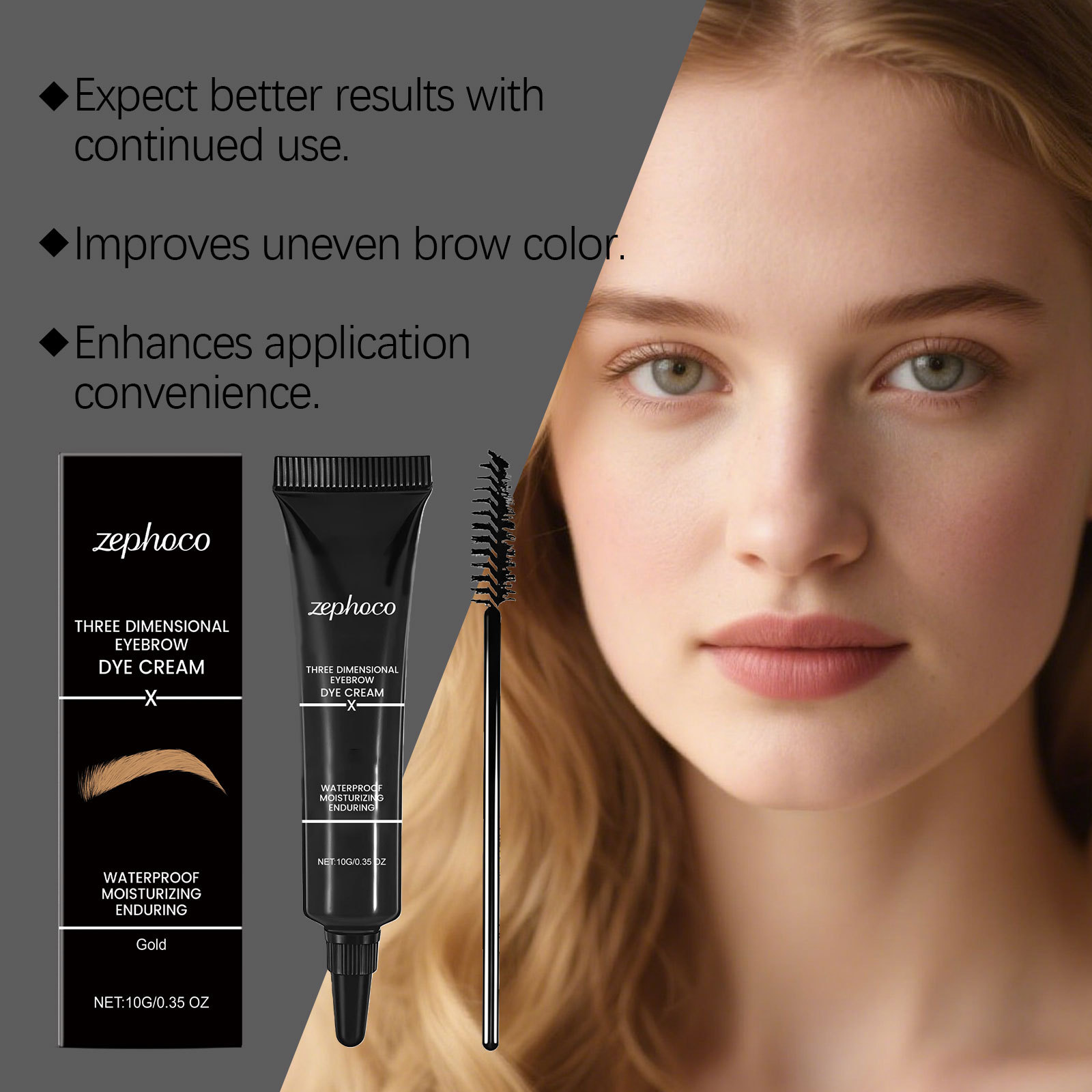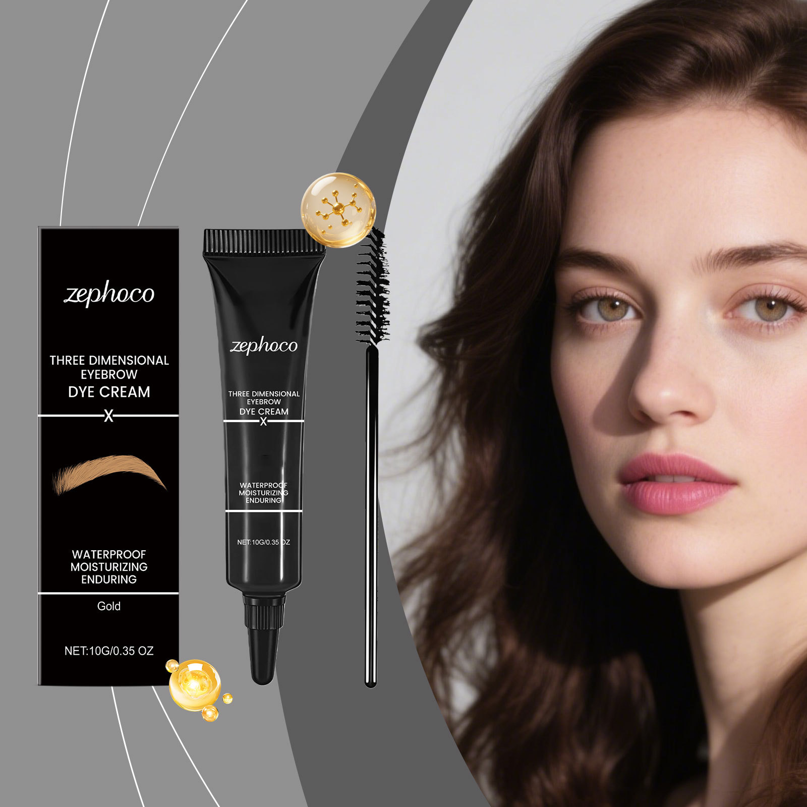 zephoco 金色立体眉膏 轻松勾勒自然眉形易上色持久妆容顺滑眉膏