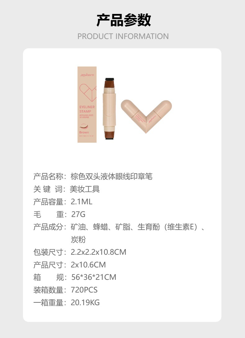 zephoco 棕色双头液体眼线印章笔 自然显色丝滑易上手修饰眼线笔