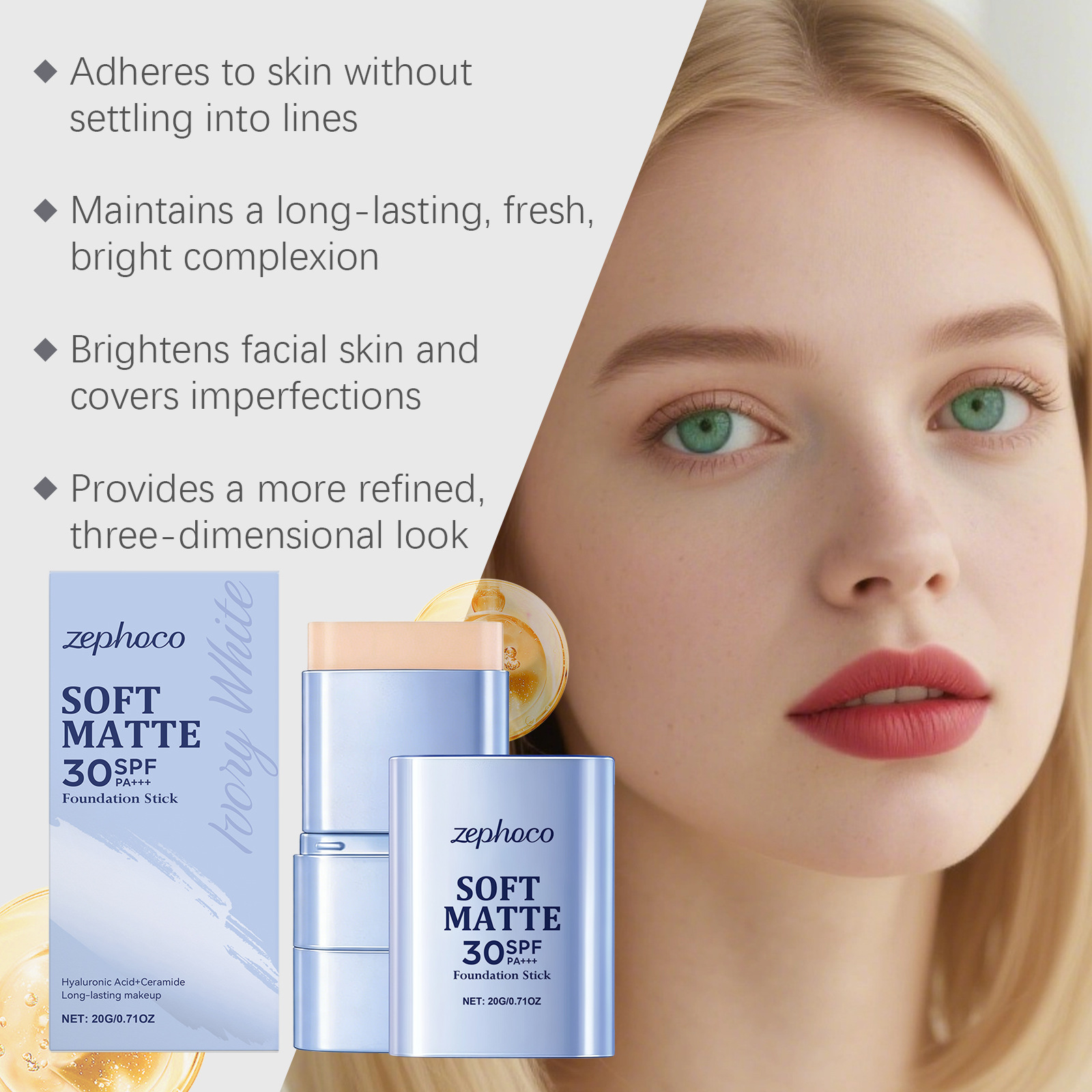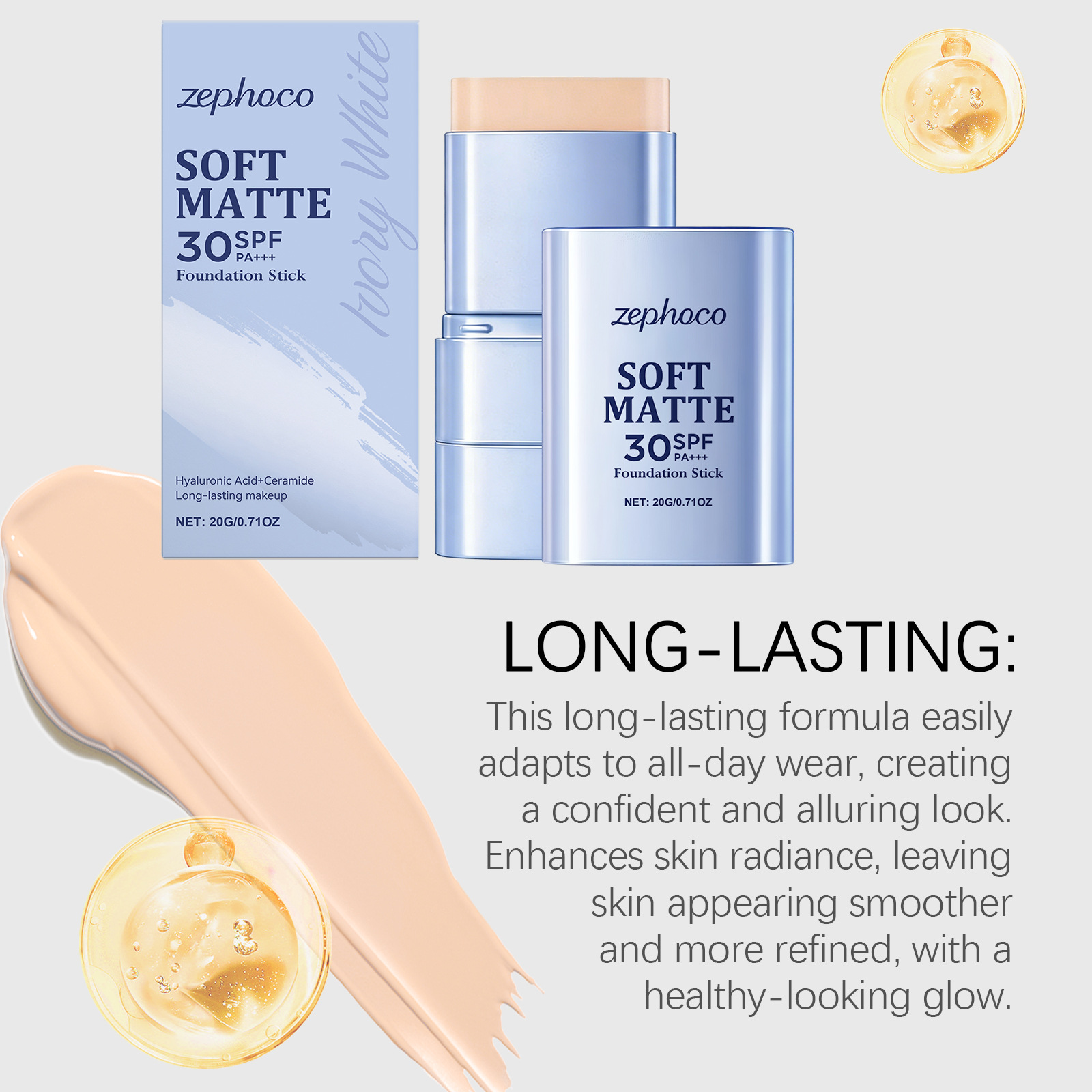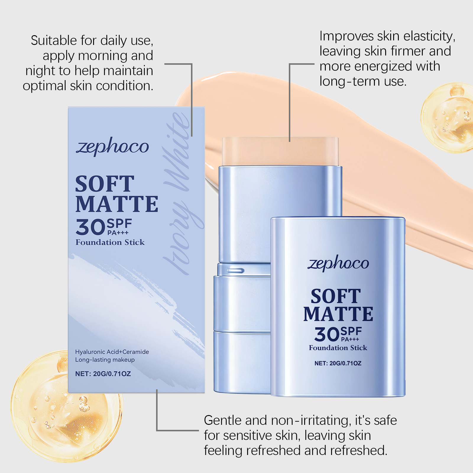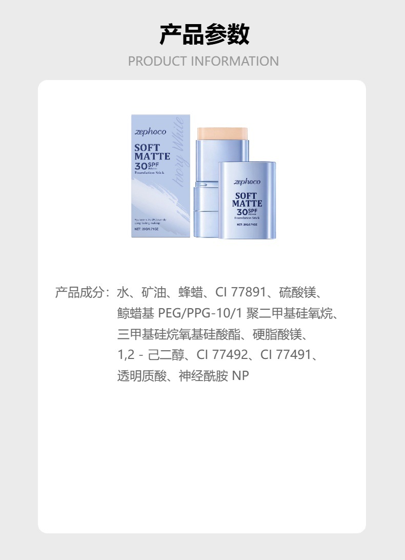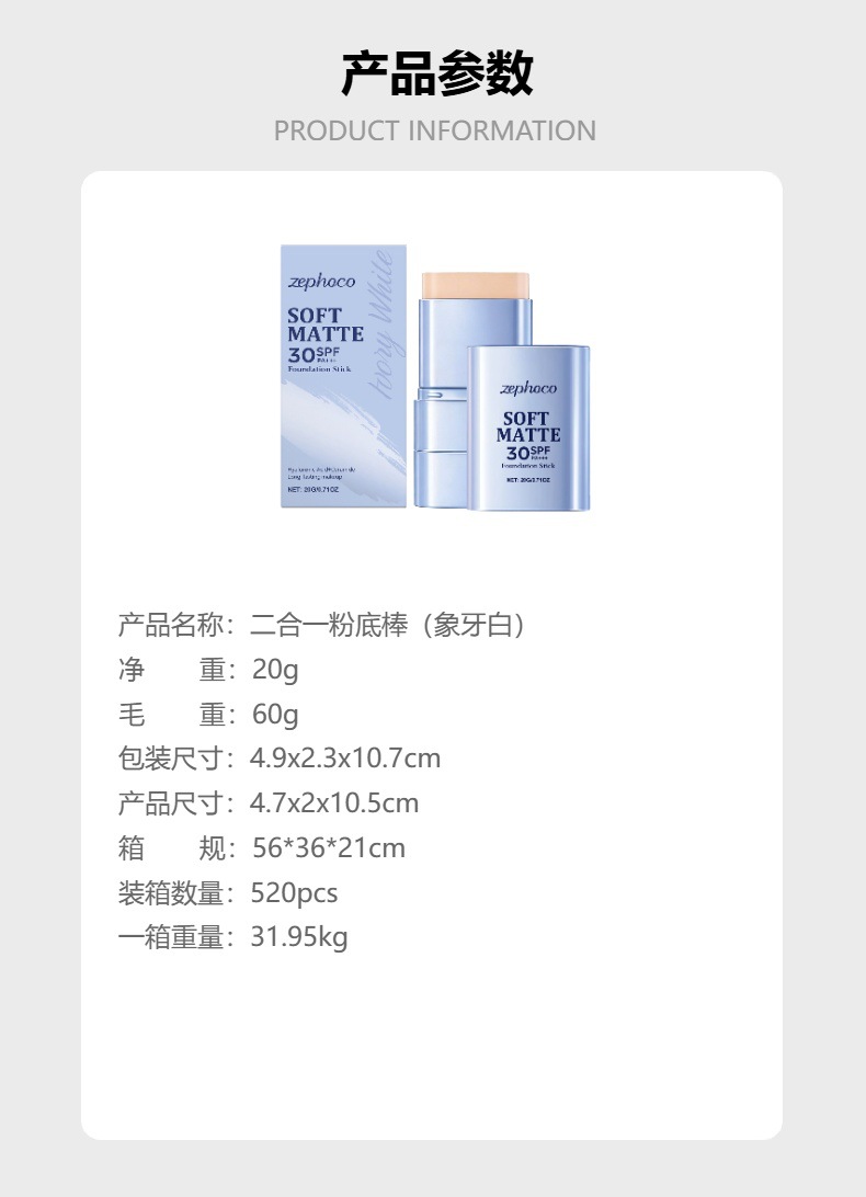 zephoco二合一粉底棒(象牙白)柔雾轻薄自然妆容日常水润粉底棒