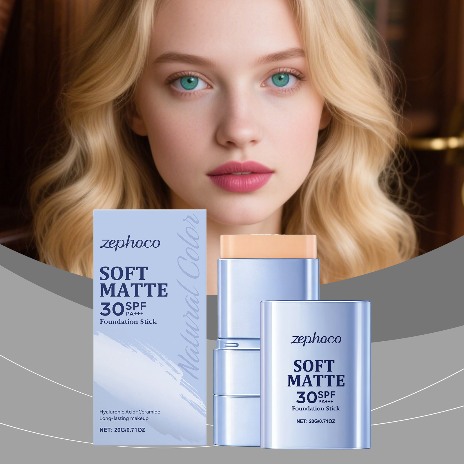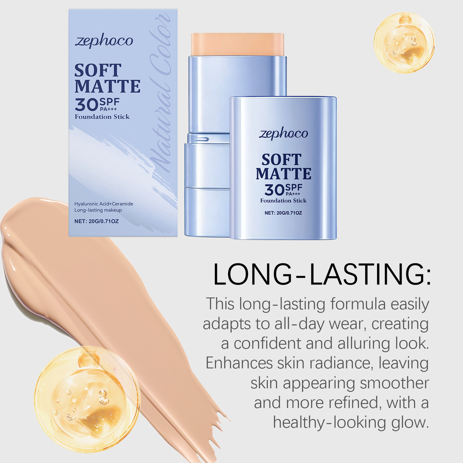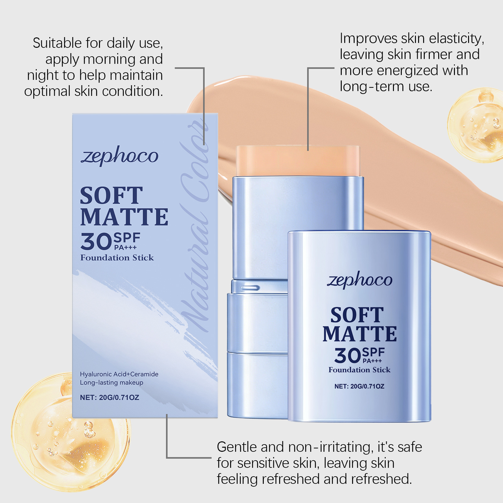 zephoco 二合一粉底棒(自然色)清爽透气底妆服帖水润面部粉底棒