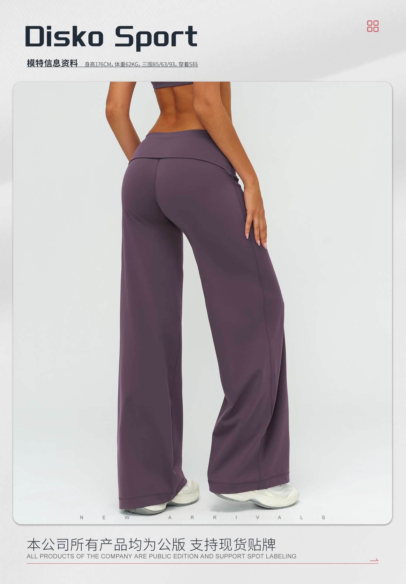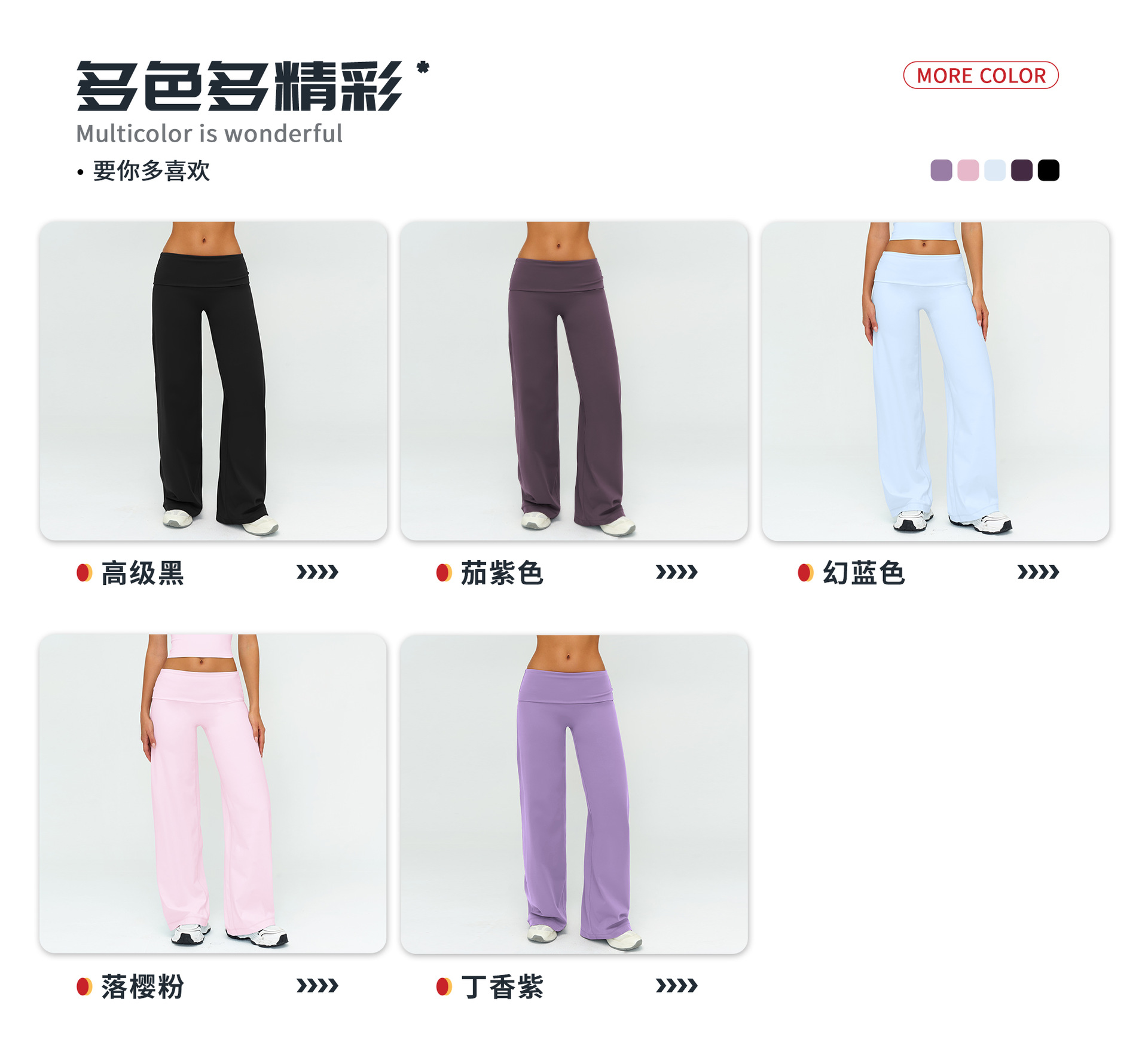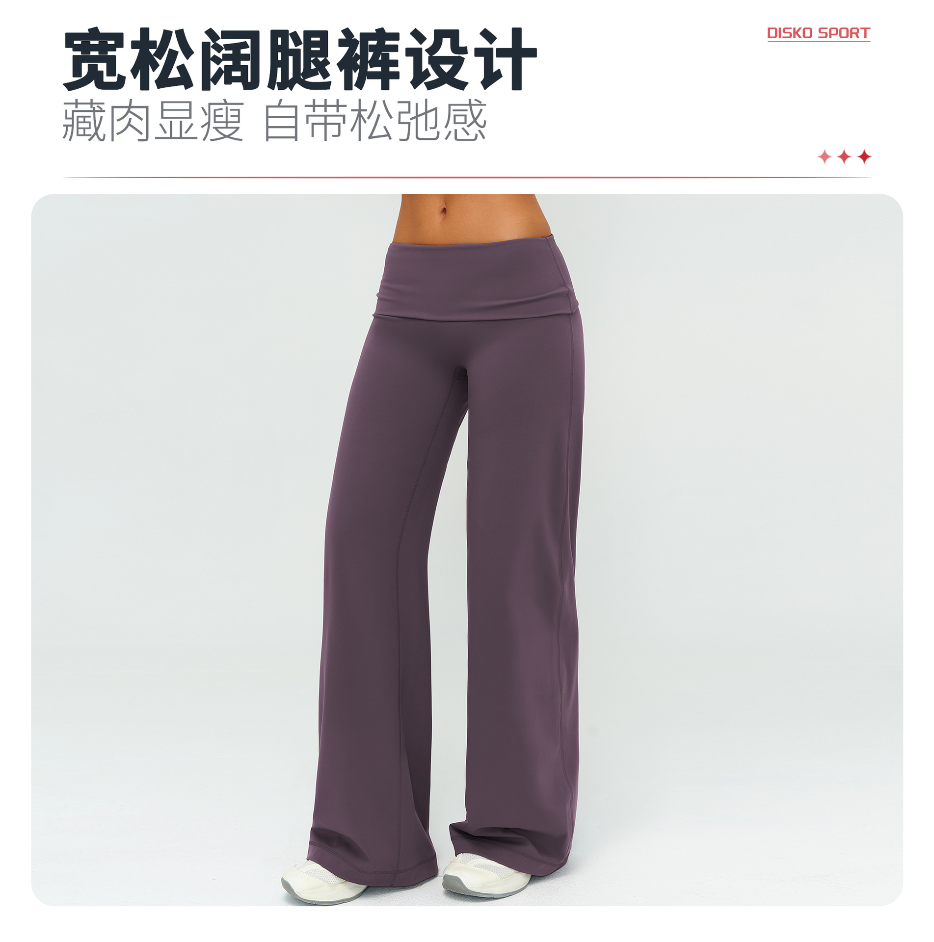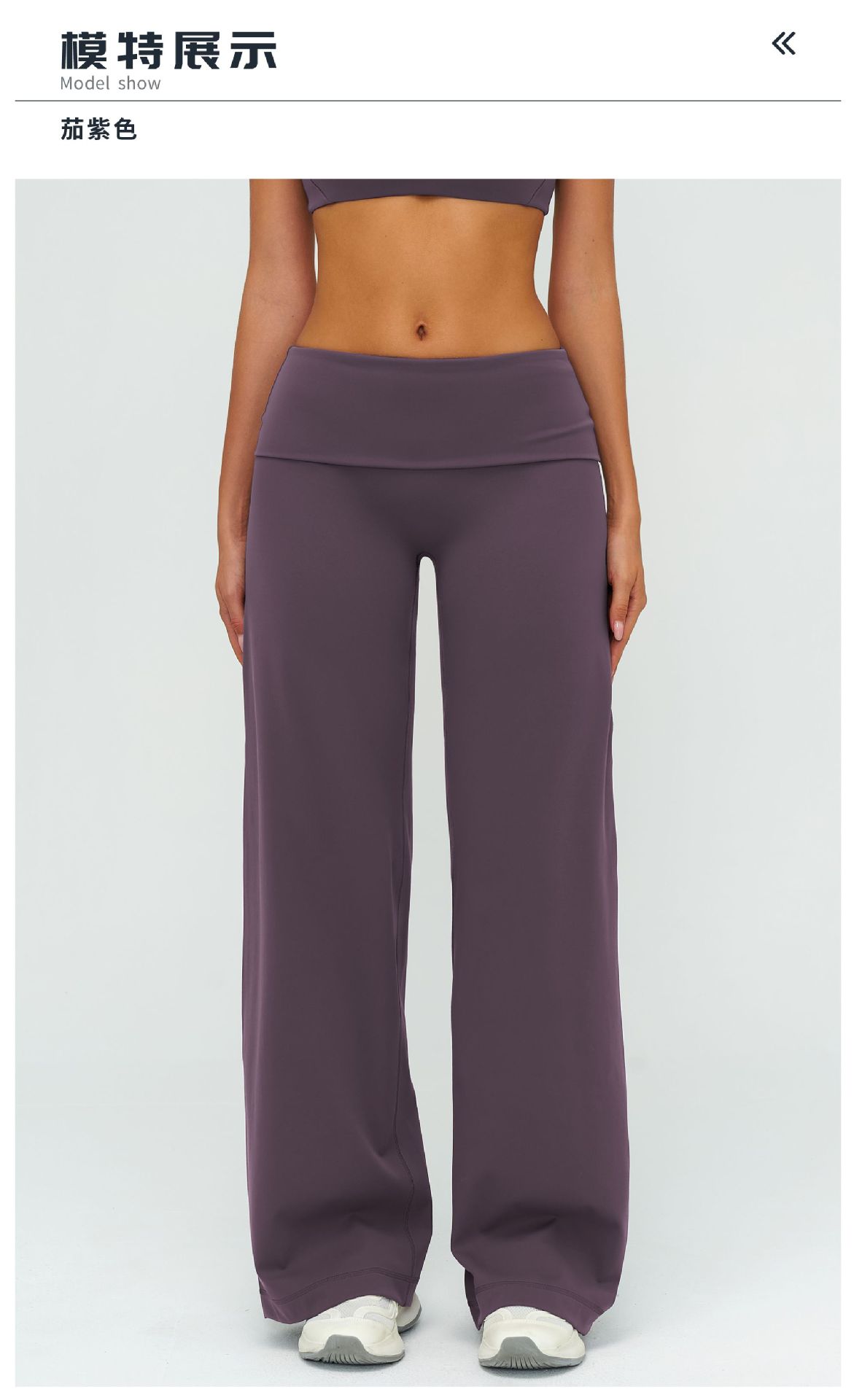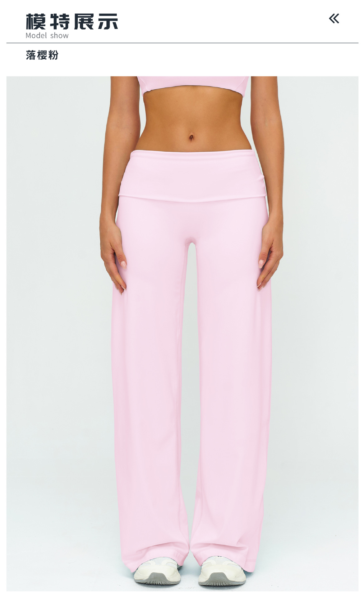 跨境磨毛长裤翻折腰头宽松阔脚显瘦长裤户外跑步运动阔腿裤女5529