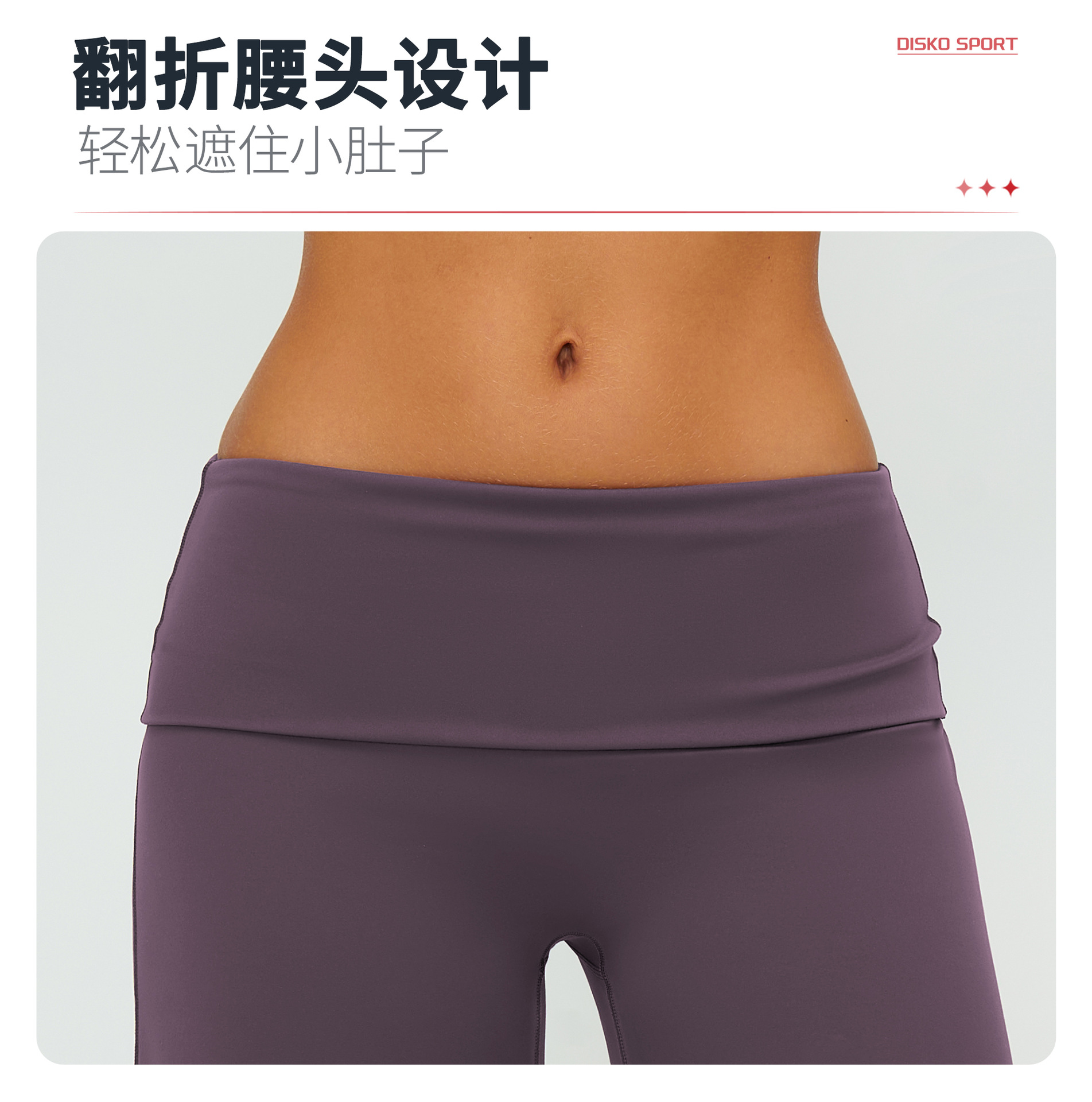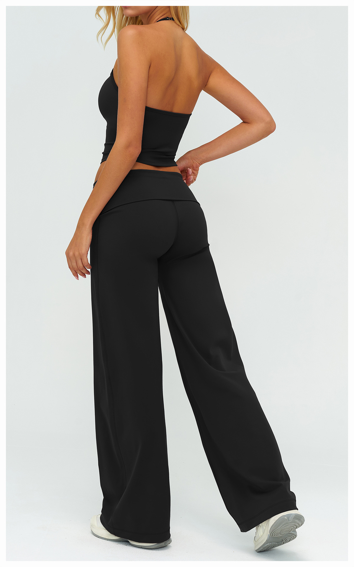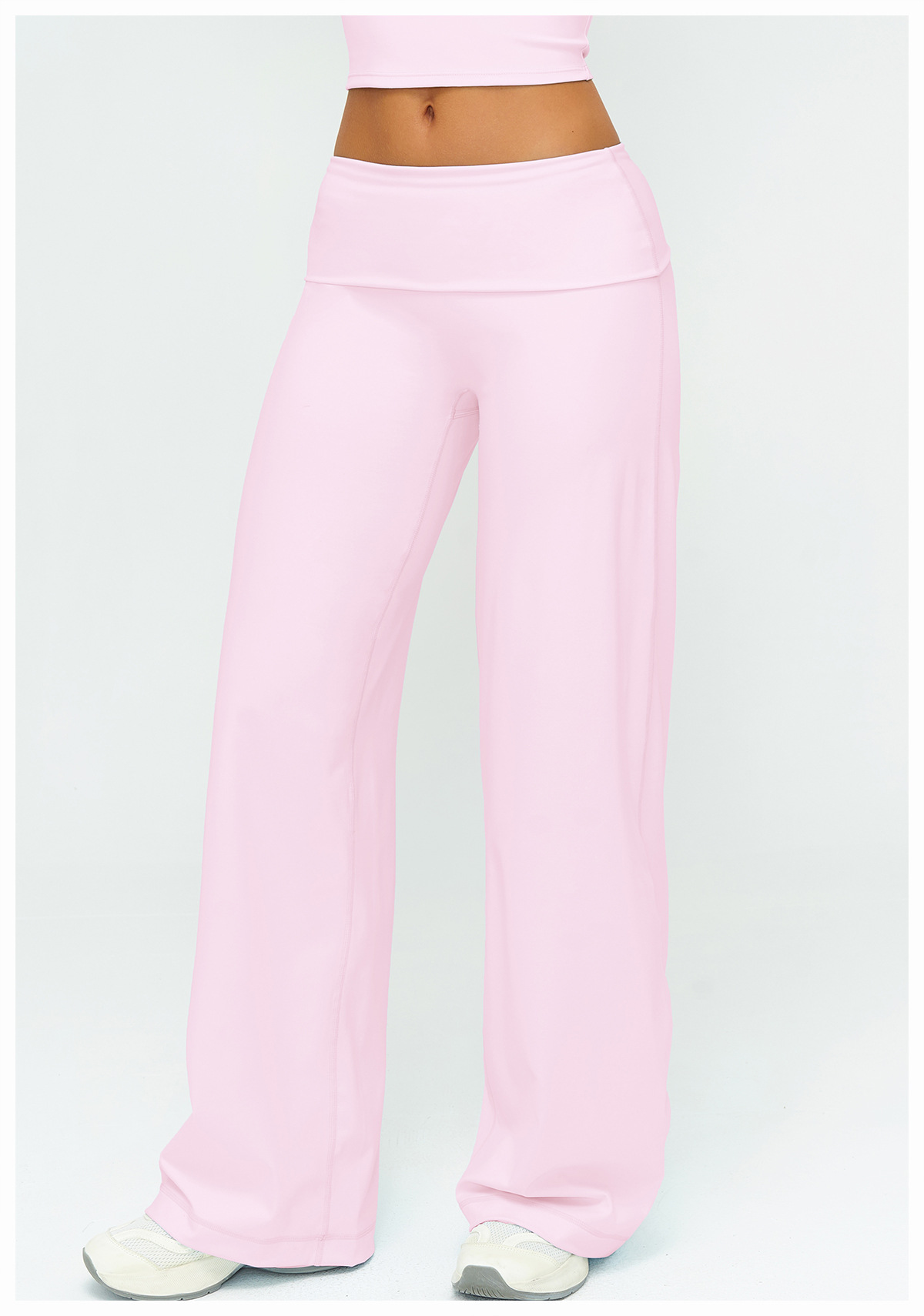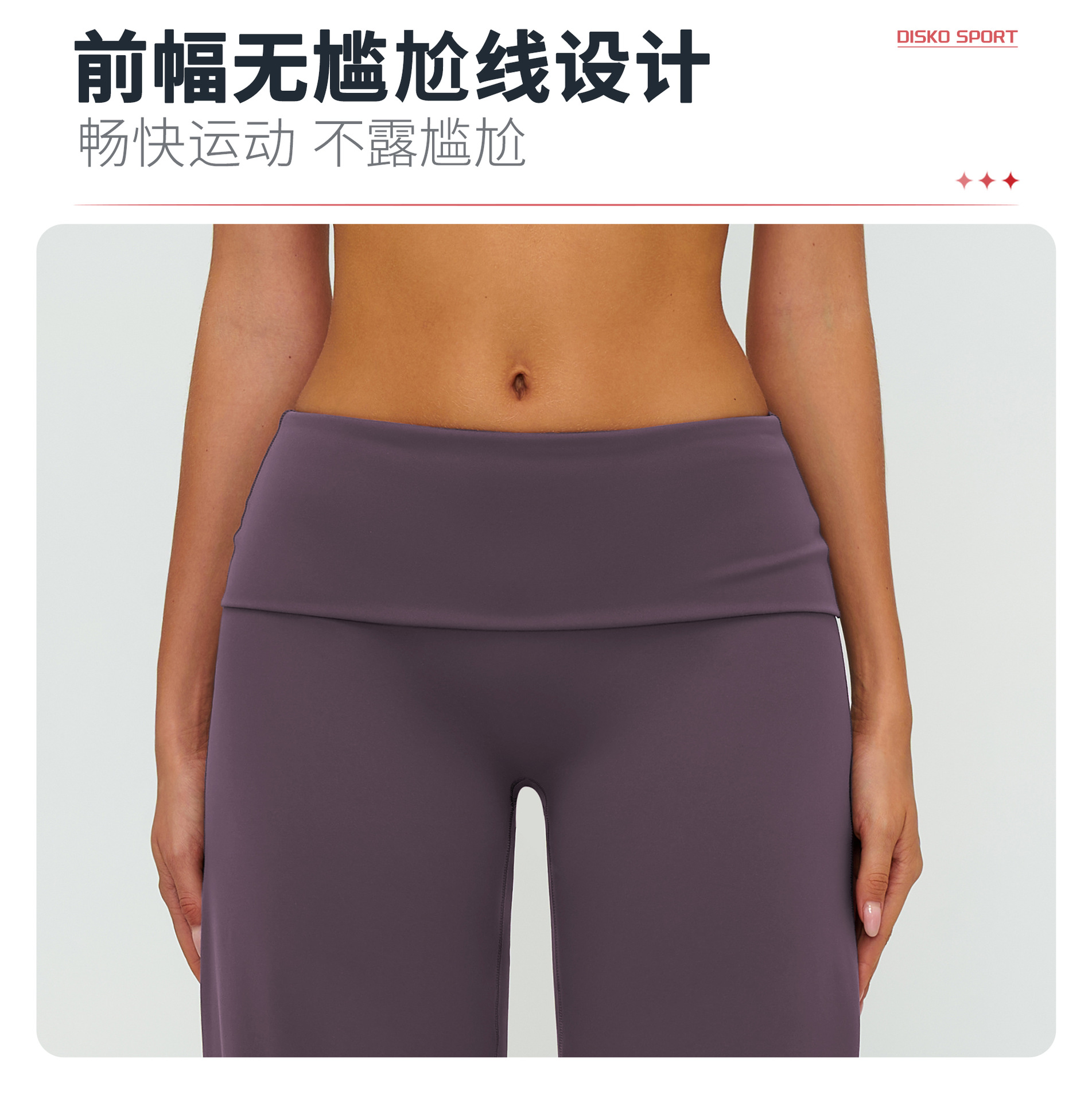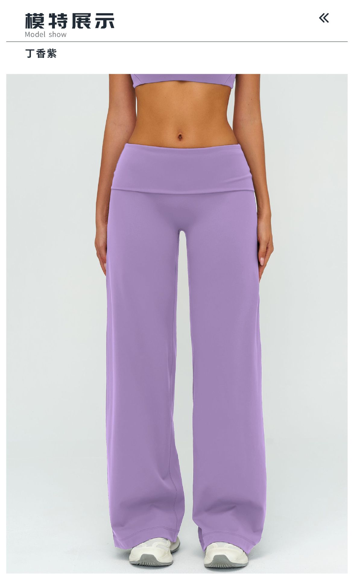 跨境磨毛长裤翻折腰头宽松阔脚显瘦长裤户外跑步运动阔腿裤女5529
