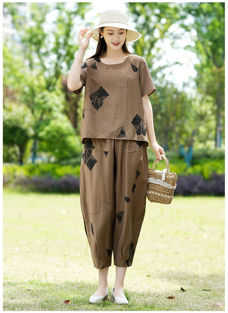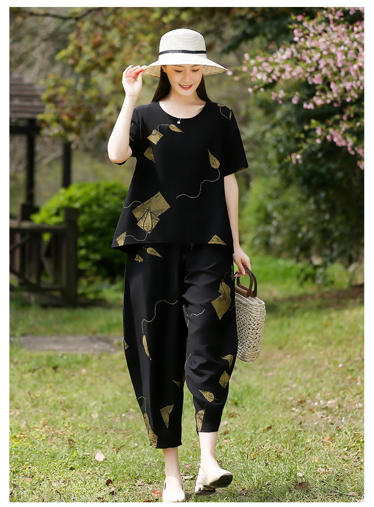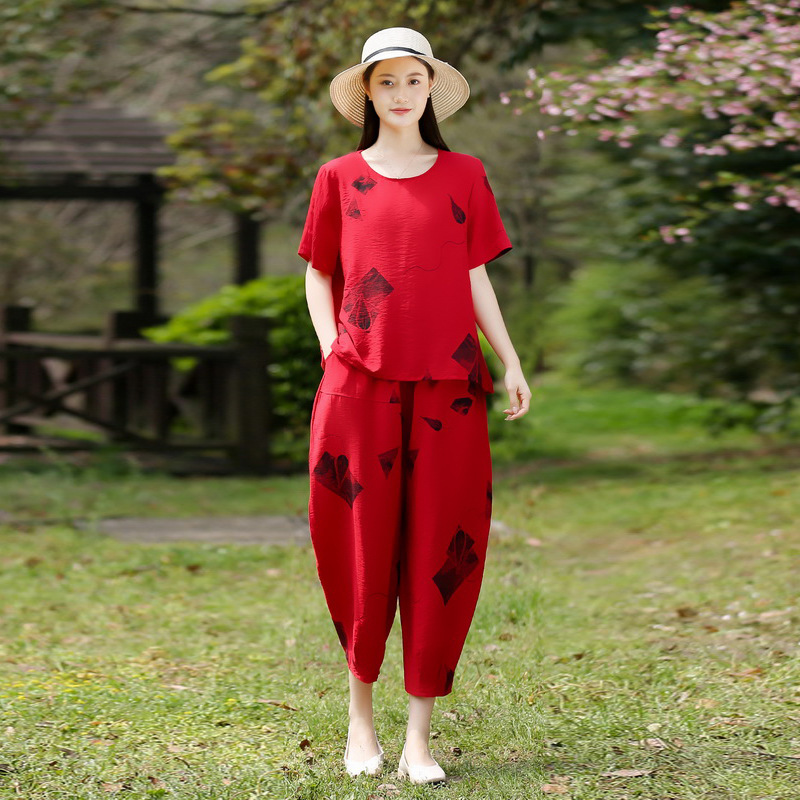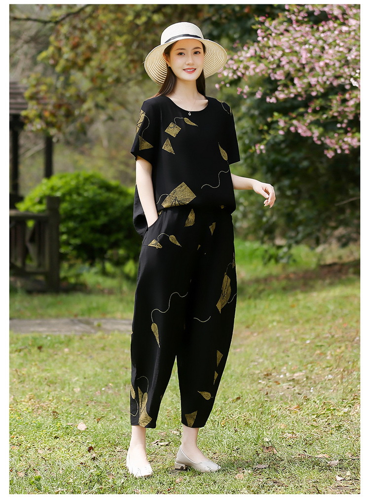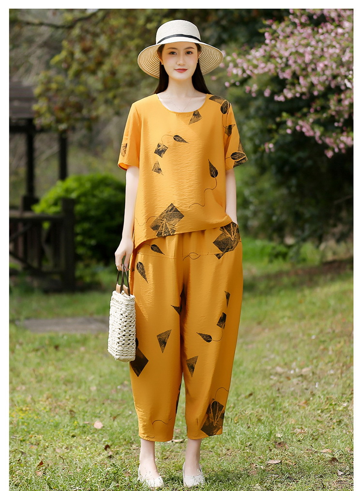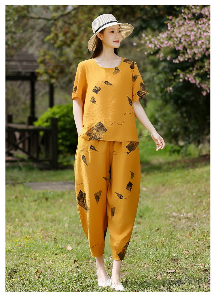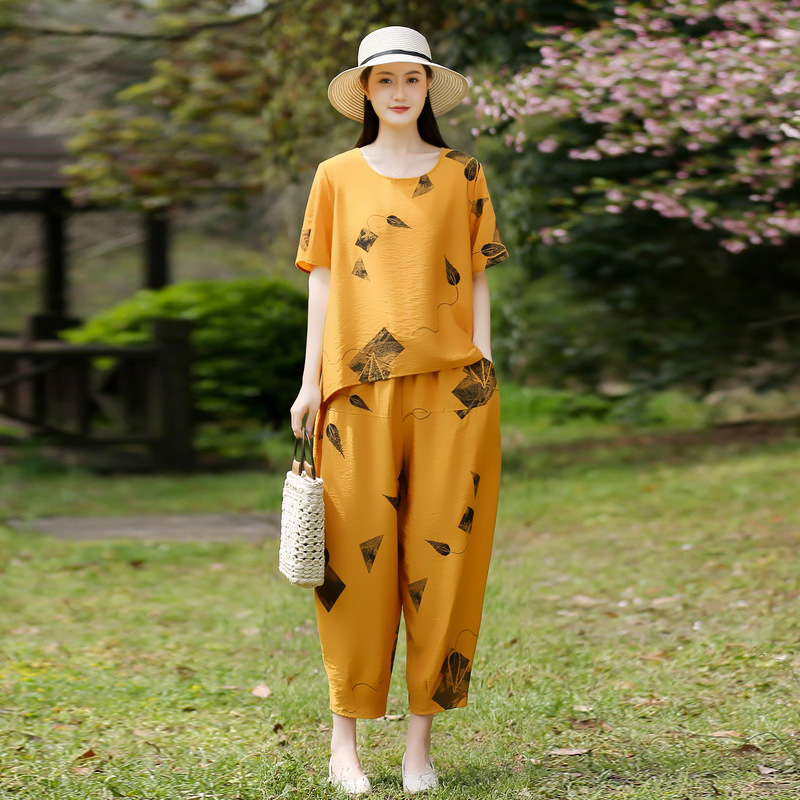 2025新款洋气妈妈夏装套装中老年女装短袖t恤中年棉麻上衣两件套