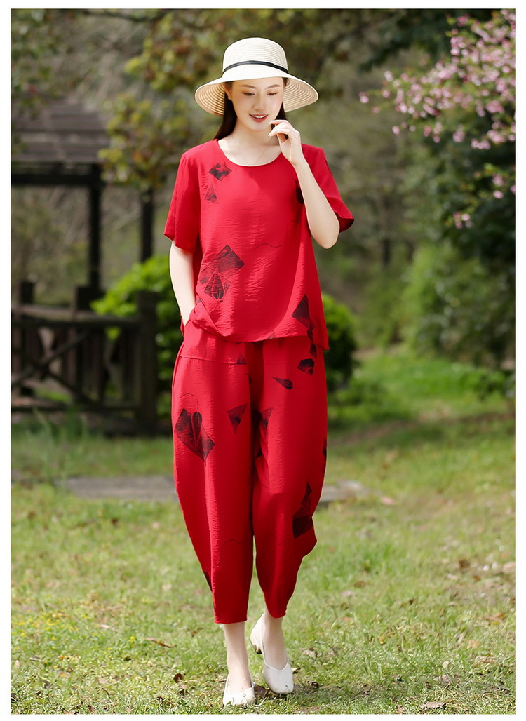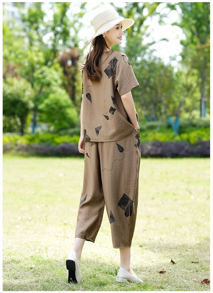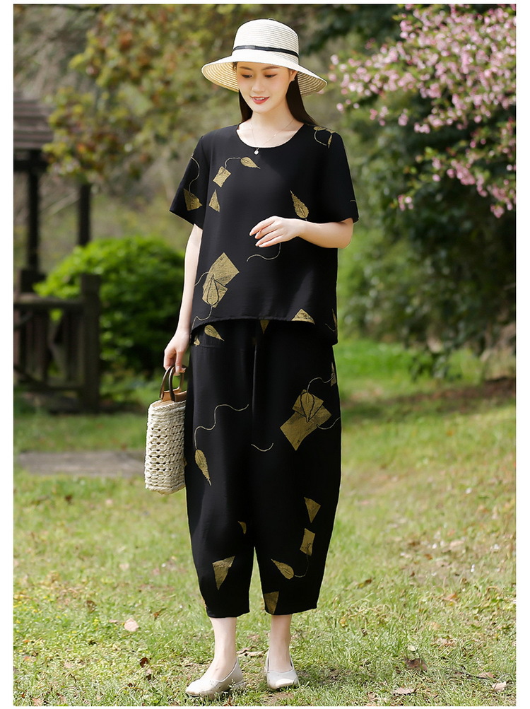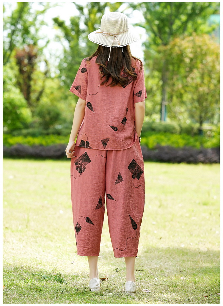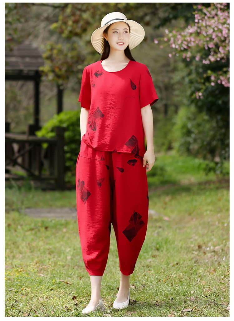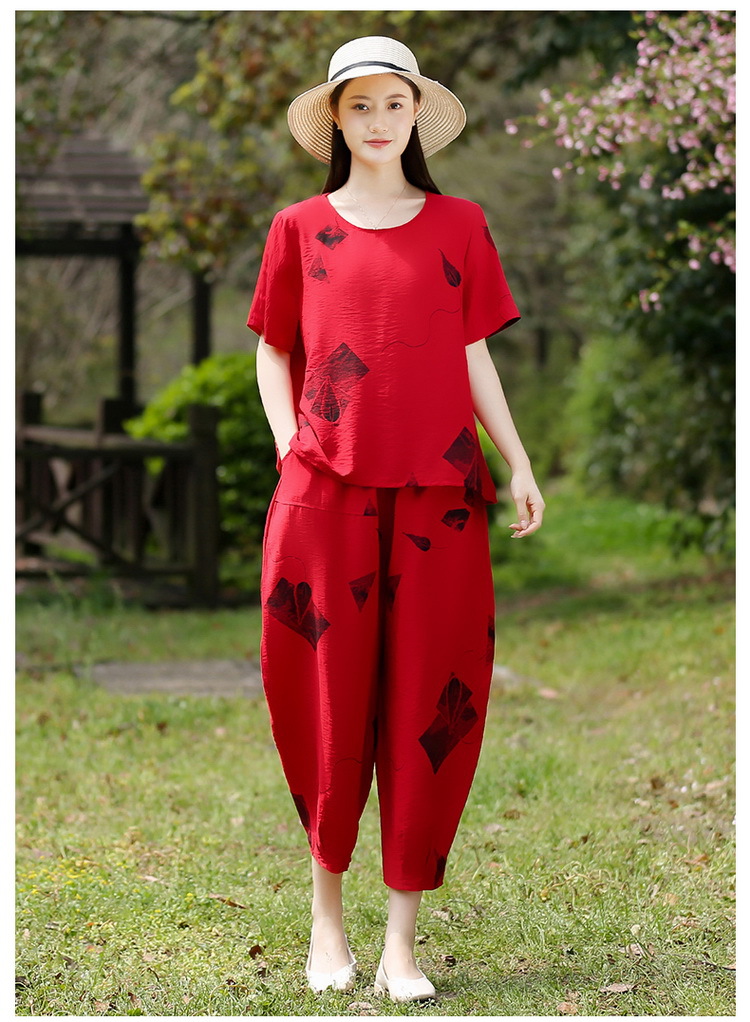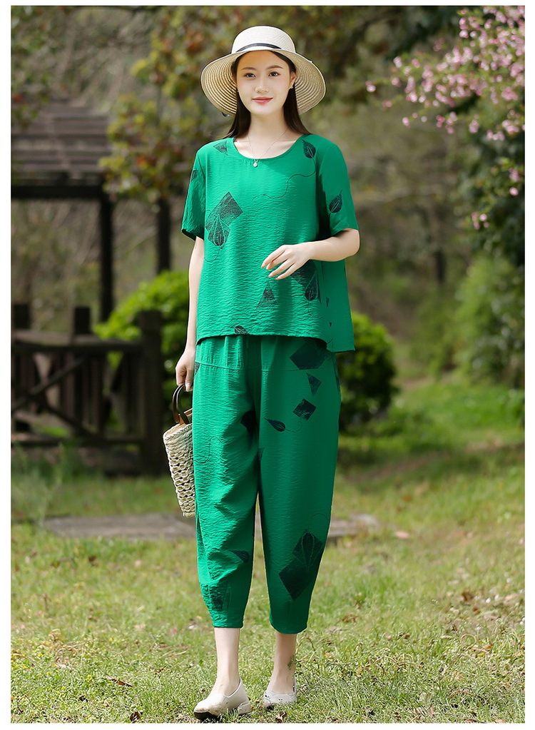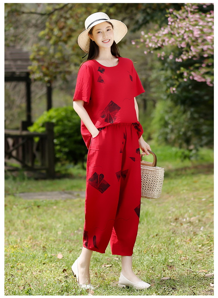 2025新款洋气妈妈夏装套装中老年女装短袖t恤中年棉麻上衣两件套