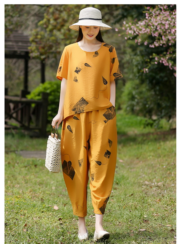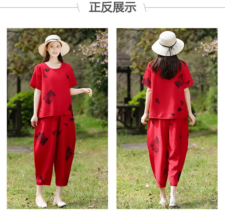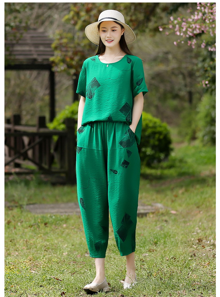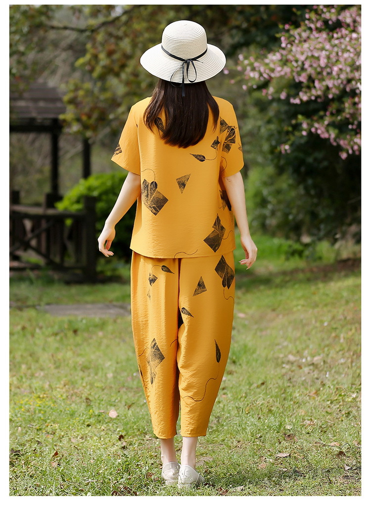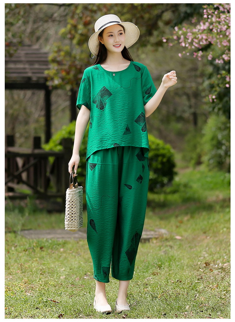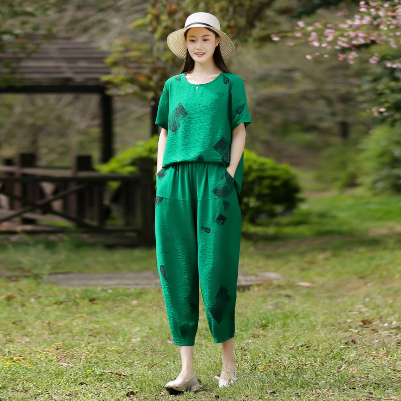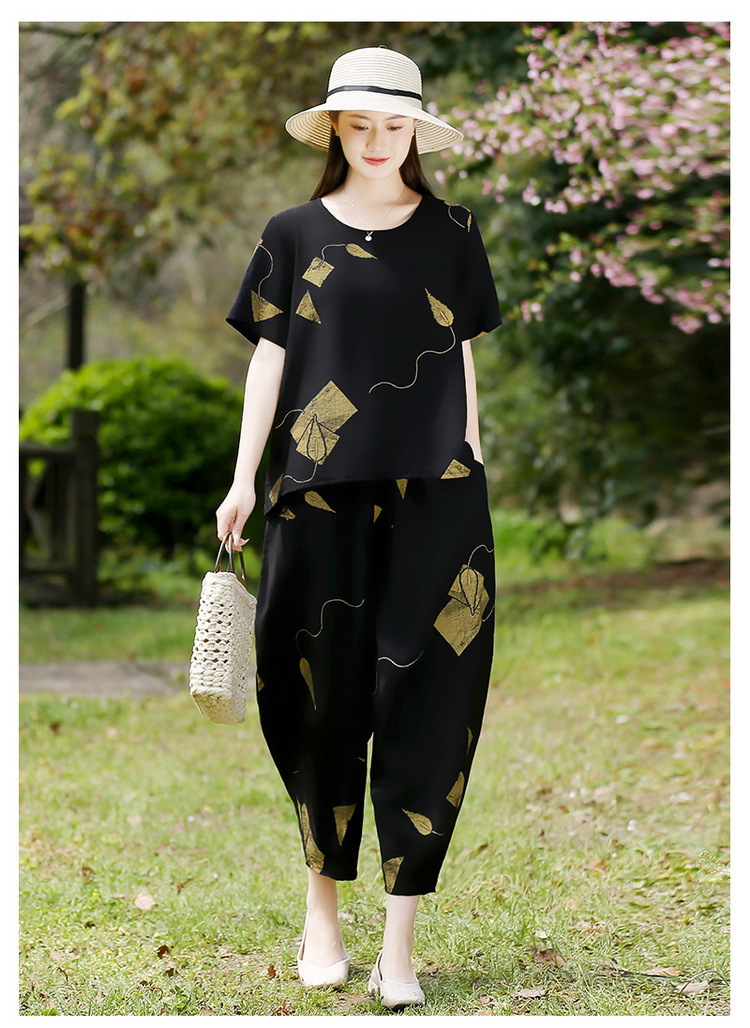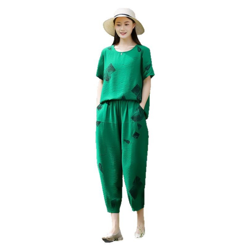 2025新款洋气妈妈夏装套装中老年女装短袖t恤中年棉麻上衣两件套