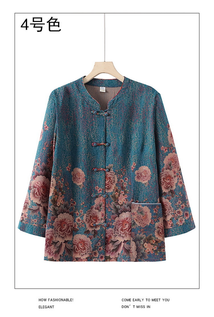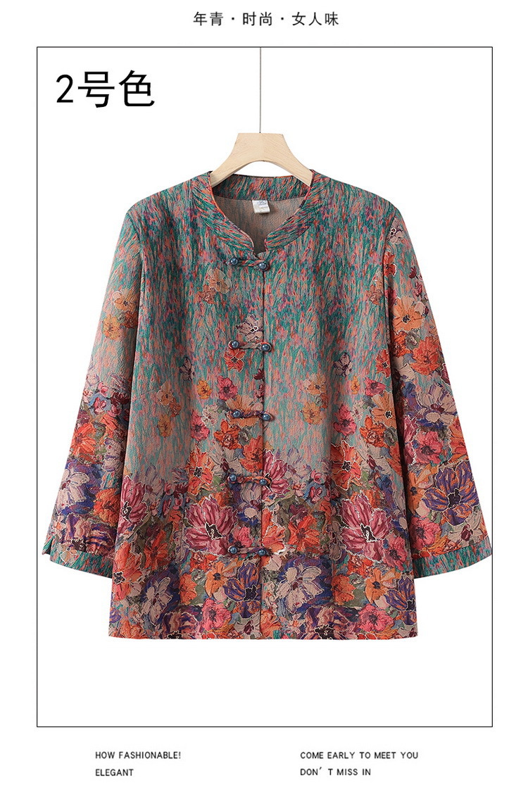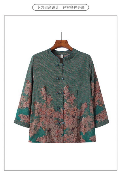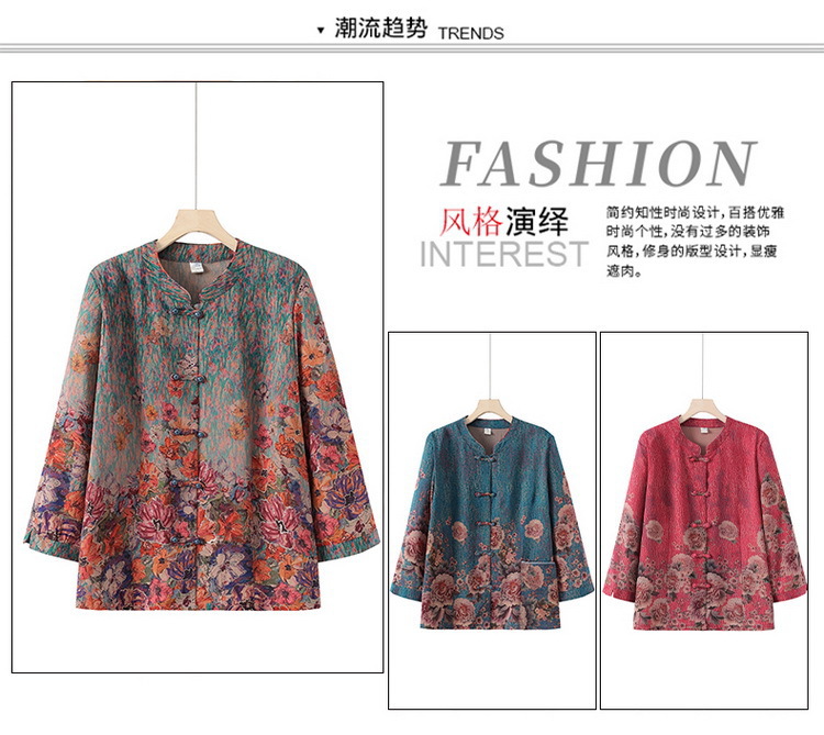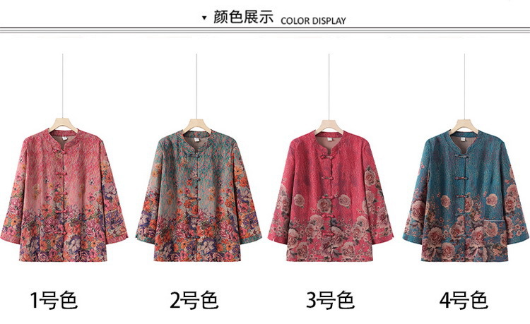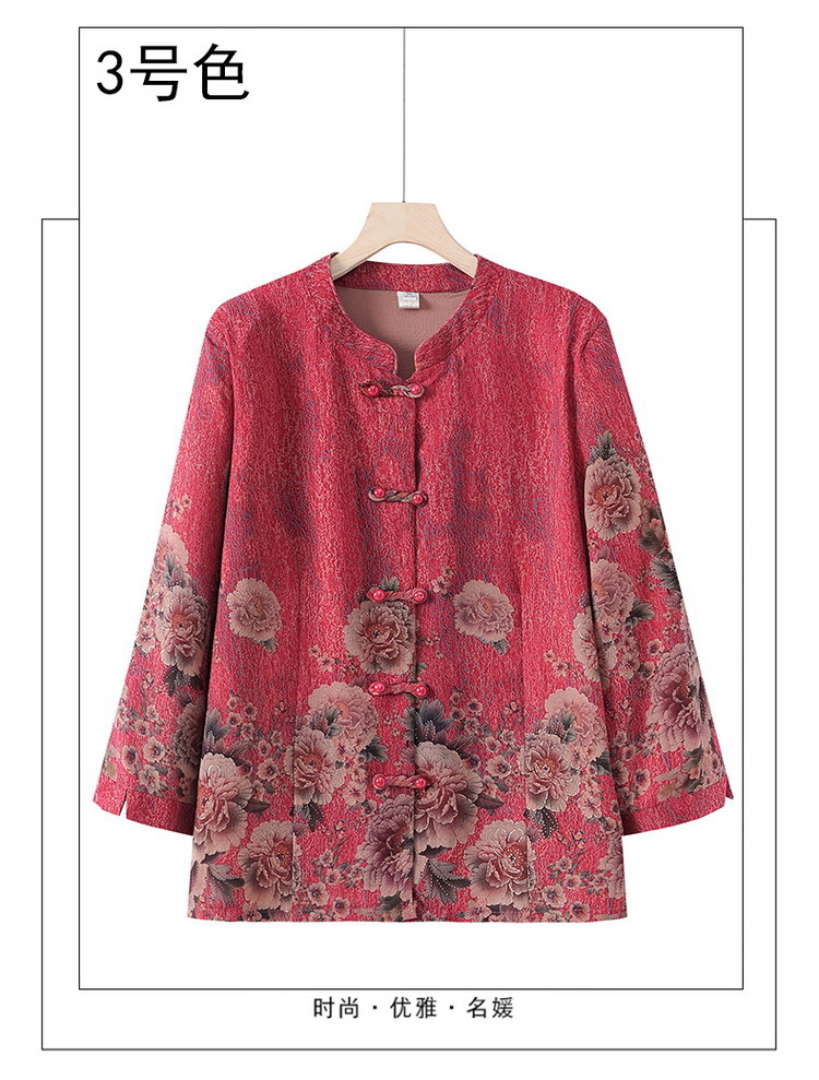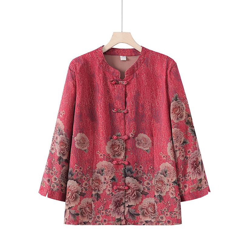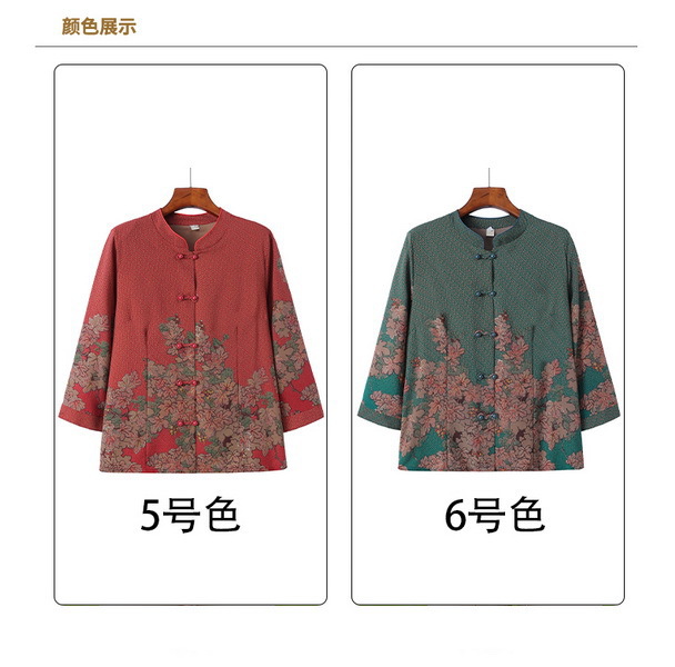 中老年人春夏装女奶奶薄款唐装上衣服200斤胖妈妈特大码长袖衬衫
