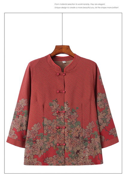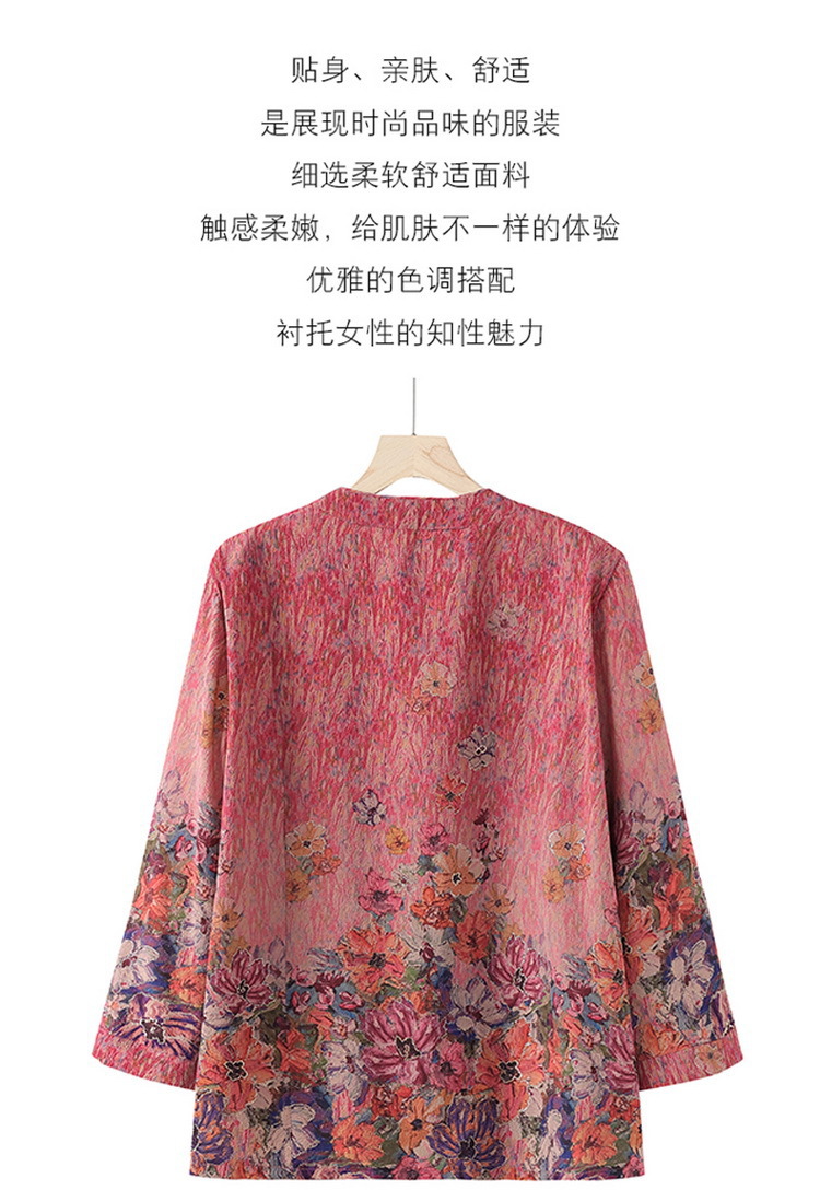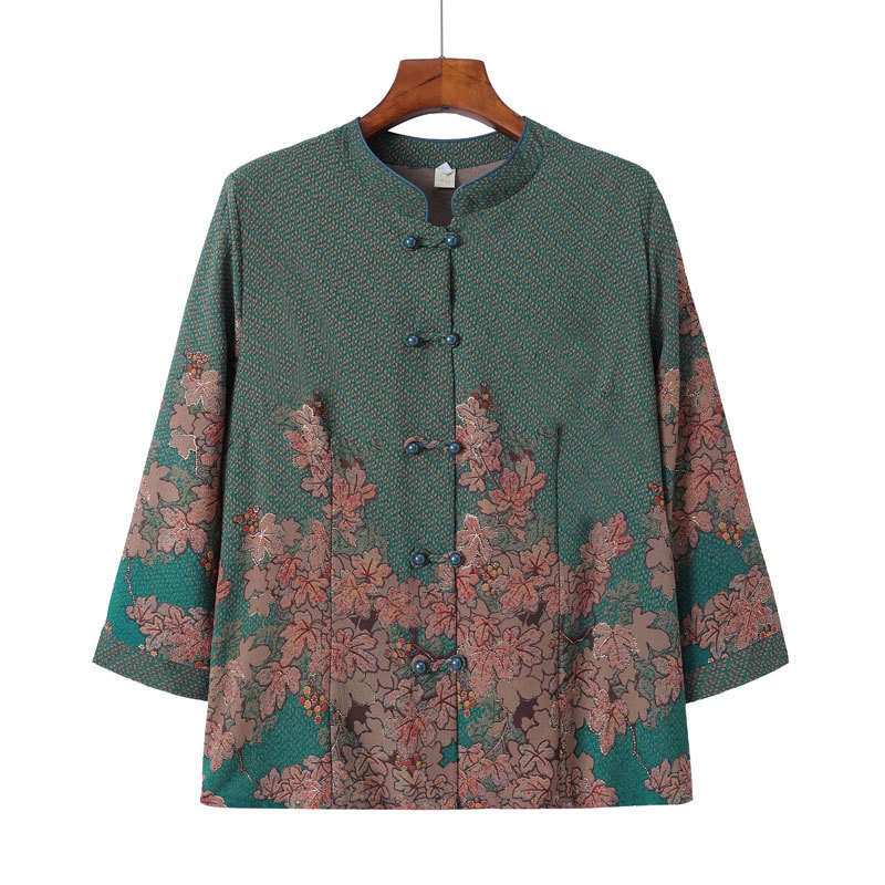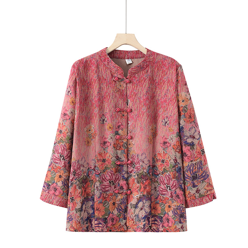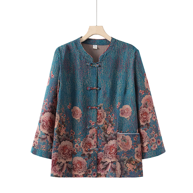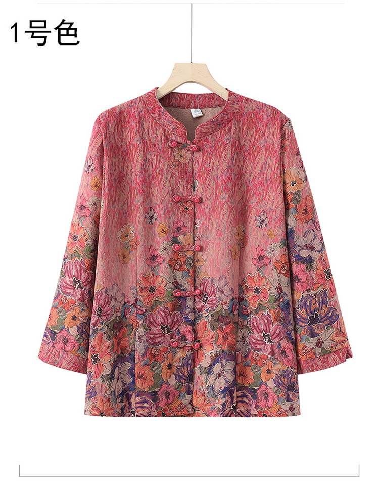 中老年人春夏装女奶奶薄款唐装上衣服200斤胖妈妈特大码长袖衬衫