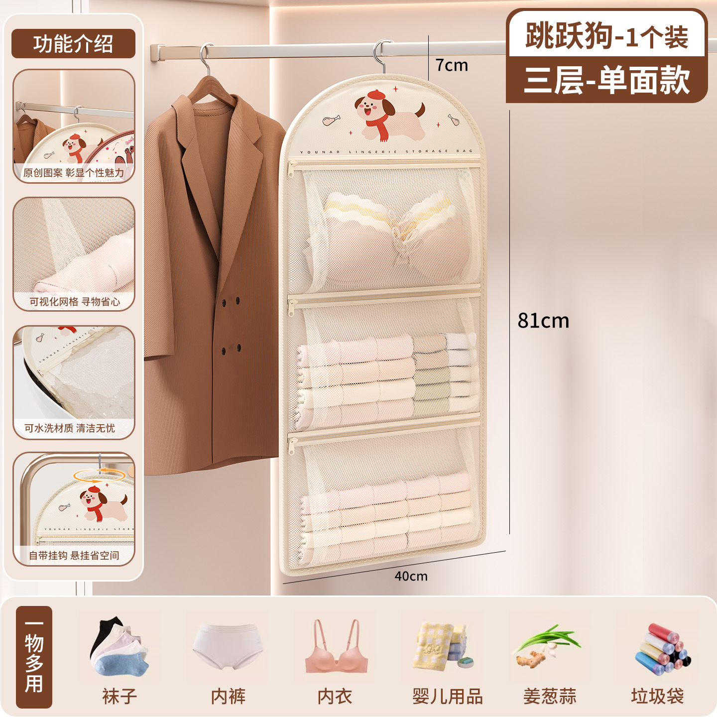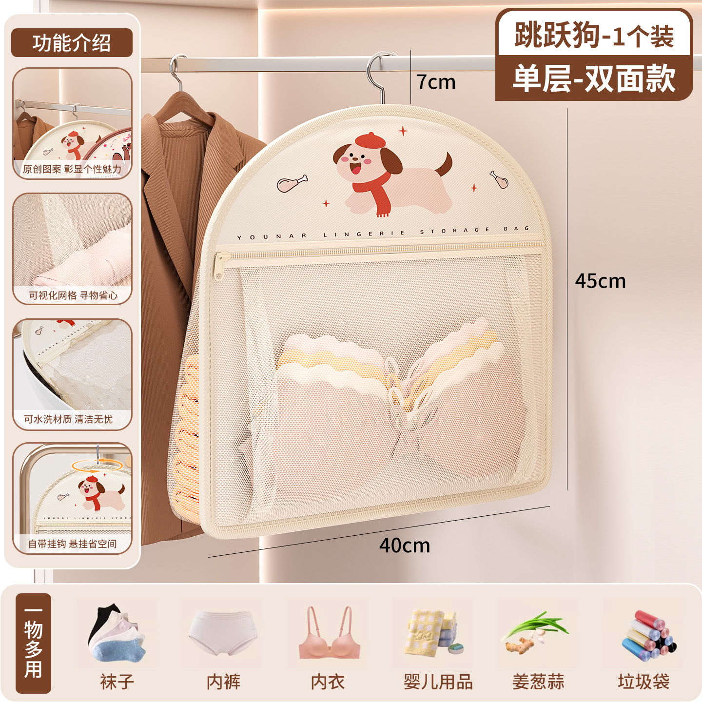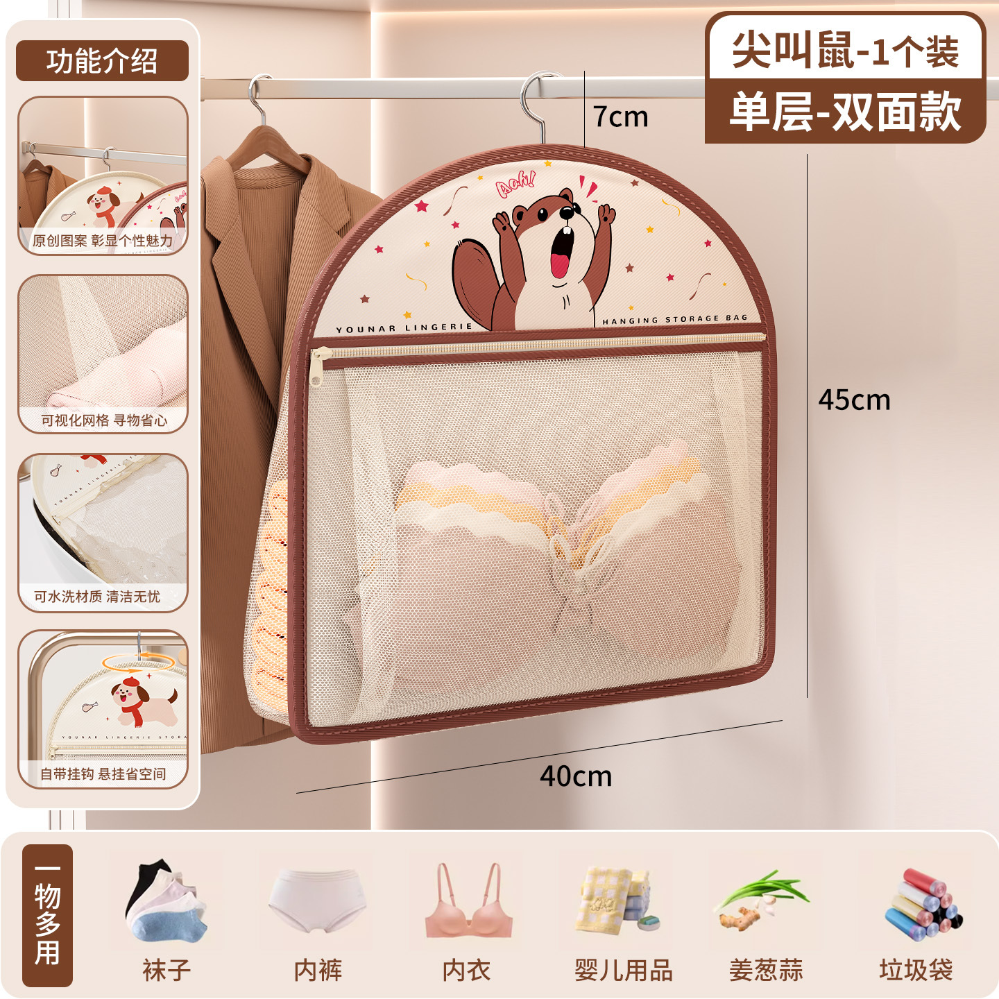 袜子收纳神器学生宿舍衣柜内裤内衣挂袋悬挂式网兜整理架置物袋