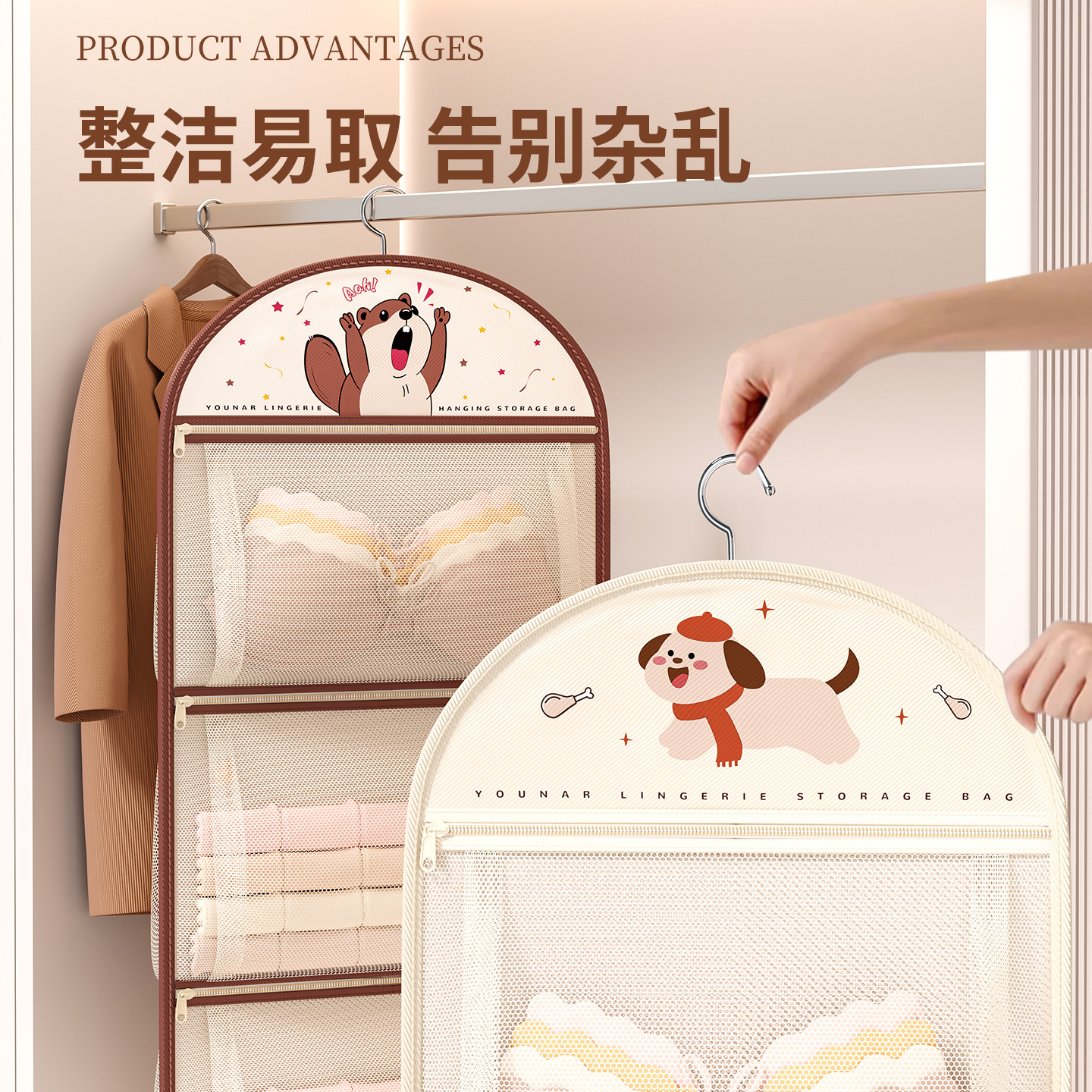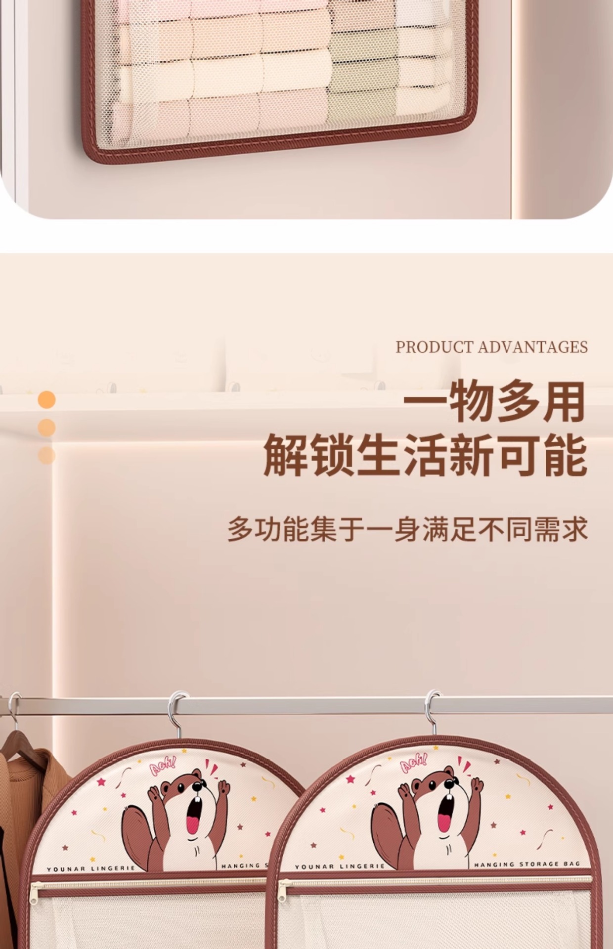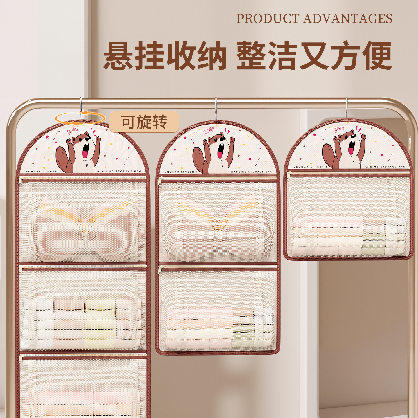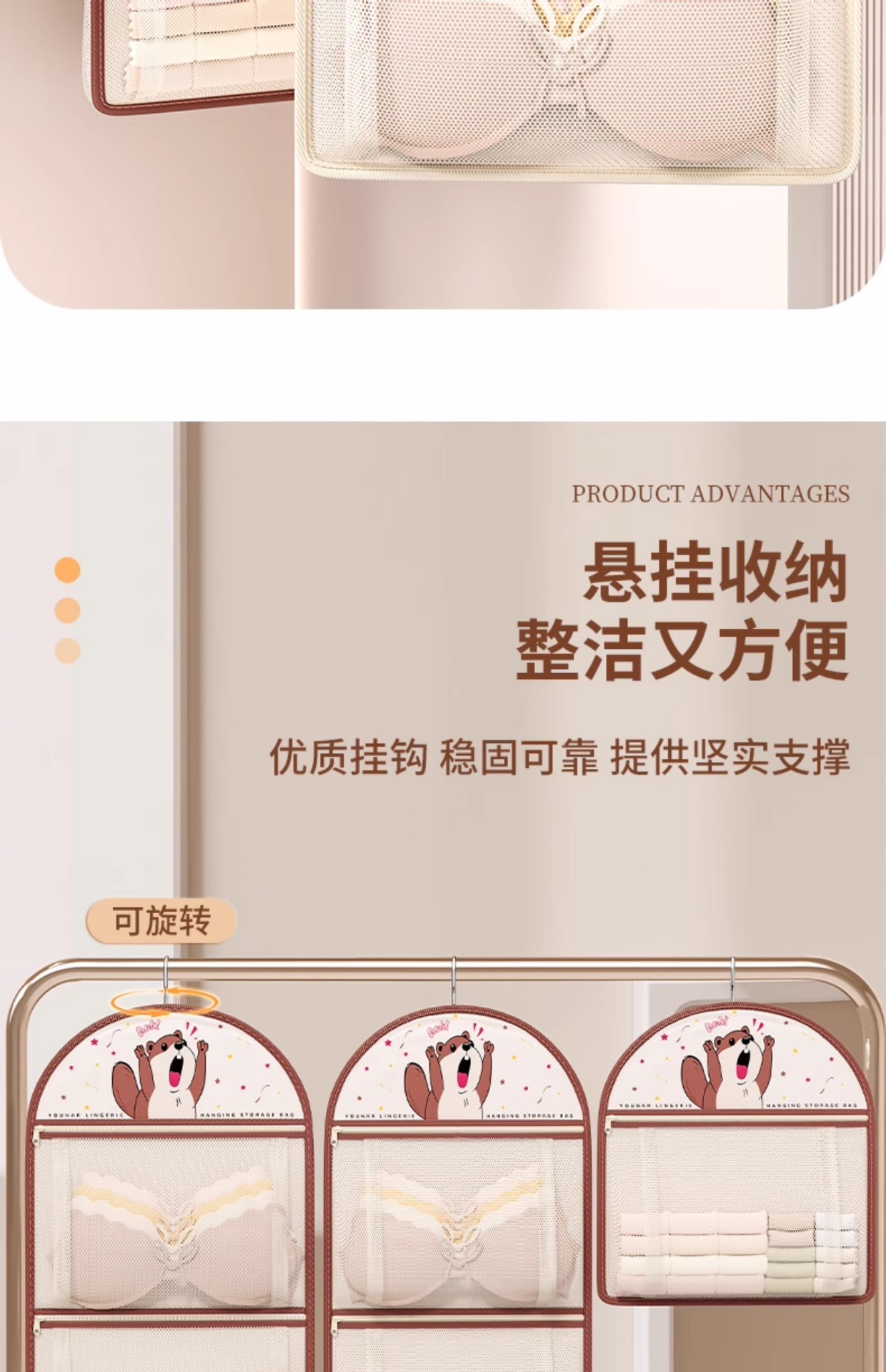 袜子收纳神器学生宿舍衣柜内裤内衣挂袋悬挂式网兜整理架置物袋