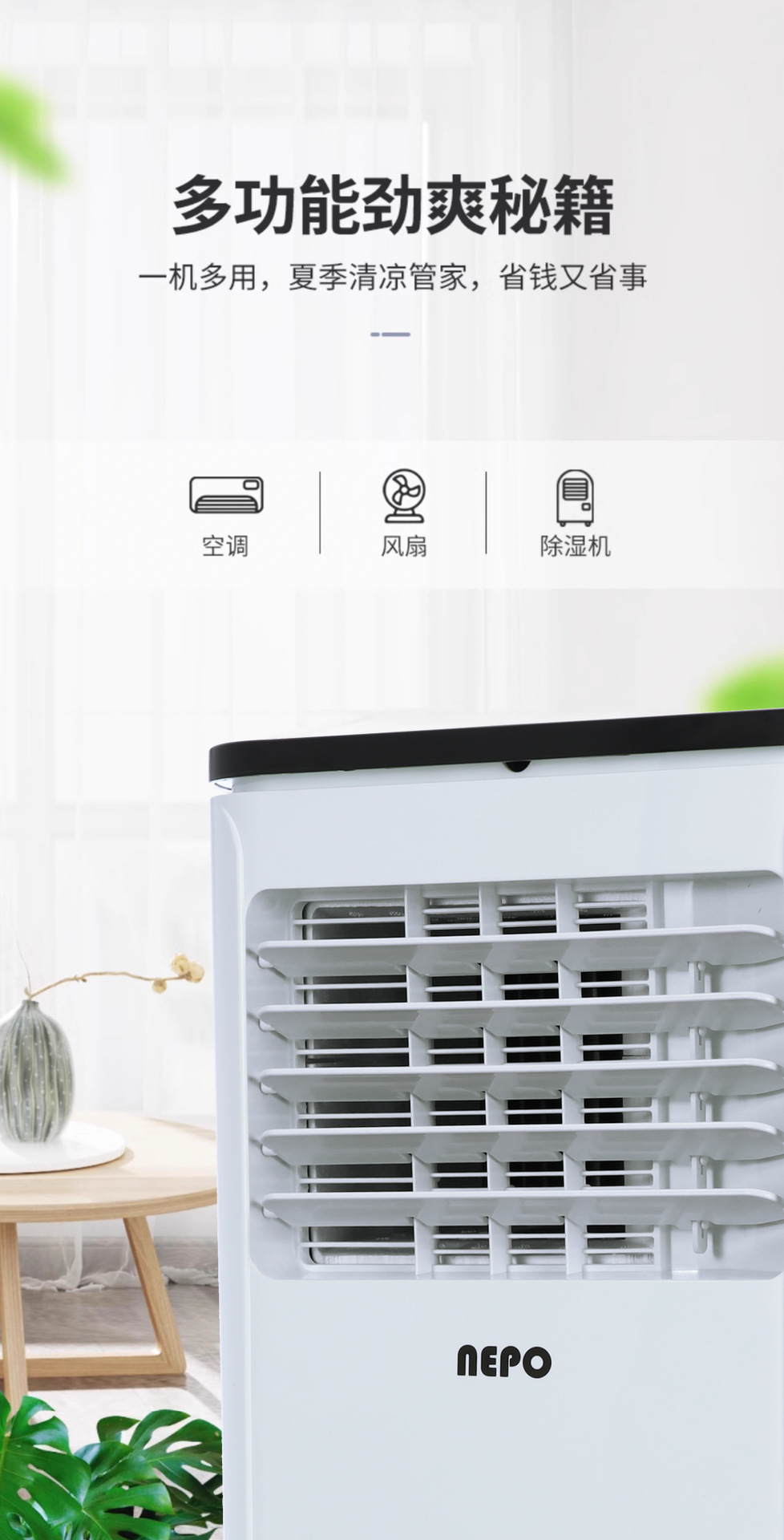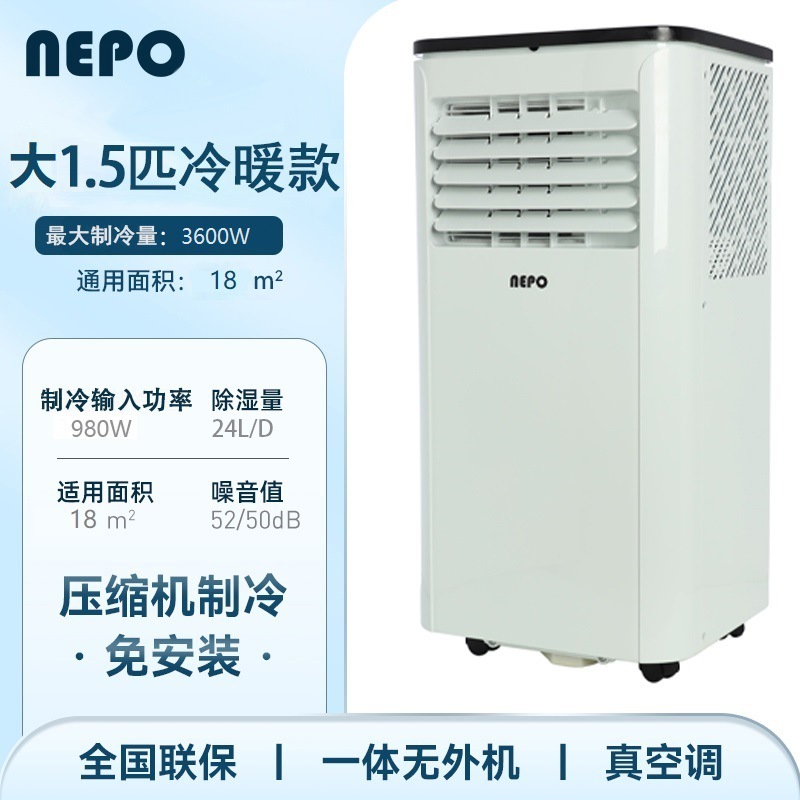 NEPO移动空调冷暖两用立式便携一体机大1.5P单冷压缩机制冷小空调