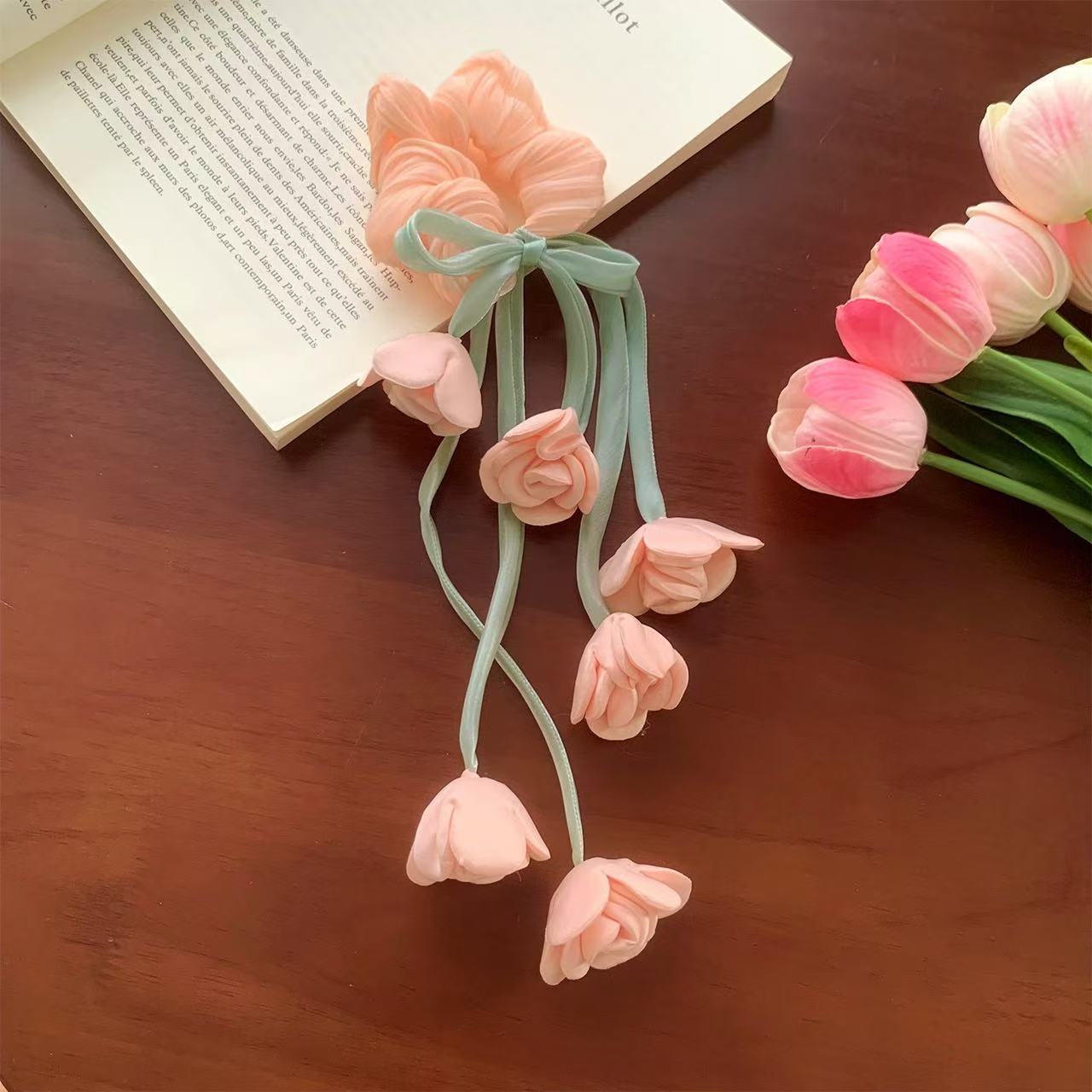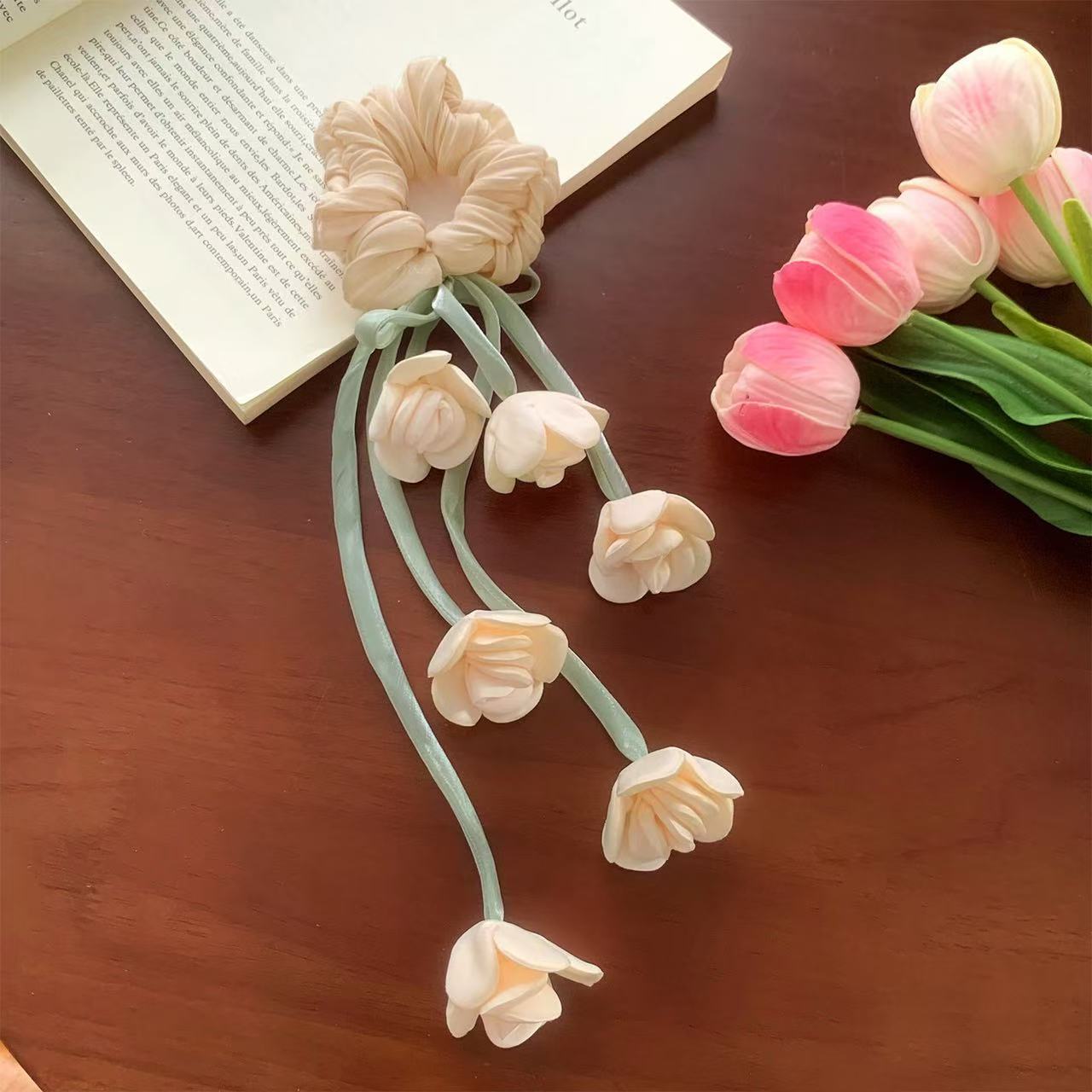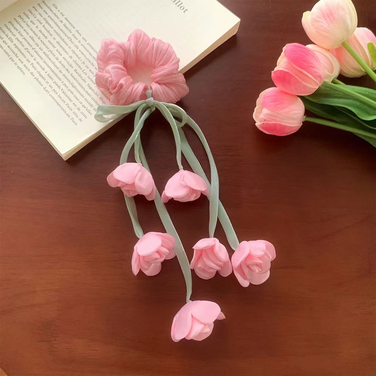 铃兰花朵大肠发圈头饰高级感流苏飘带仙气发饰扎马尾头绳发绳抓夹