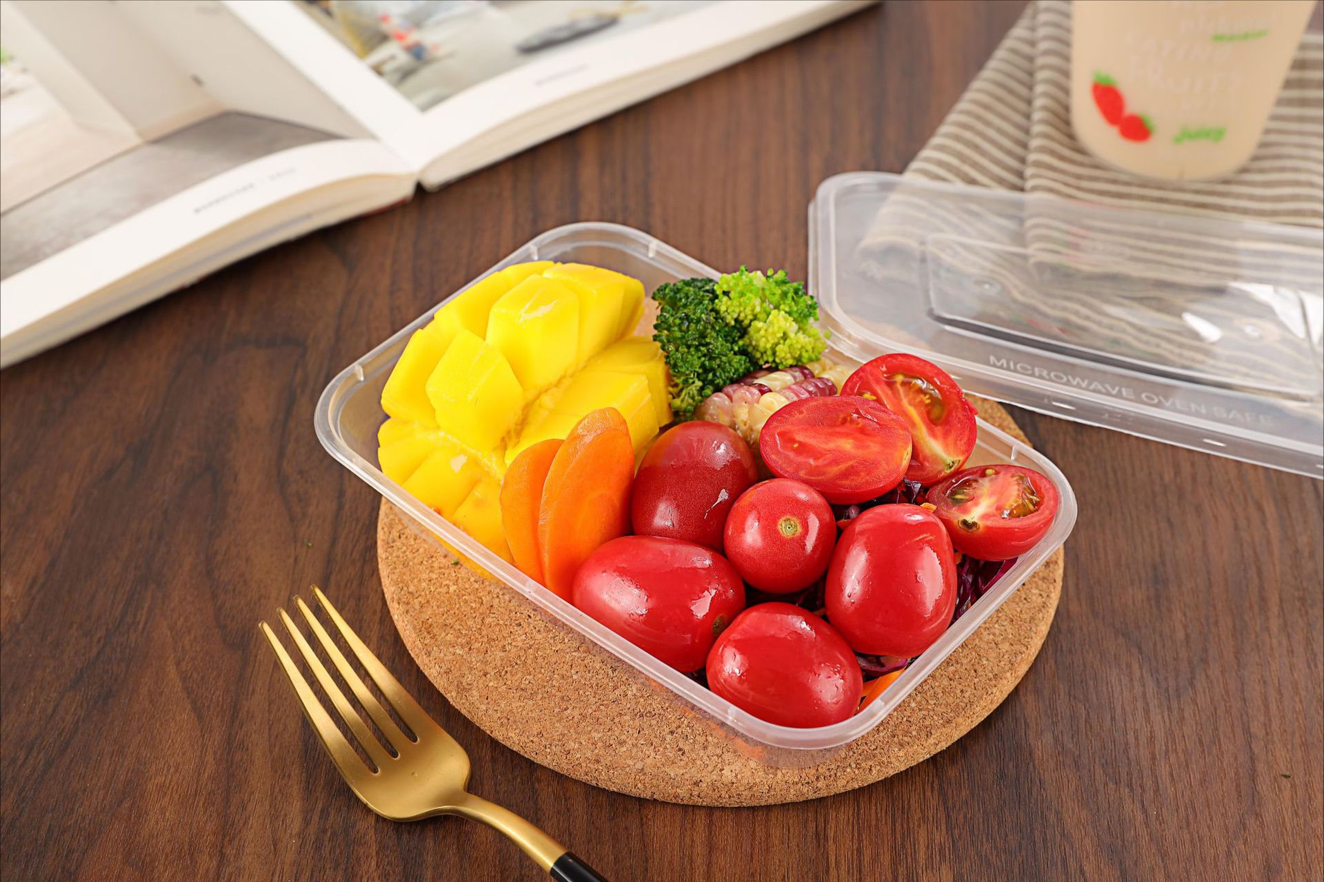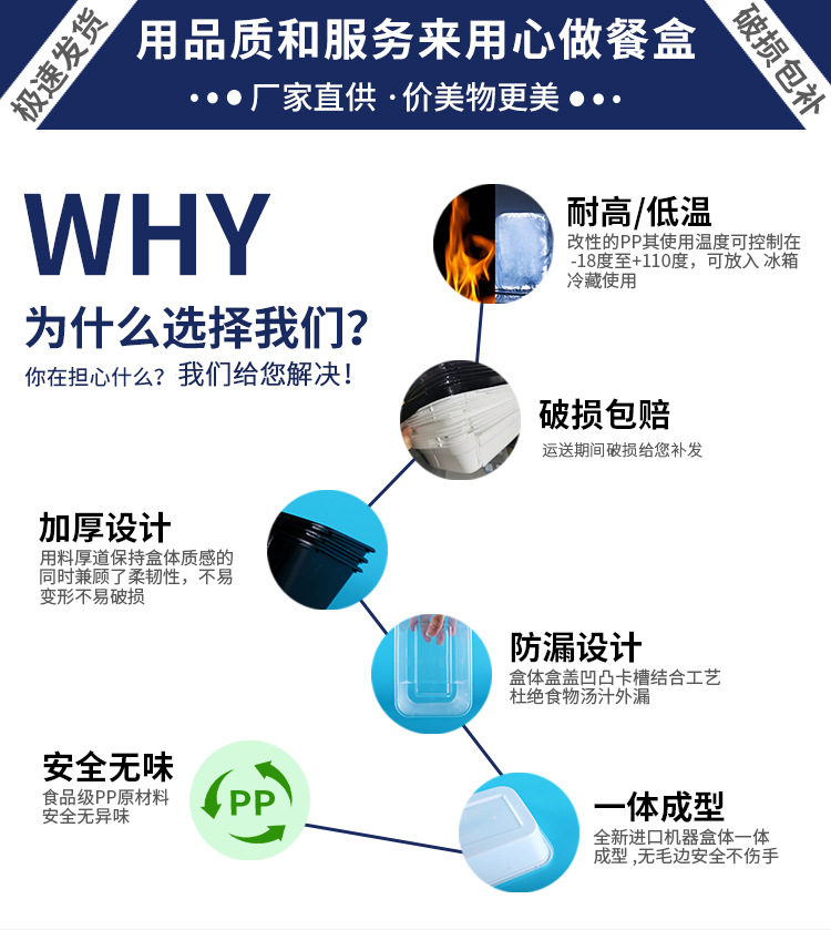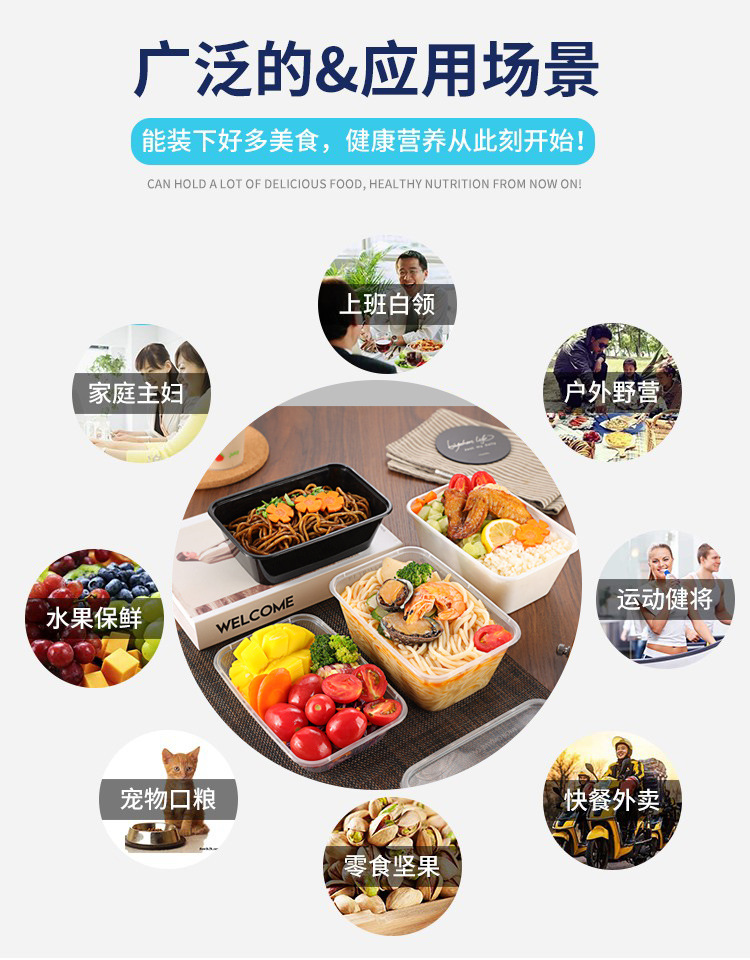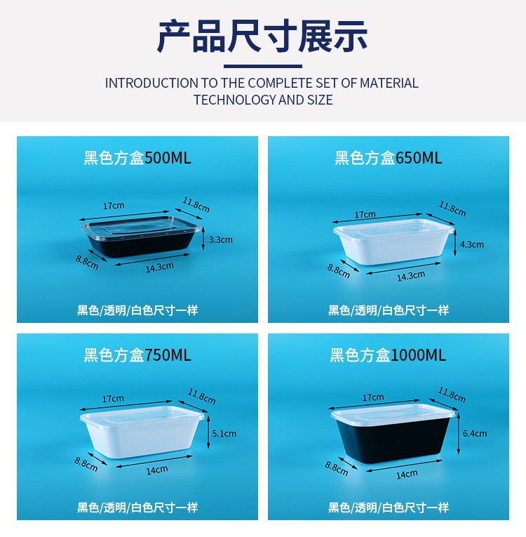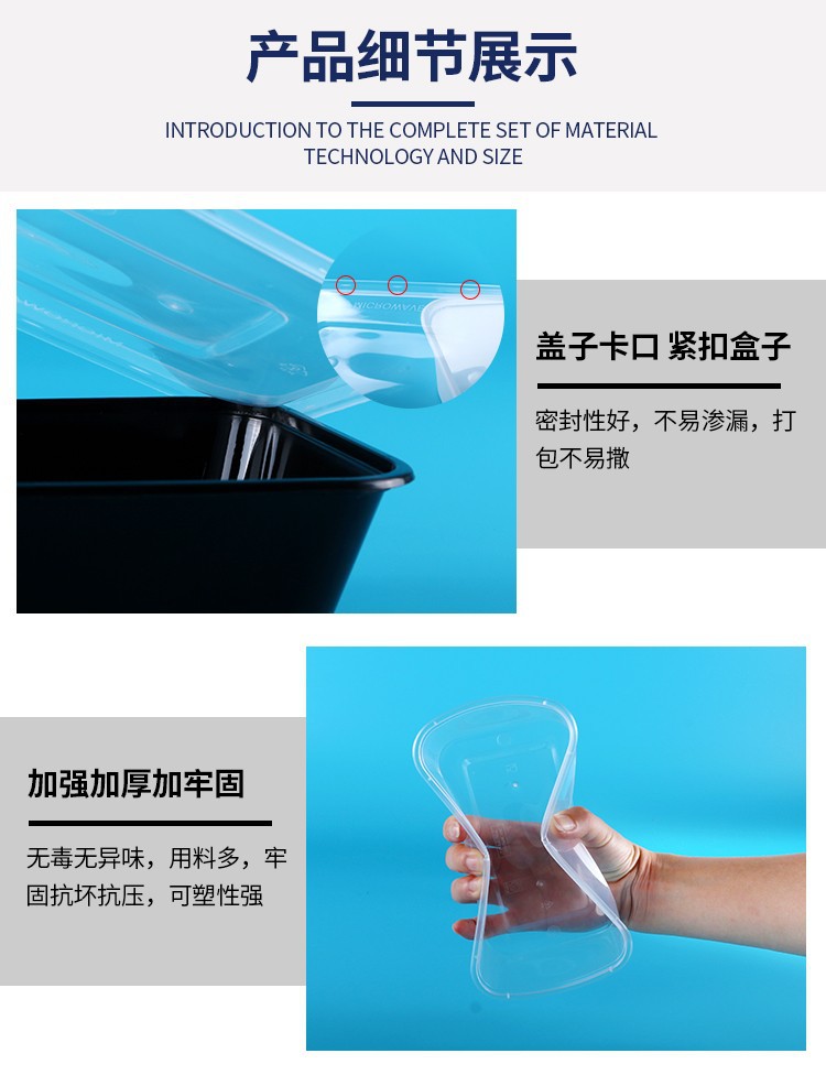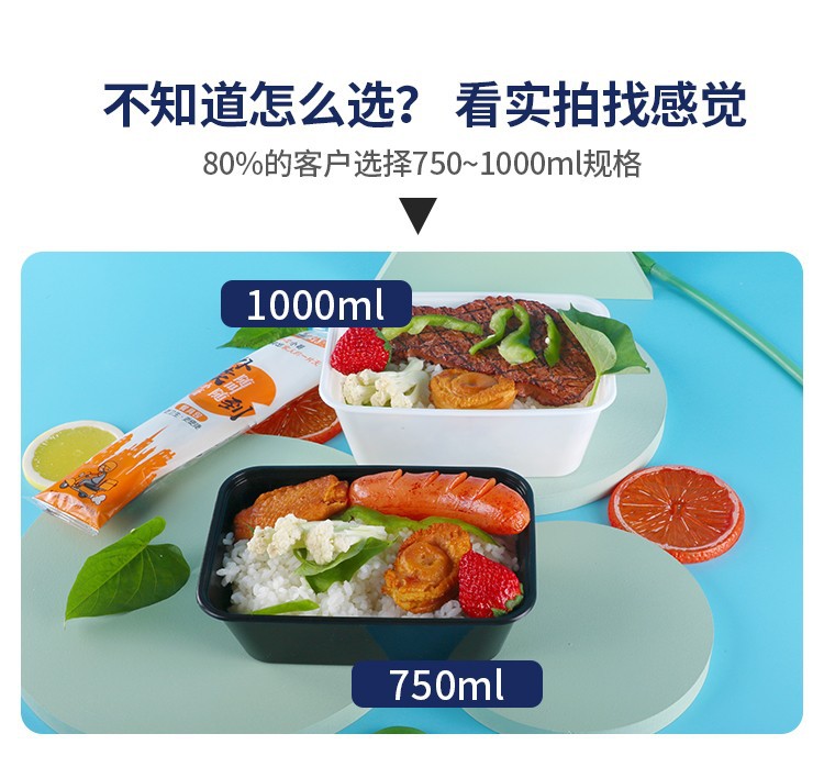 750ML塑料碗外卖餐盒打包盒饭盒透明加厚带盖便当盒耐用食品级