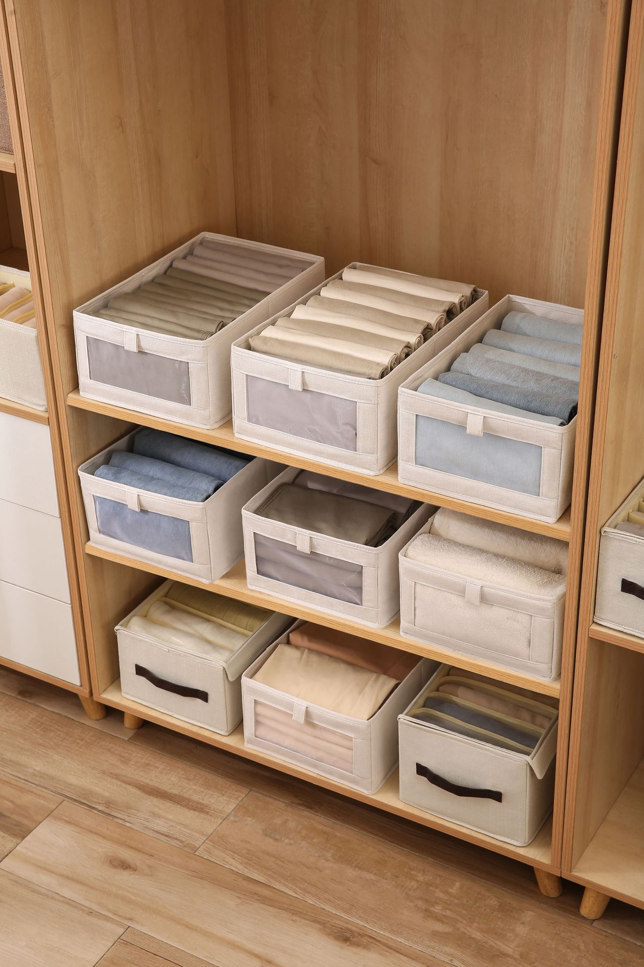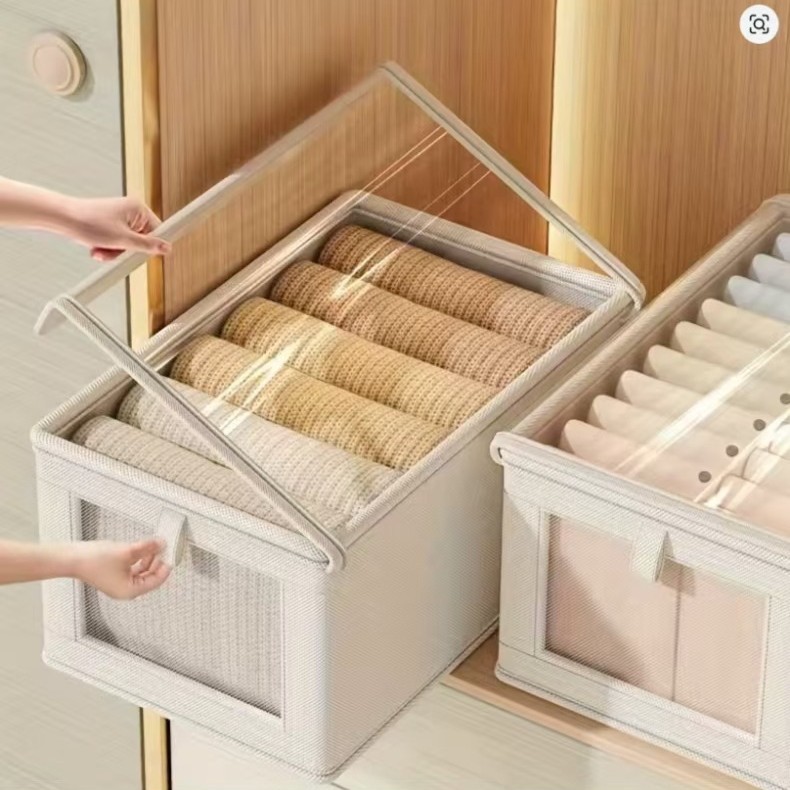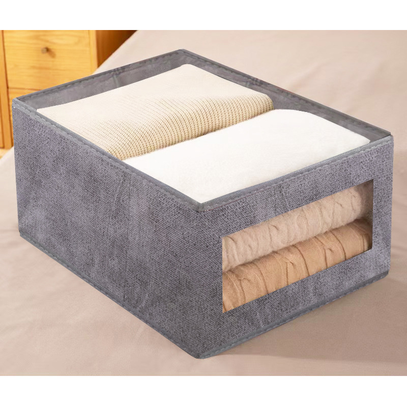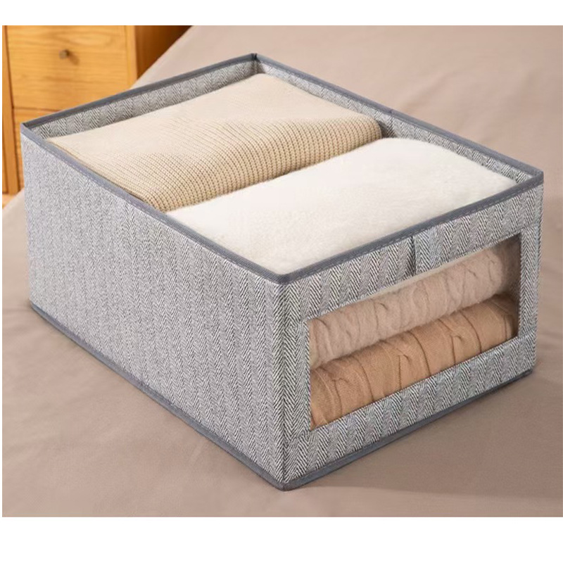可视窗收纳盒棉麻布艺收纳箱衣物整理折叠家用衣柜日式棉麻收纳盒