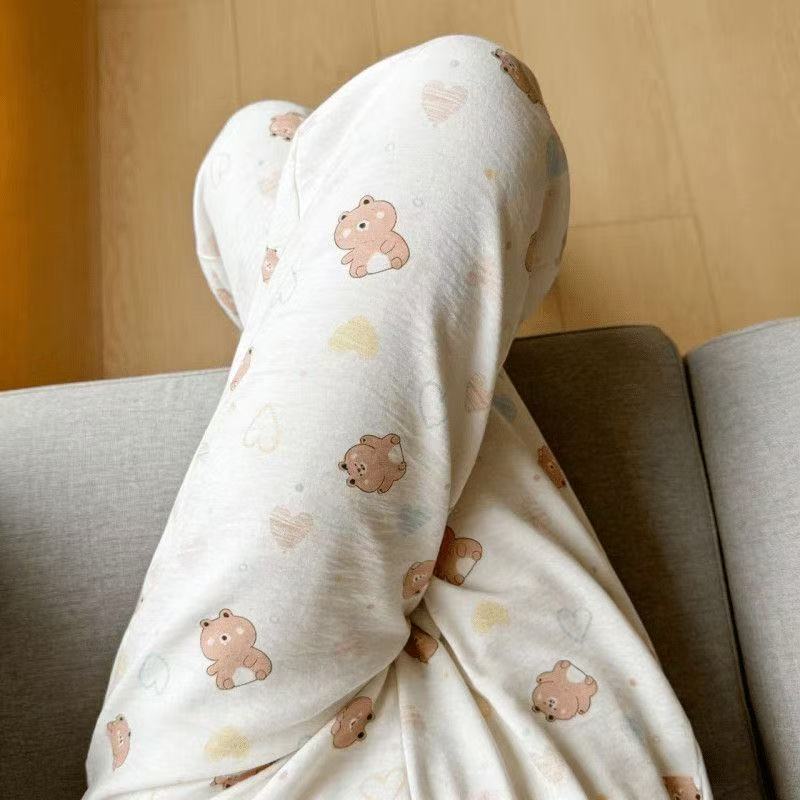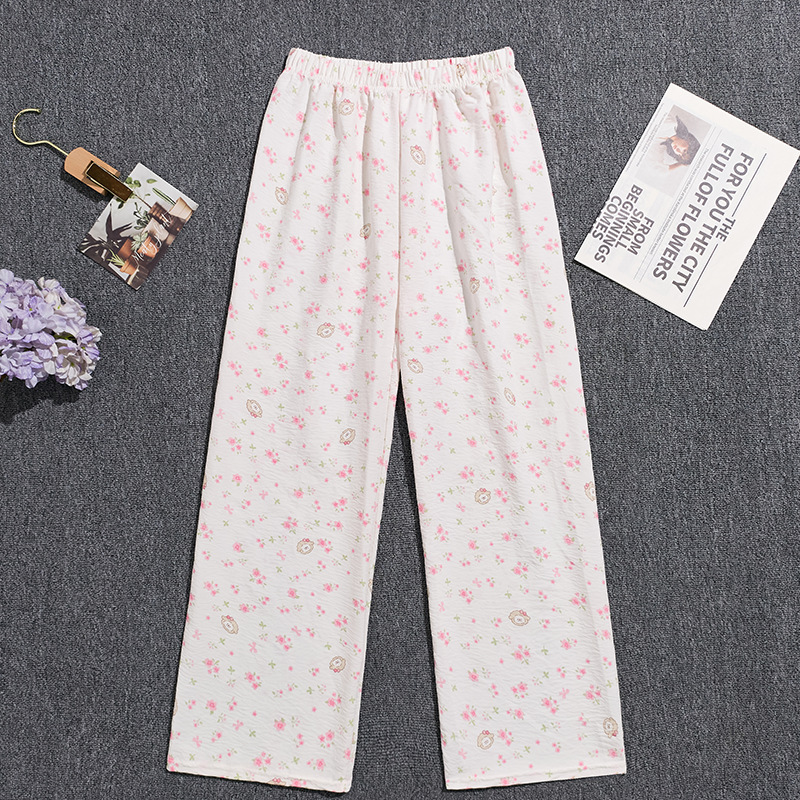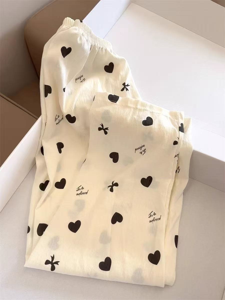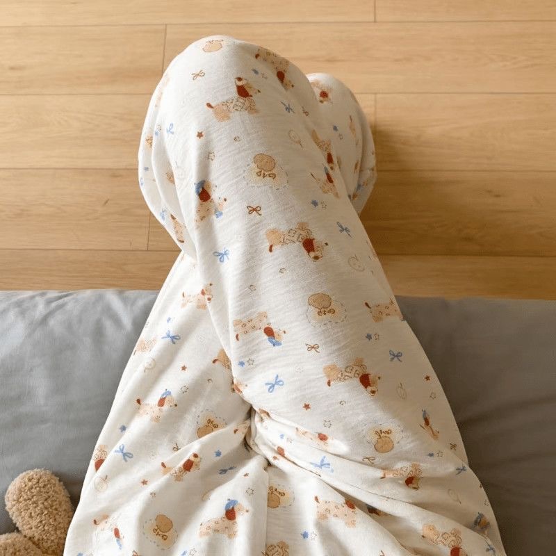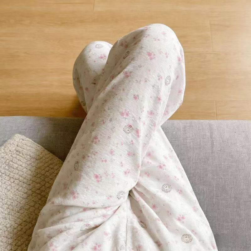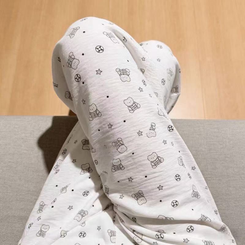 2026春夏季卡通云朵棉休闲阔腿裤高腰宽松垂感十足亲肤透气家居裤