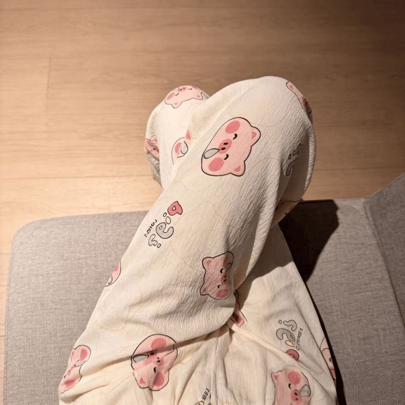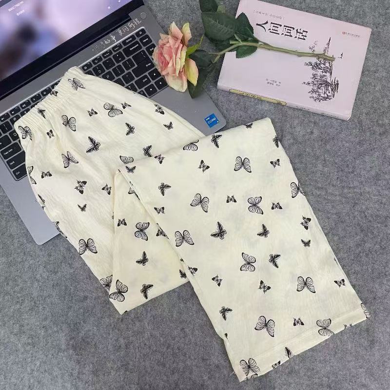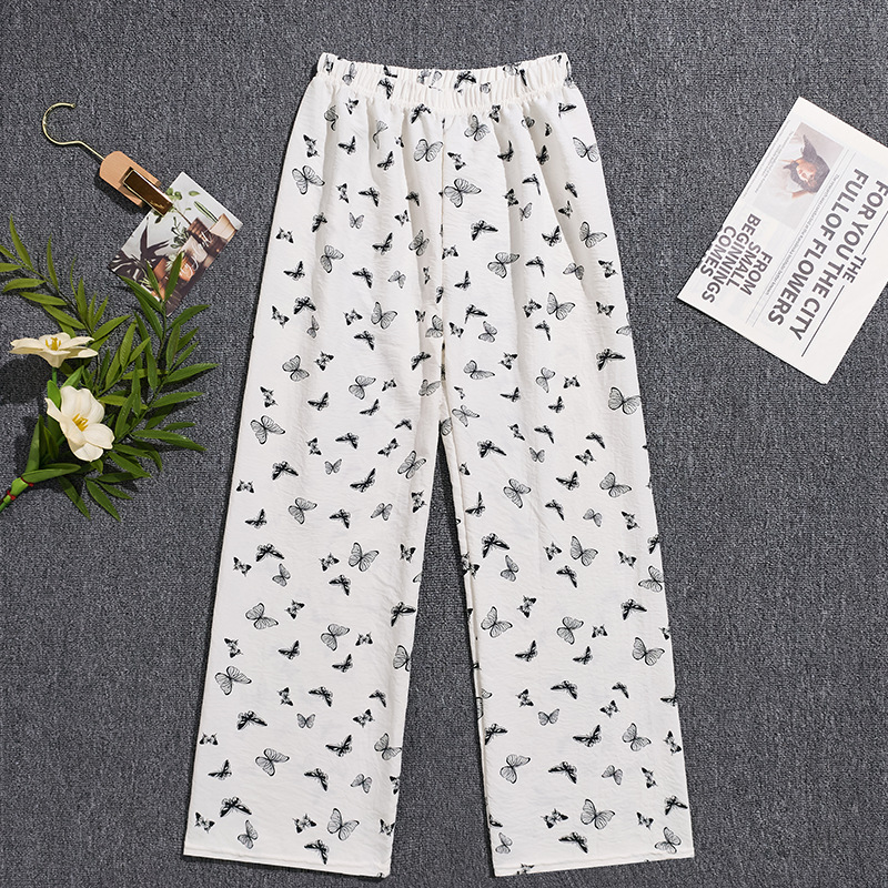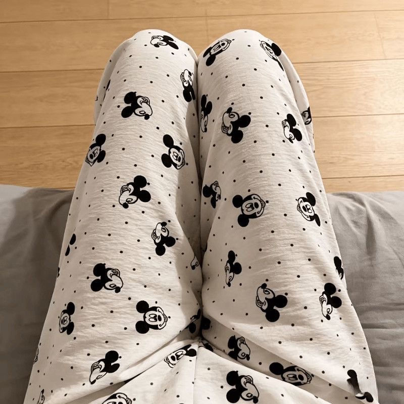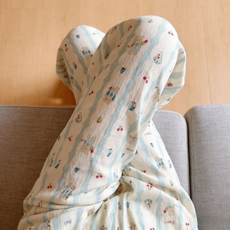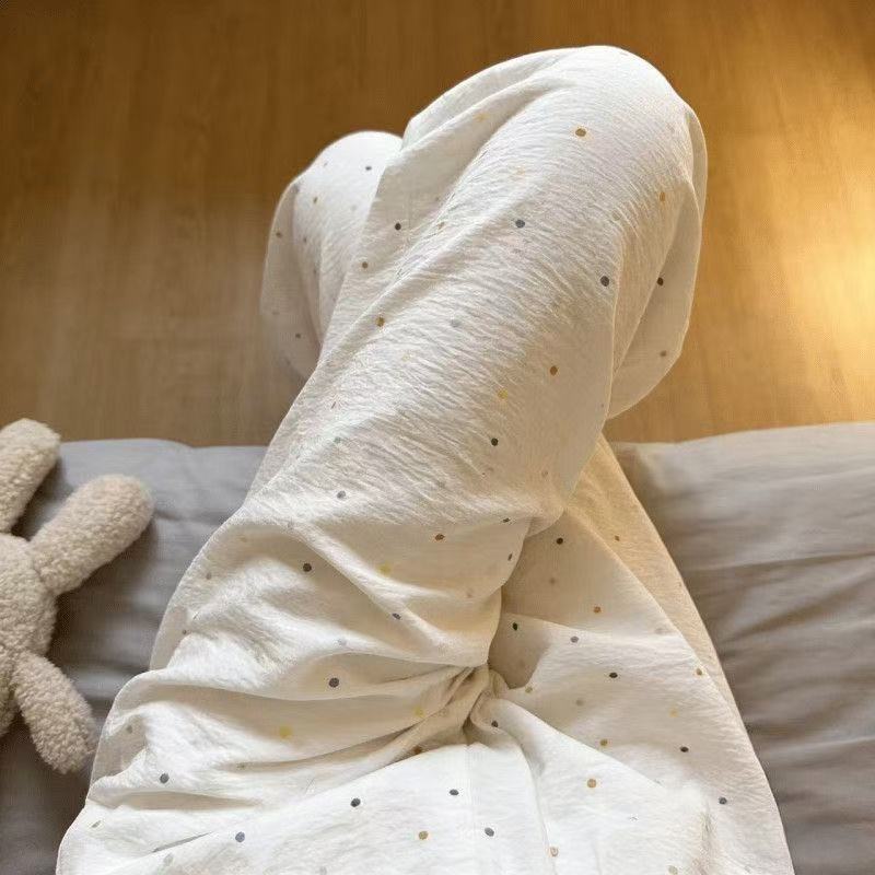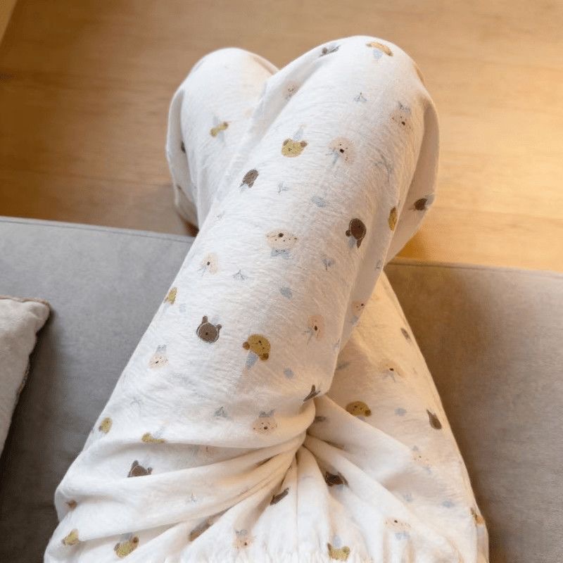2026春夏季卡通云朵棉休闲阔腿裤高腰宽松垂感十足亲肤透气家居裤