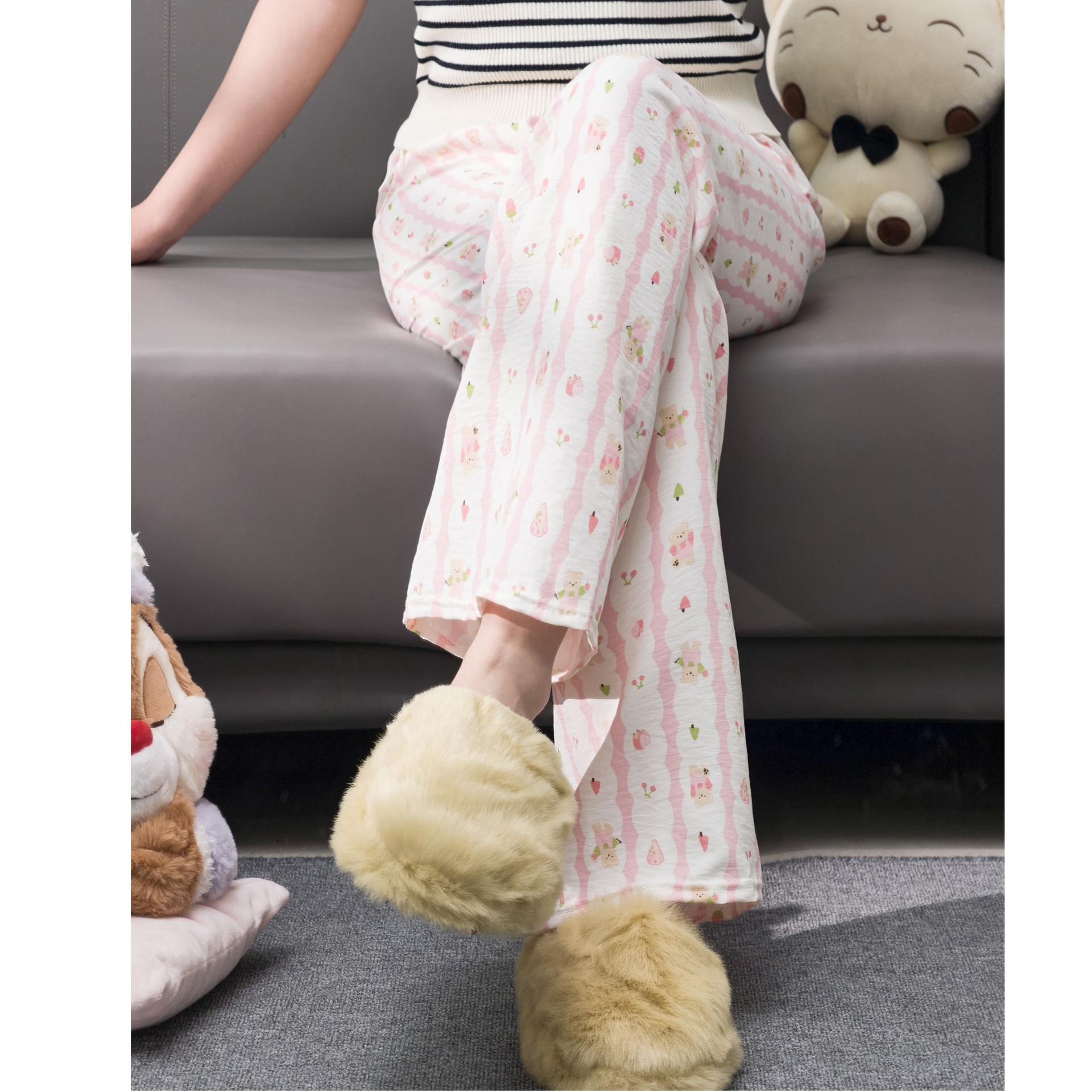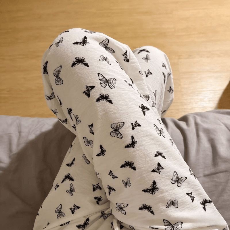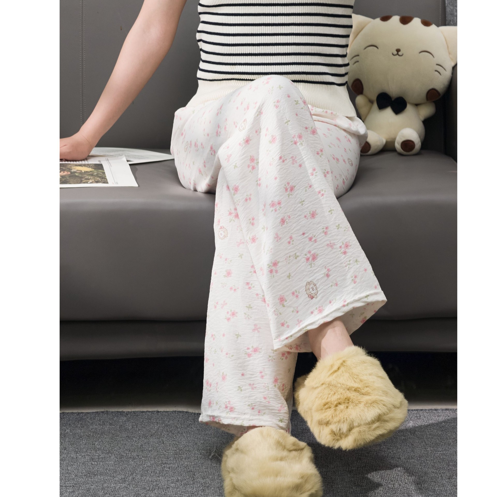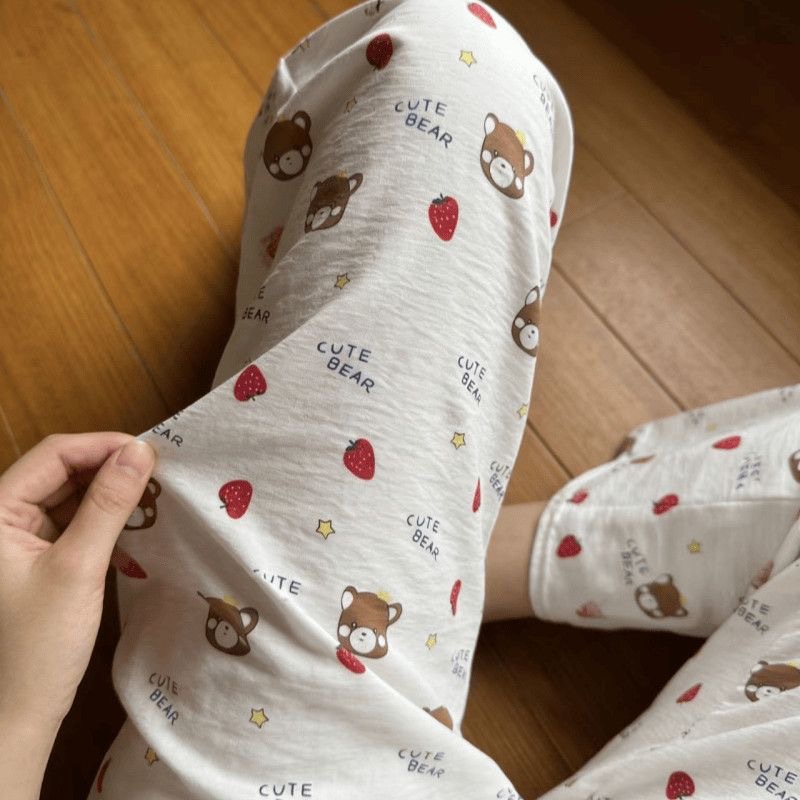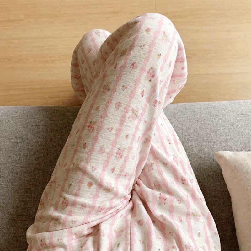 2026春夏季卡通云朵棉休闲阔腿裤高腰宽松垂感十足亲肤透气家居裤