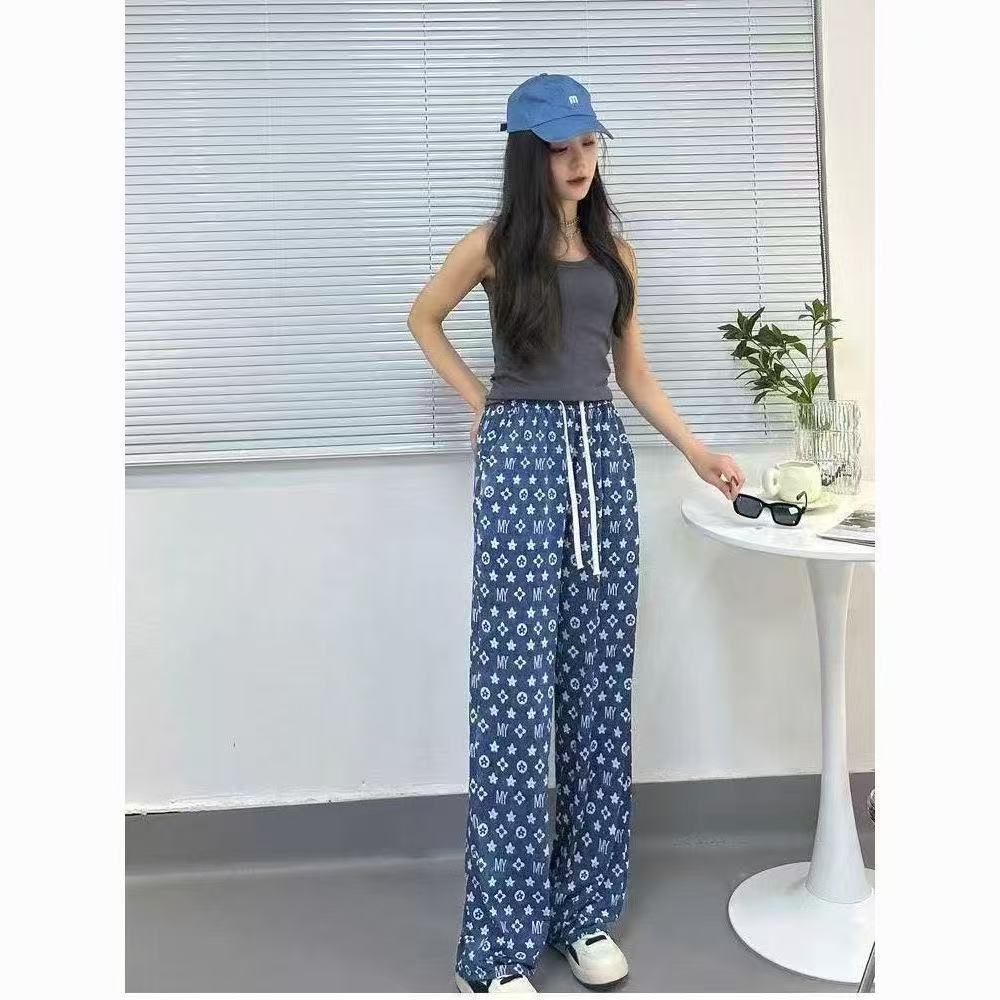 夏季冰丝女裤印花束脚裤沙滩凉凉裤冰雪丝长裤小个子百搭小脚裤女