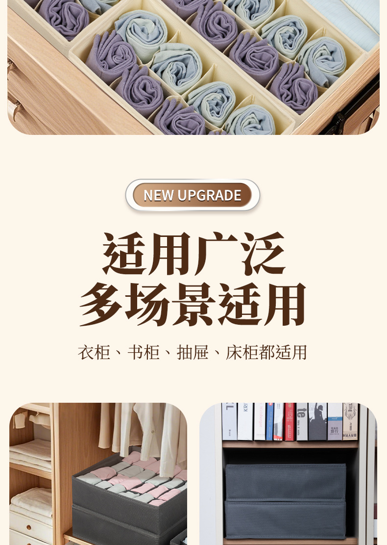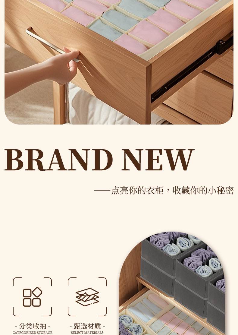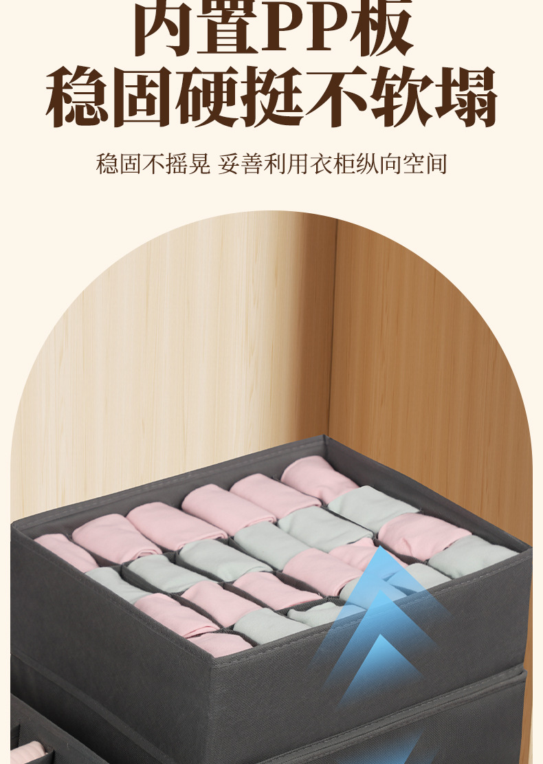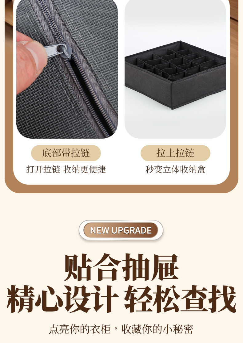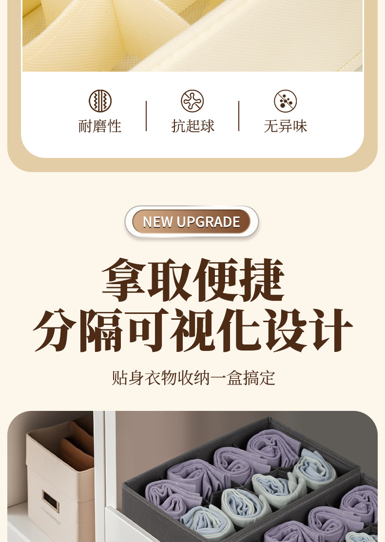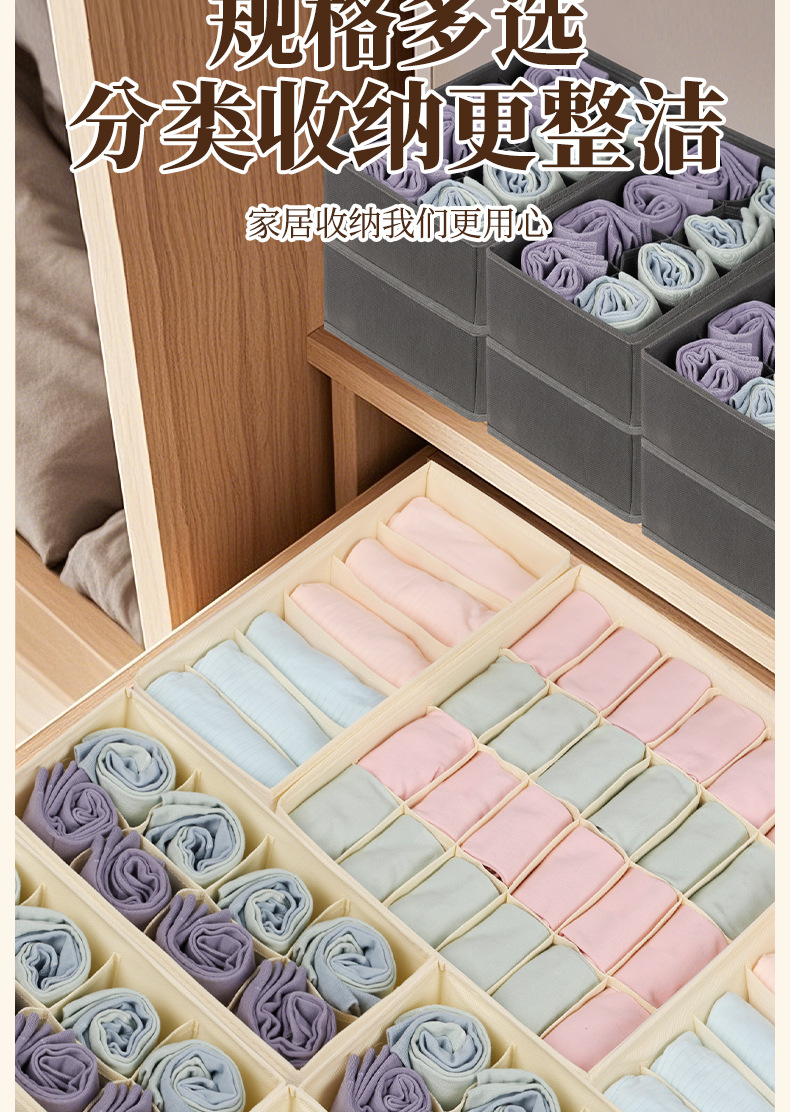 家用分格式整理无纺布格子袜子内衣收纳盒可折叠抽屉式布艺储物箱