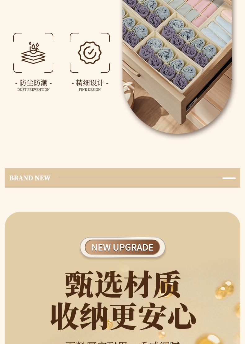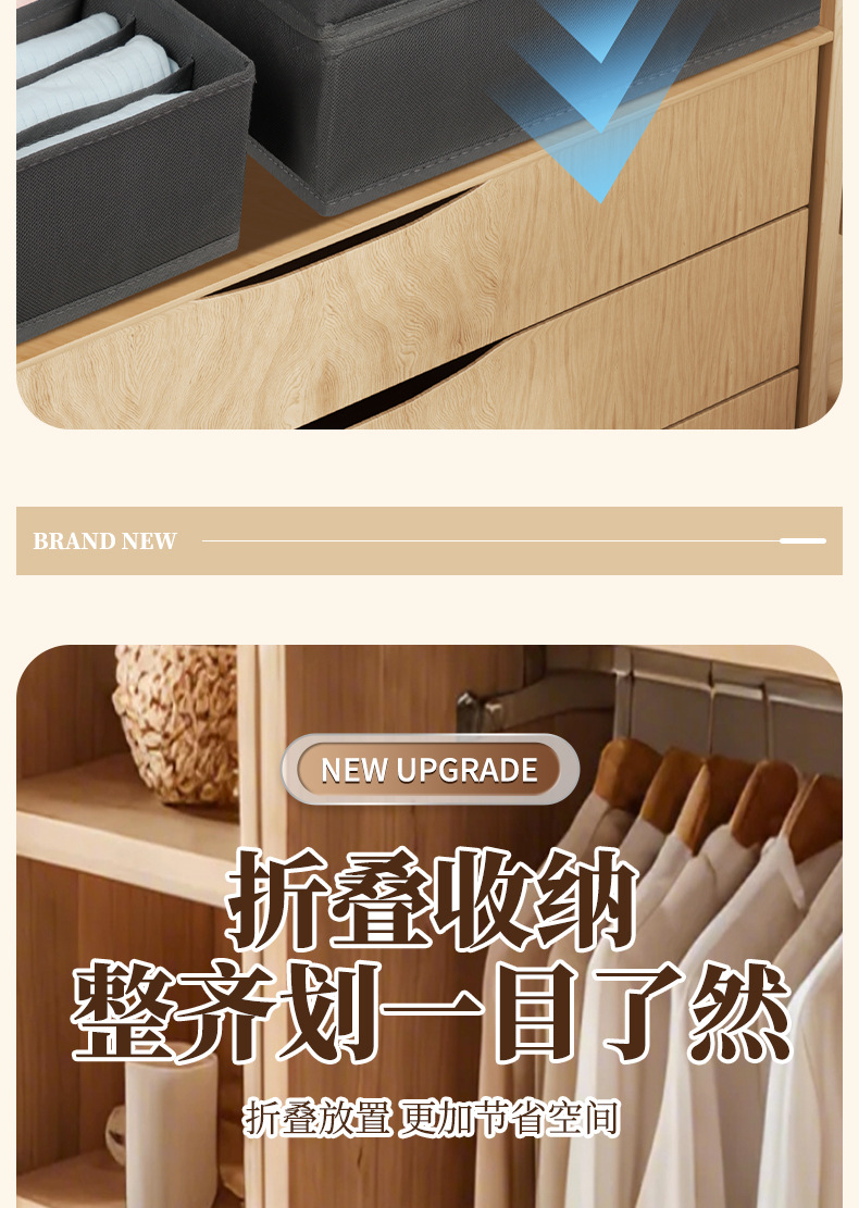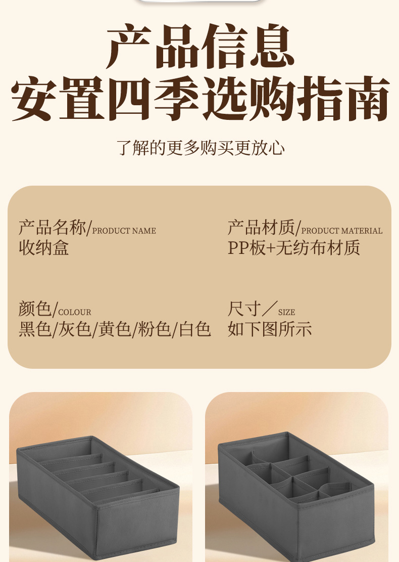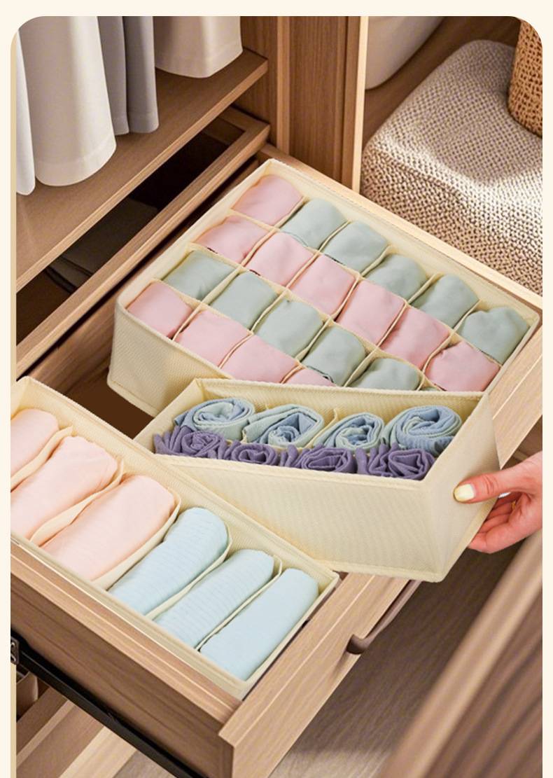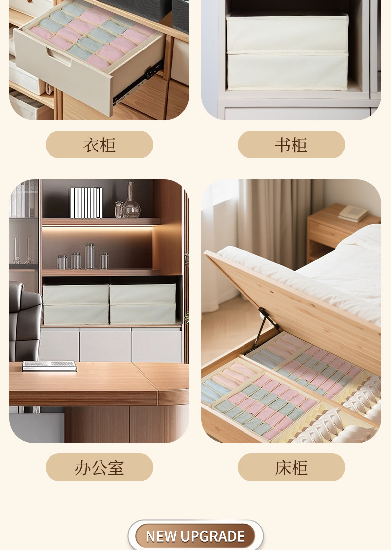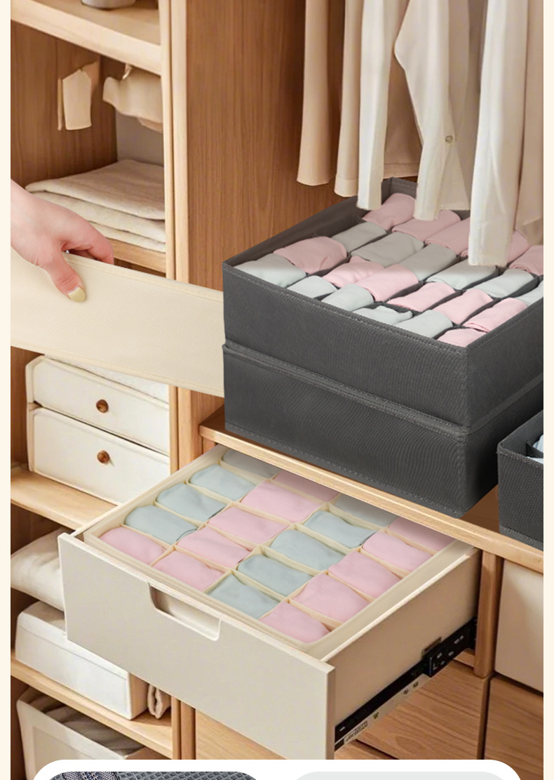 家用分格式整理无纺布格子袜子内衣收纳盒可折叠抽屉式布艺储物箱