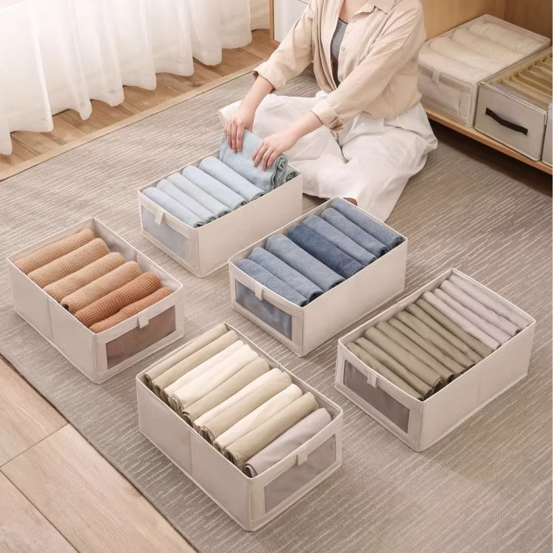 大号棉麻可视窗收纳盒厂可折叠杂物收纳筐内衣整理盒衣柜收纳神器