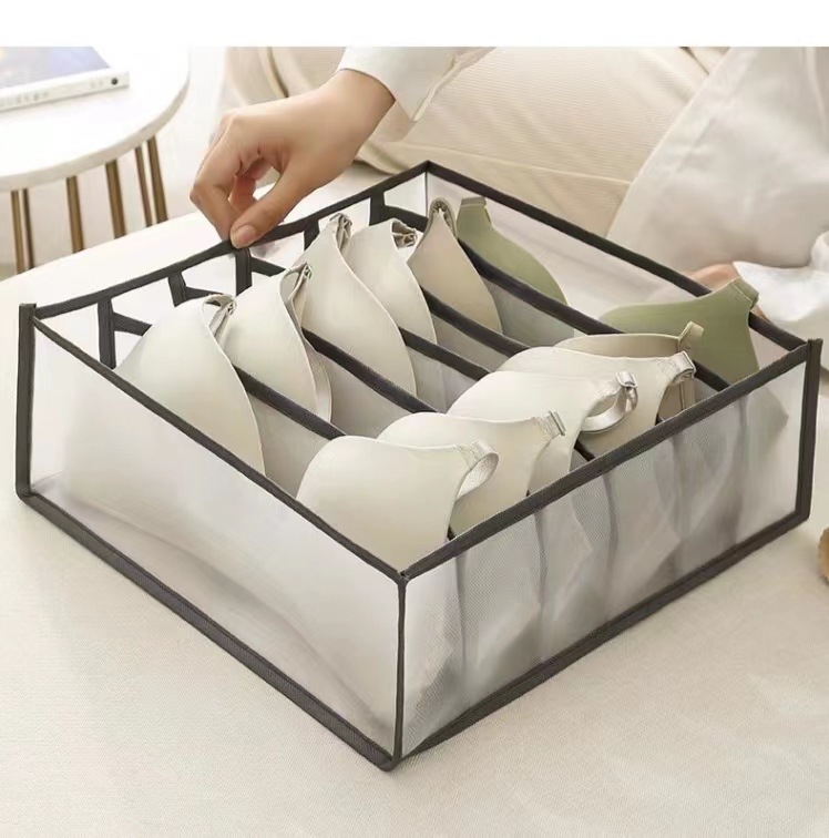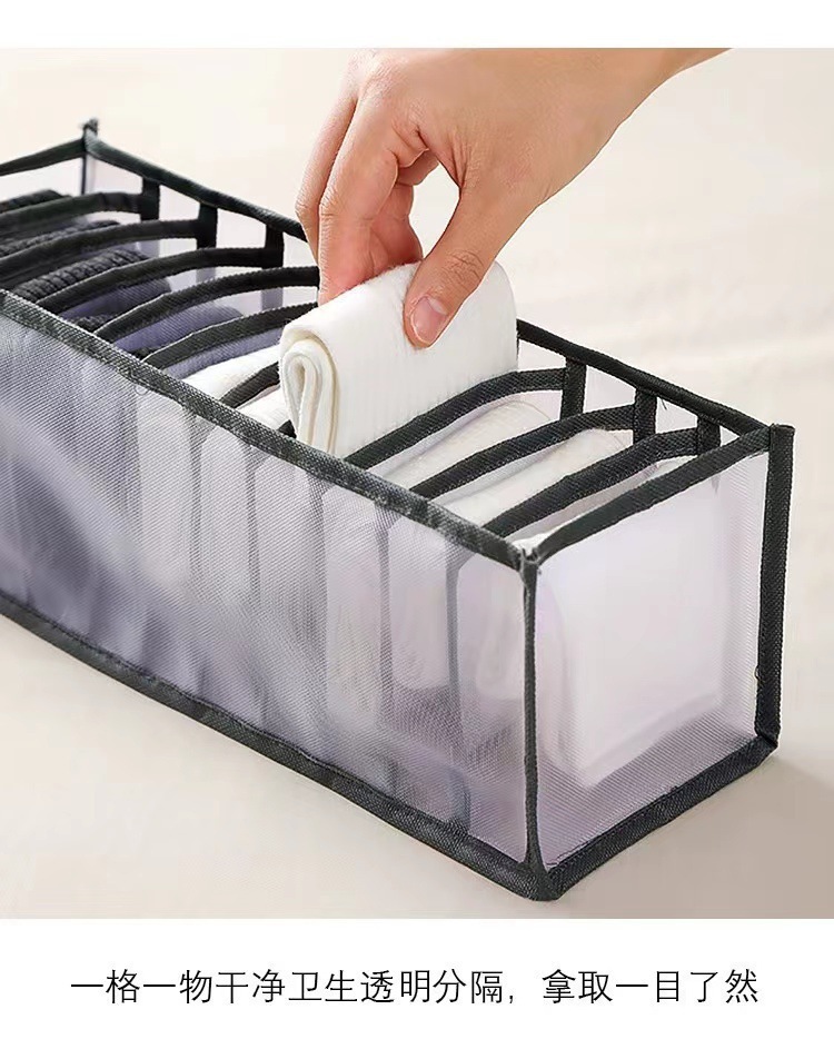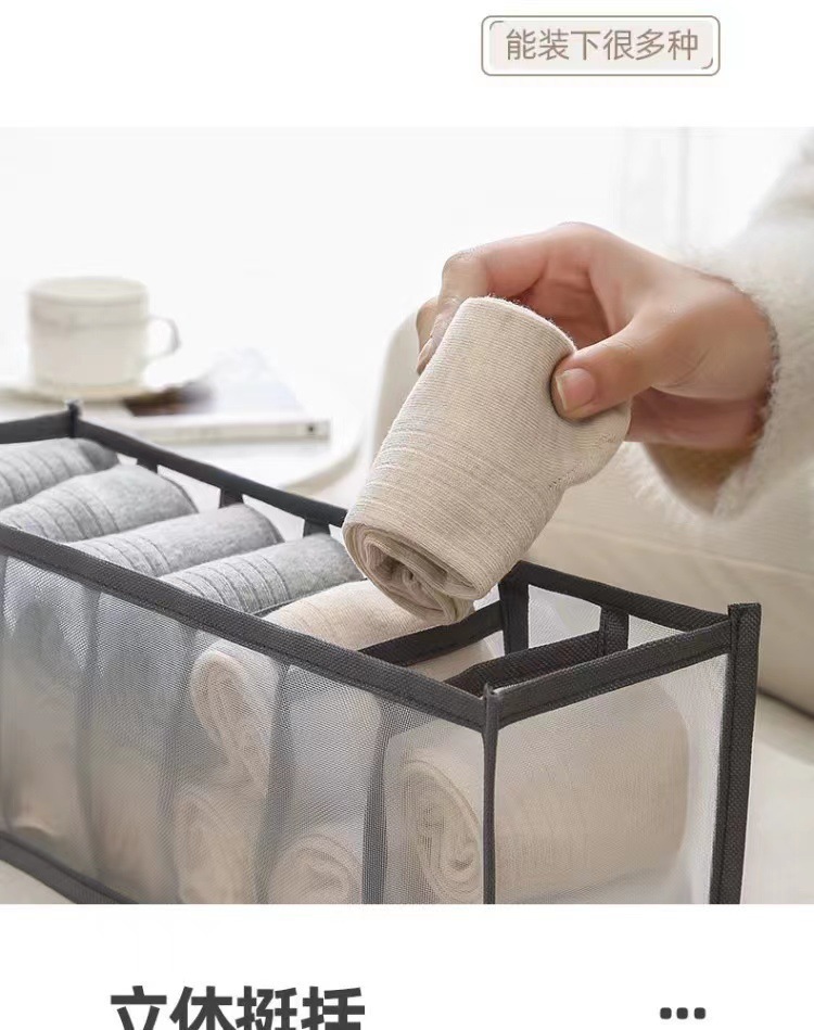 跨境内衣收纳盒分格抽屉式袜子三合一多功能网纱布艺抽屉式整理盒