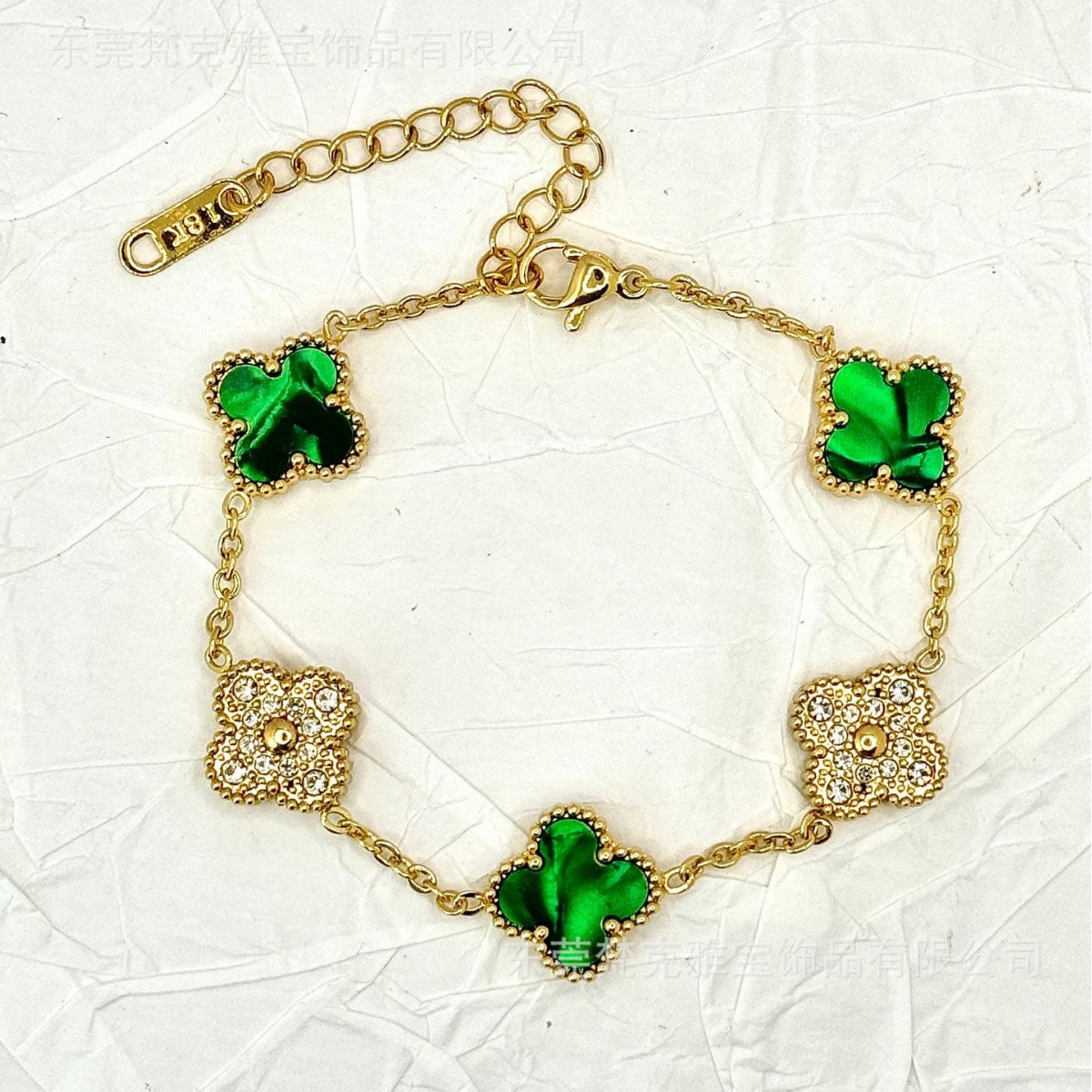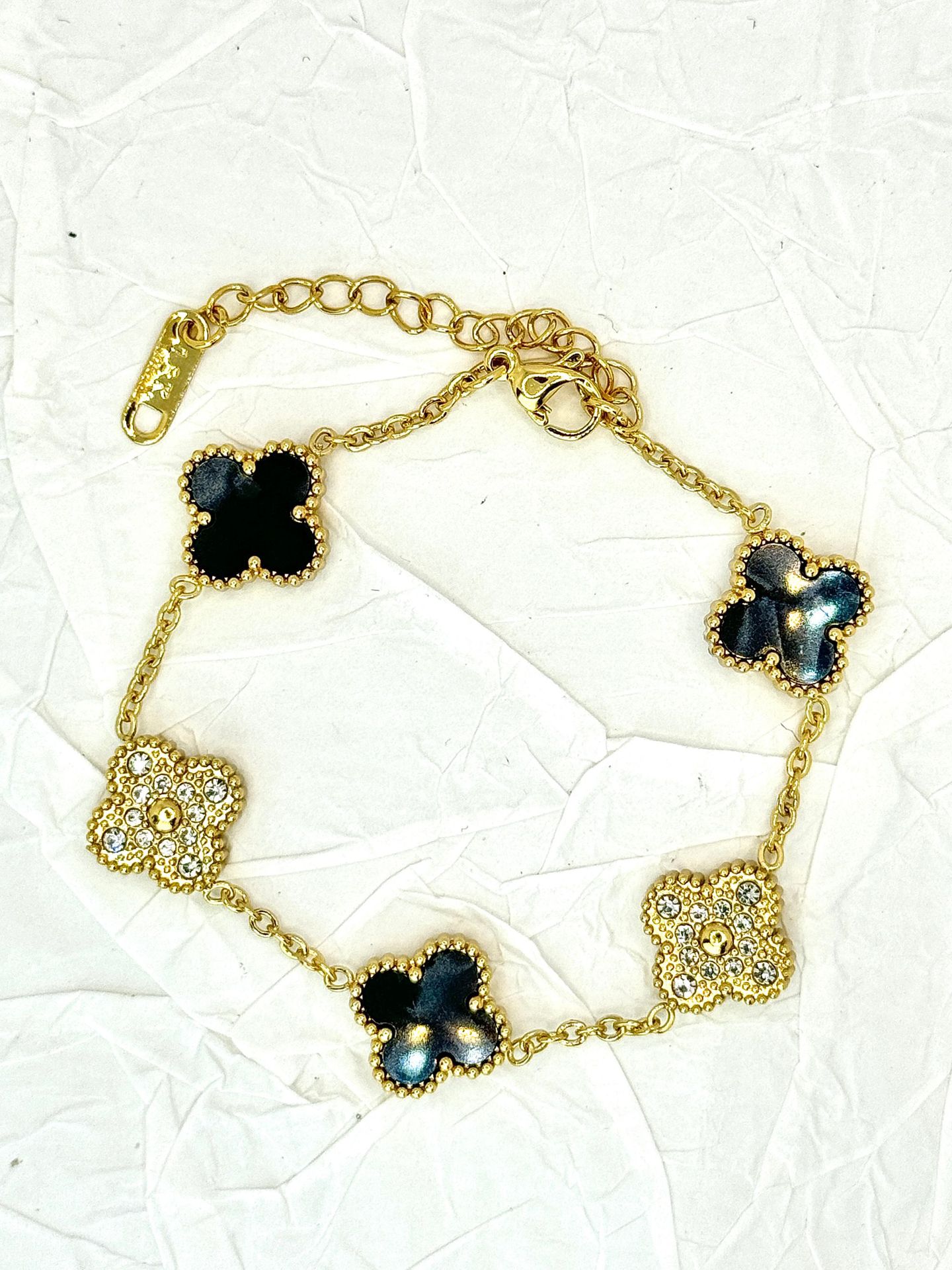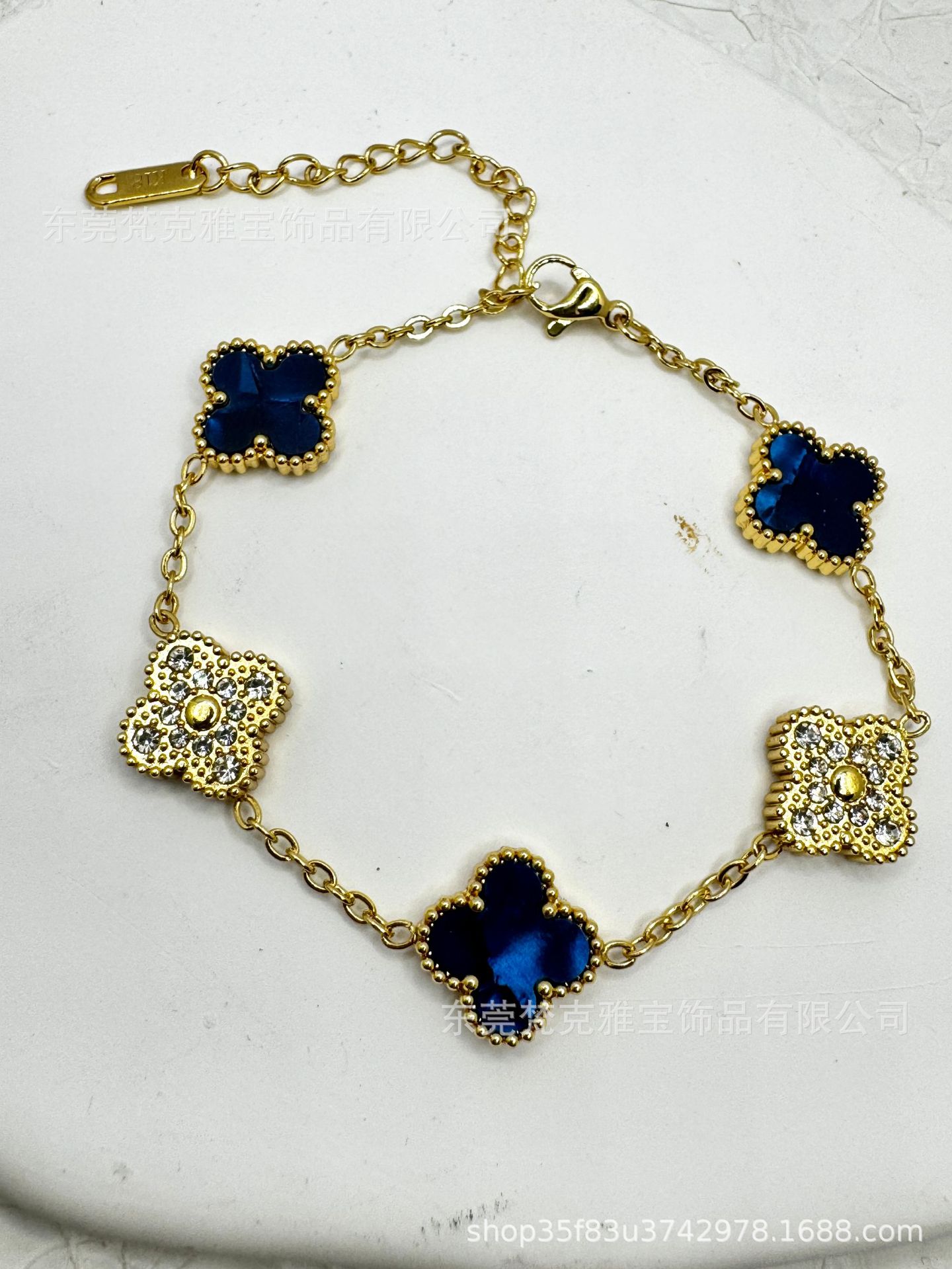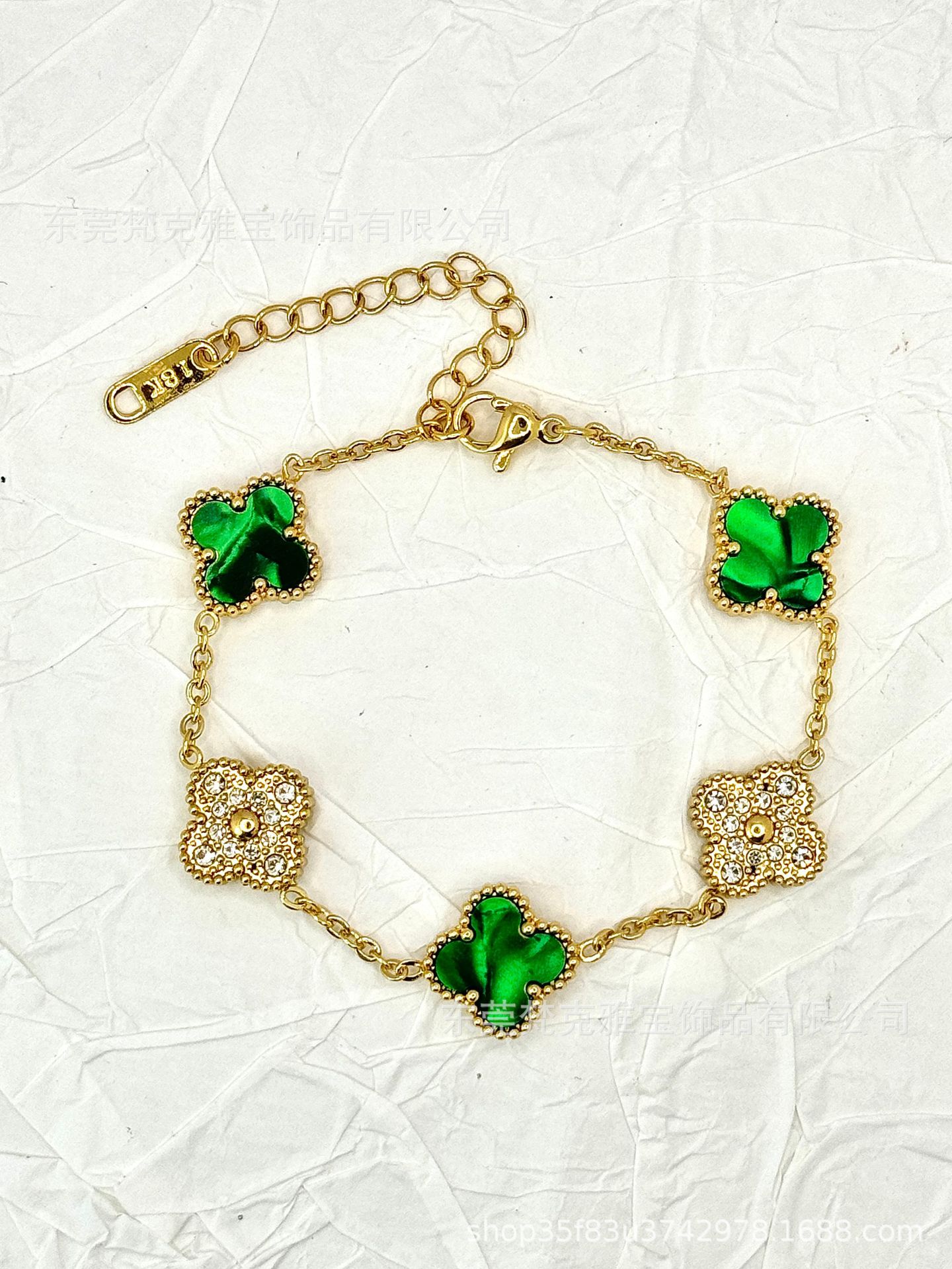 厂家直销四叶草镶钻五花手链女真空电镀18K金五花满钻手链不掉色
