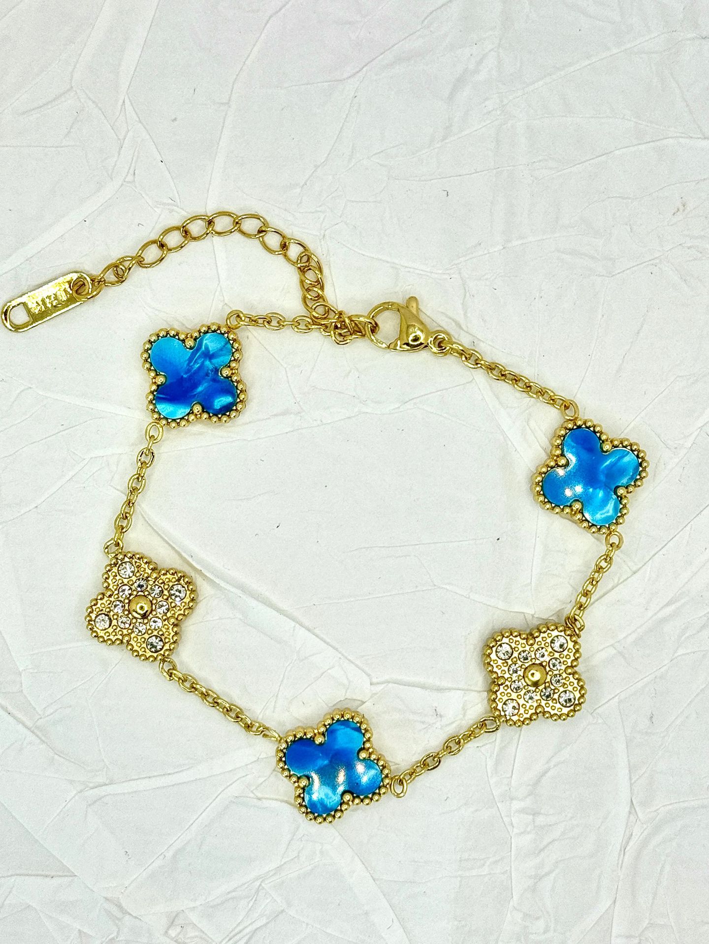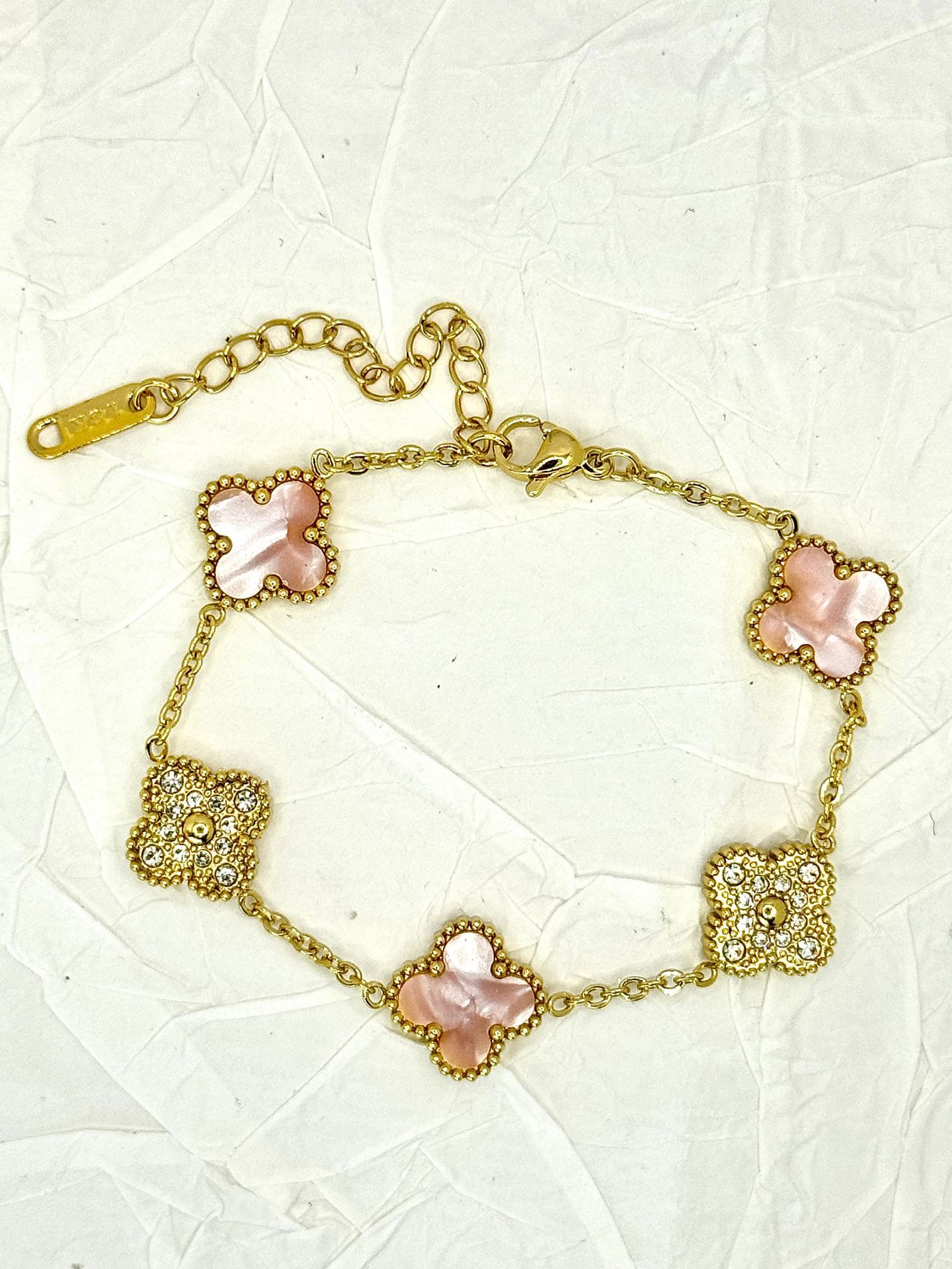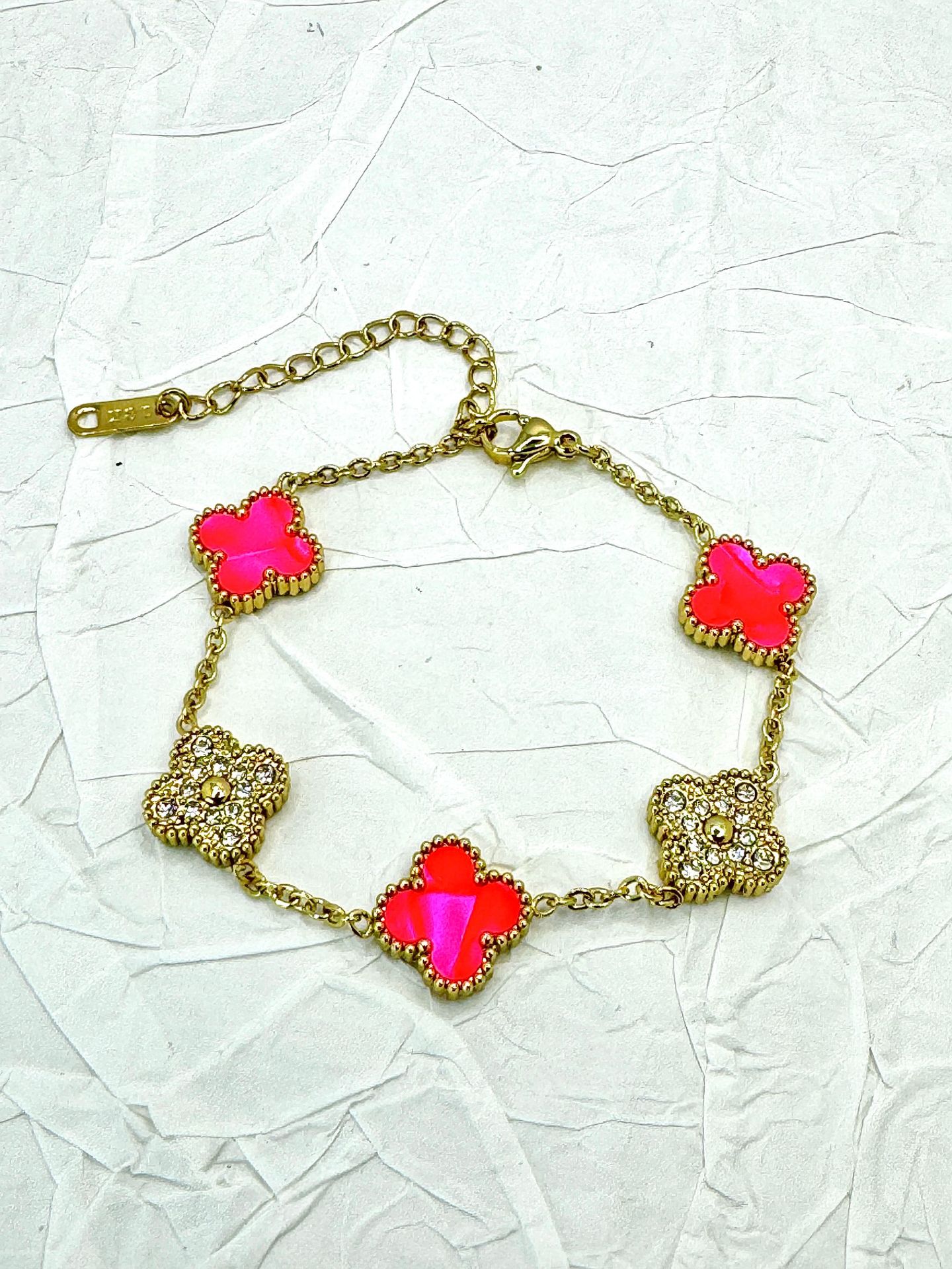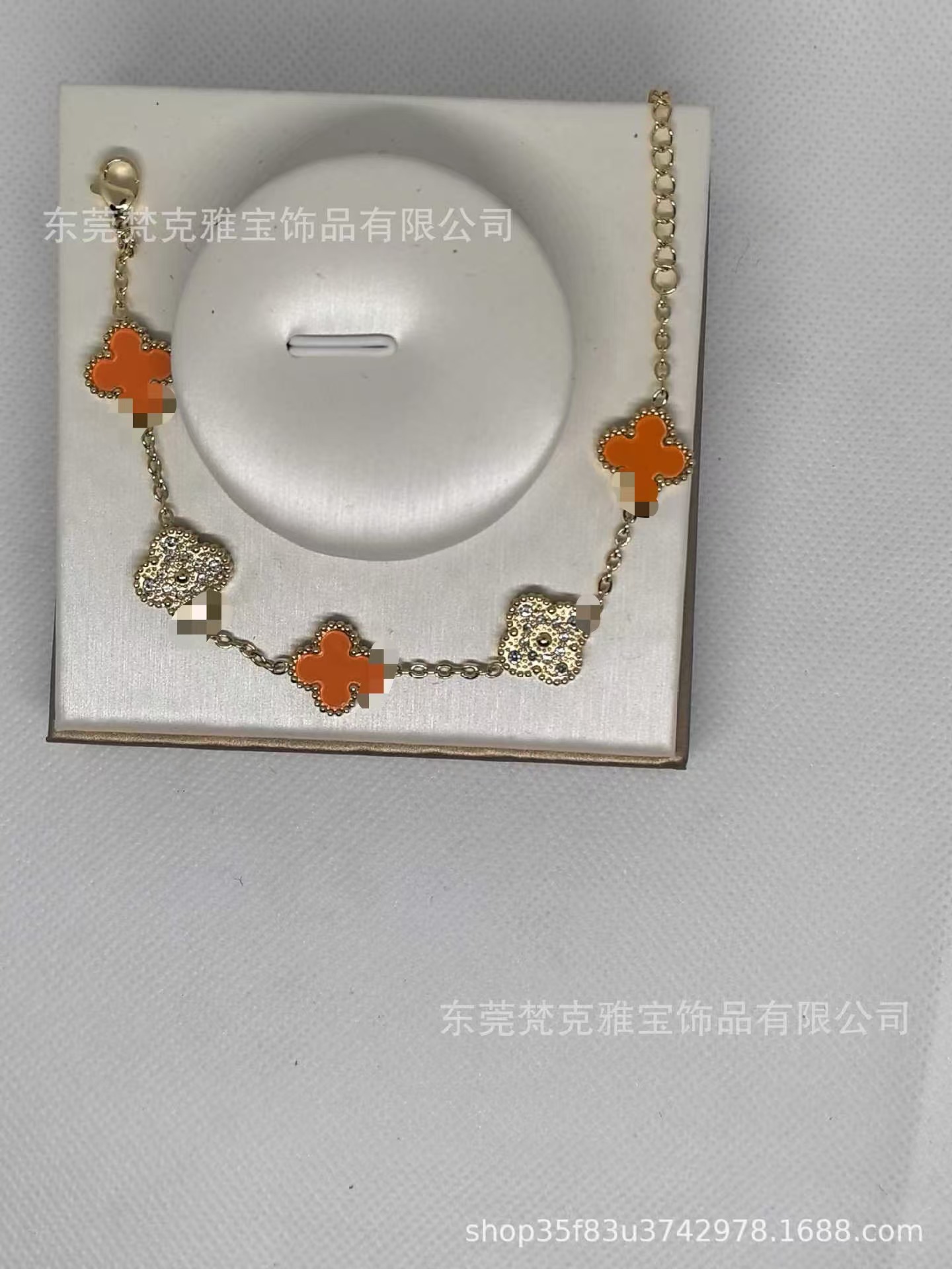 厂家直销四叶草镶钻五花手链女真空电镀18K金五花满钻手链不掉色