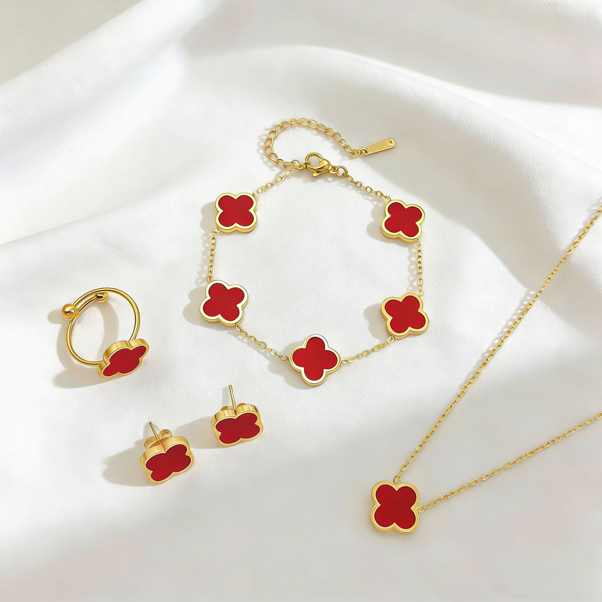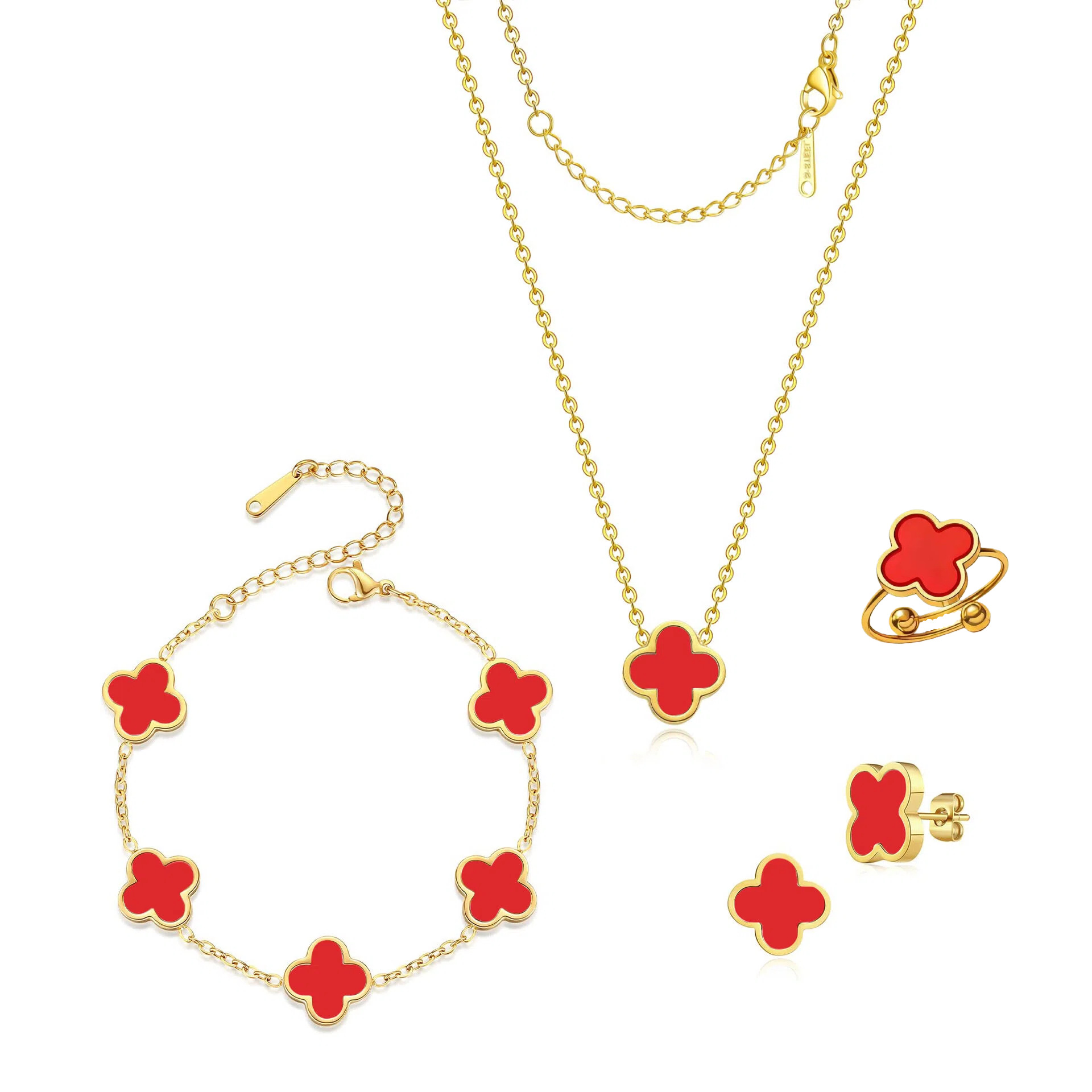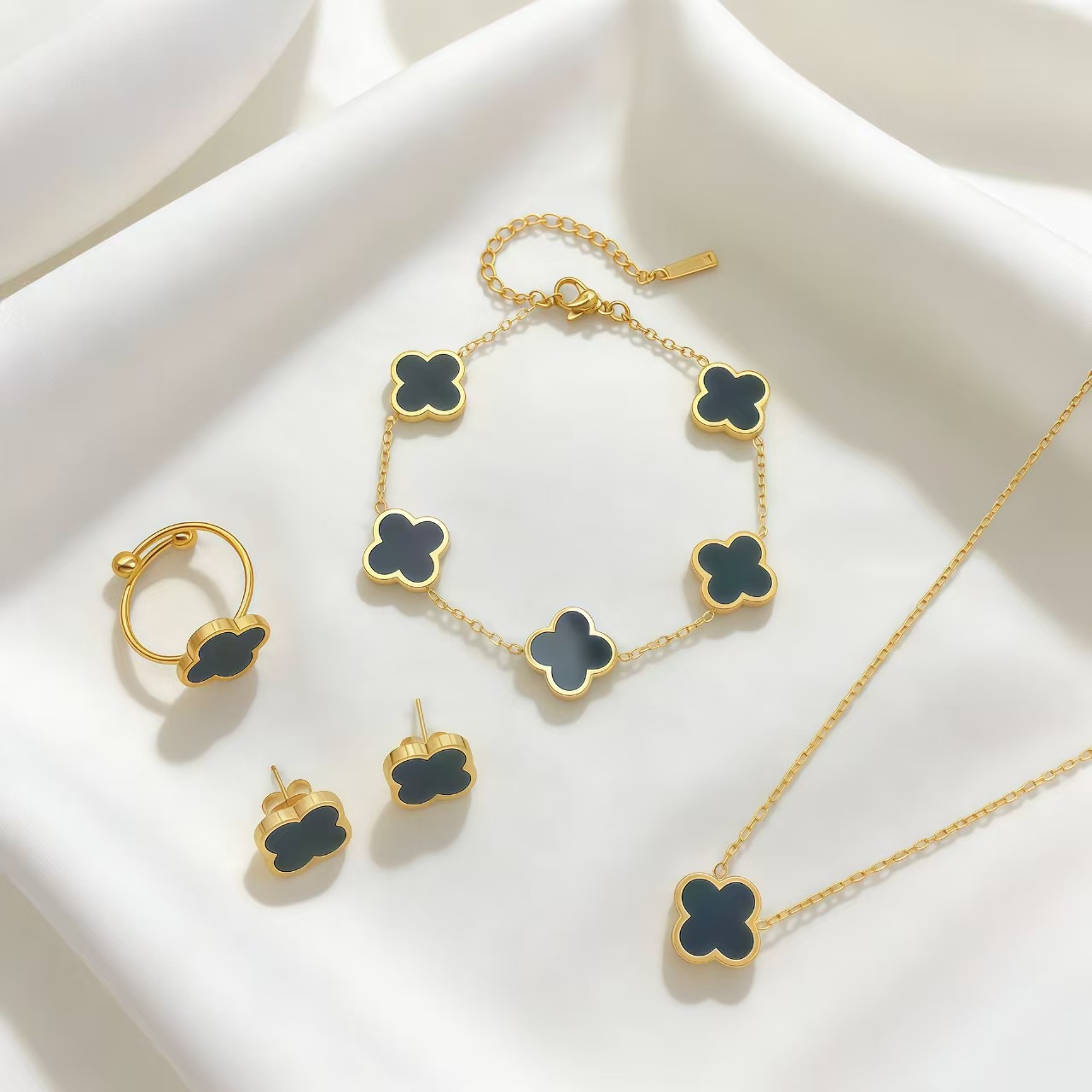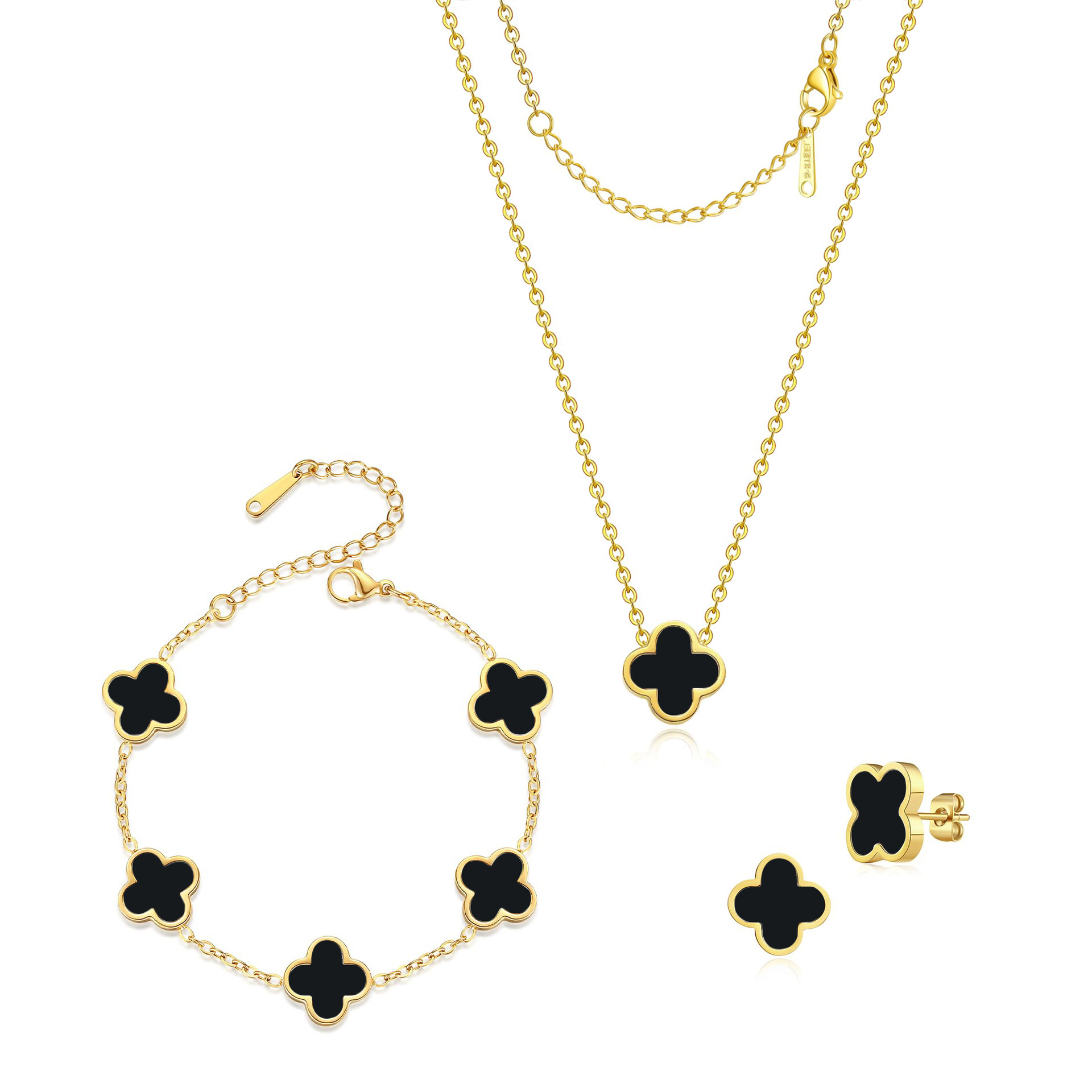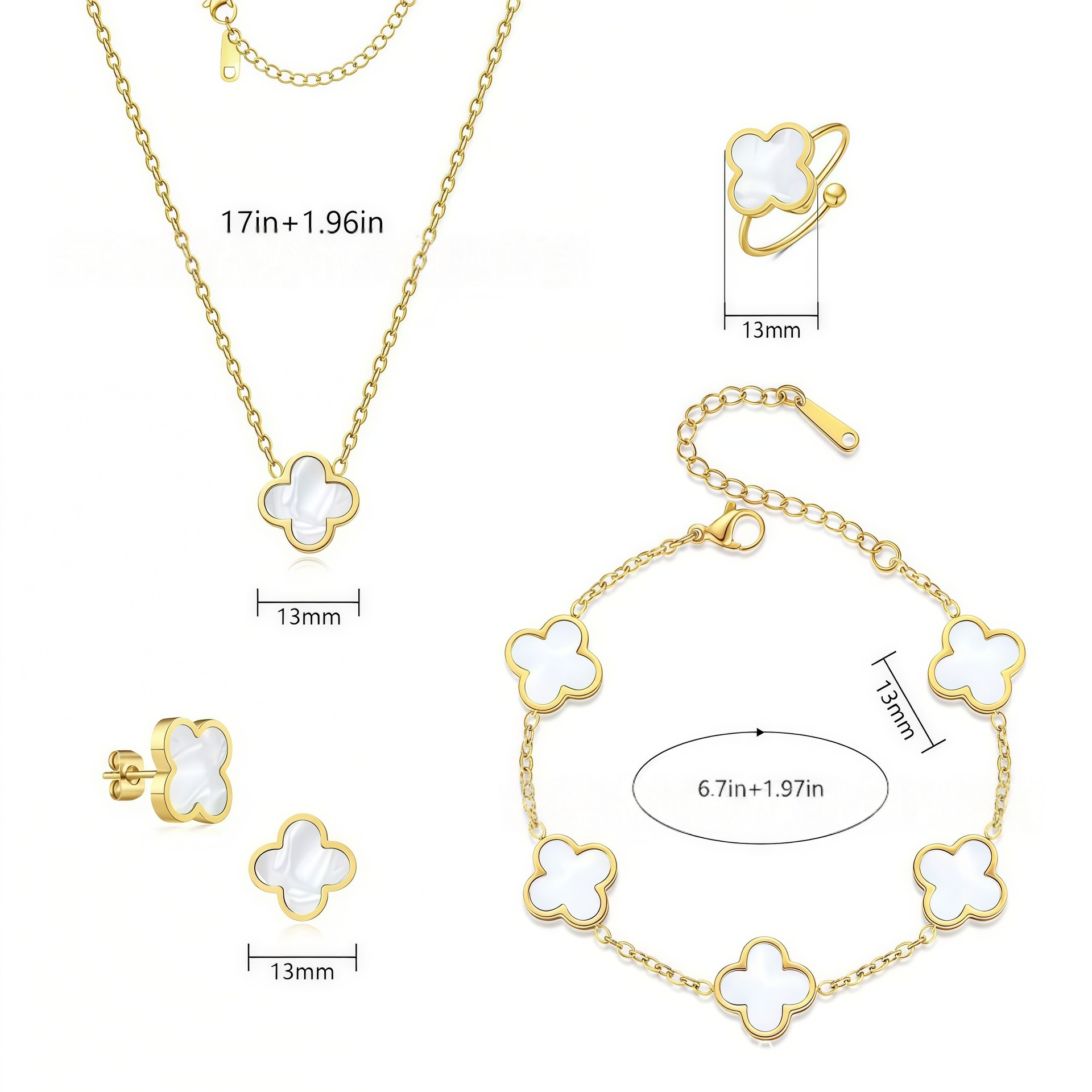 工厂13mm双面光面贝母四叶草套装 跨境防侵权款式 不锈钢系列批发