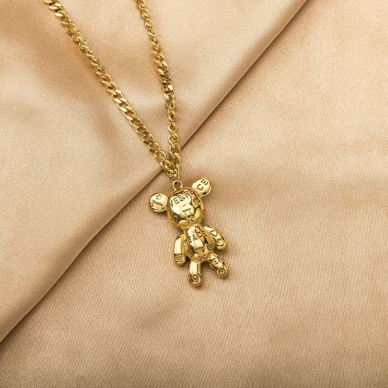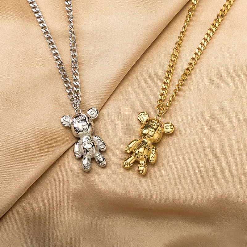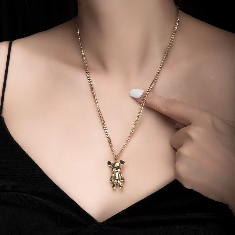 轻奢暴力熊项链钛钢18k真金不掉色小众设计感高级锁骨链百搭批发