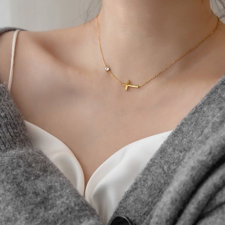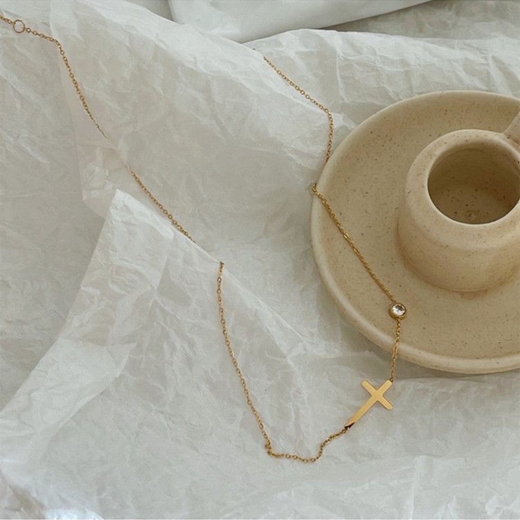 轻奢钛钢不掉色十字架水晶项链手链小众设计感高级简约叠戴锁骨链