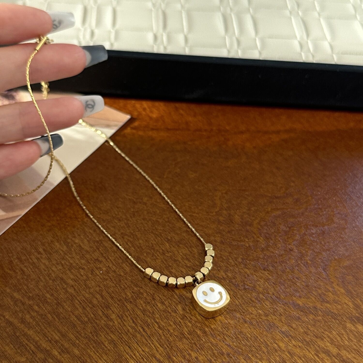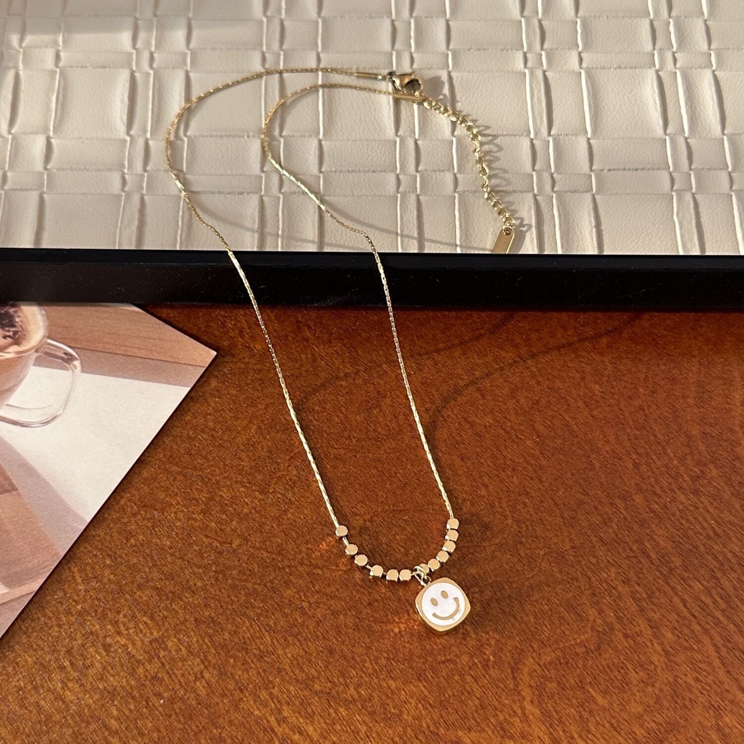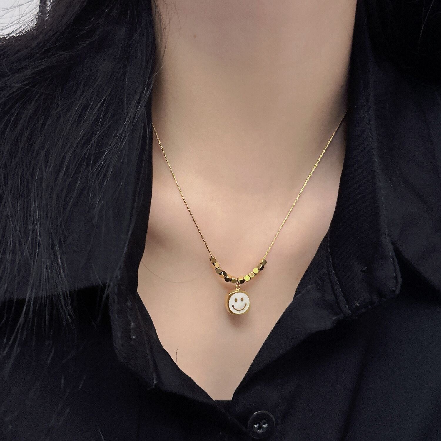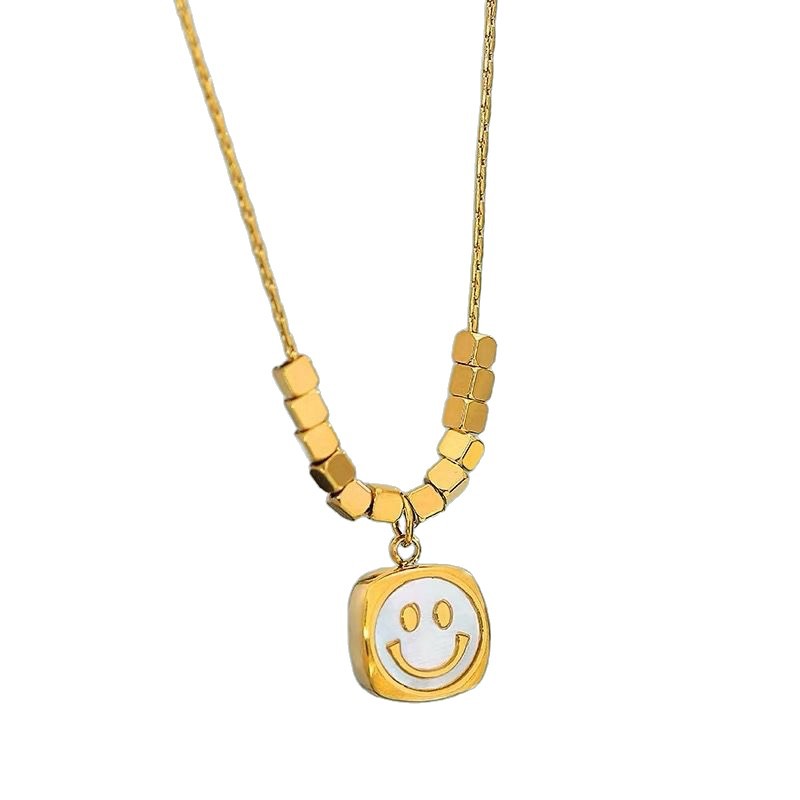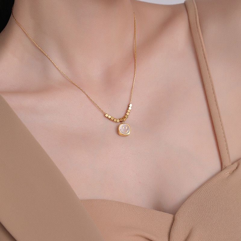 跨境轻奢小众贝母笑脸项链钛钢不掉色简约小众百搭吊坠叠戴锁骨链