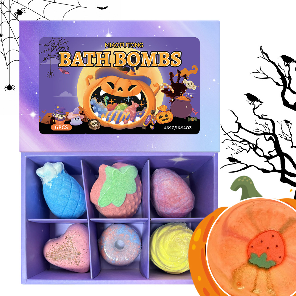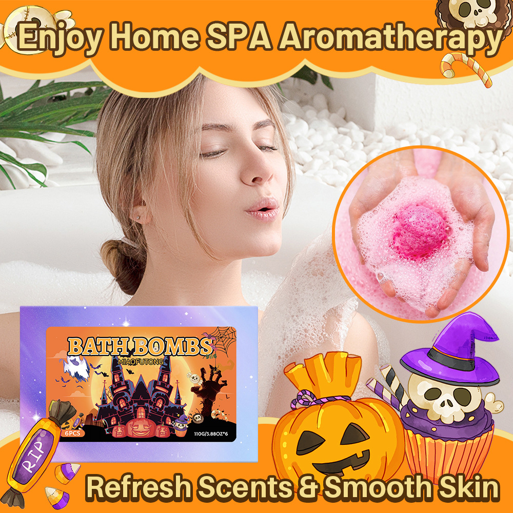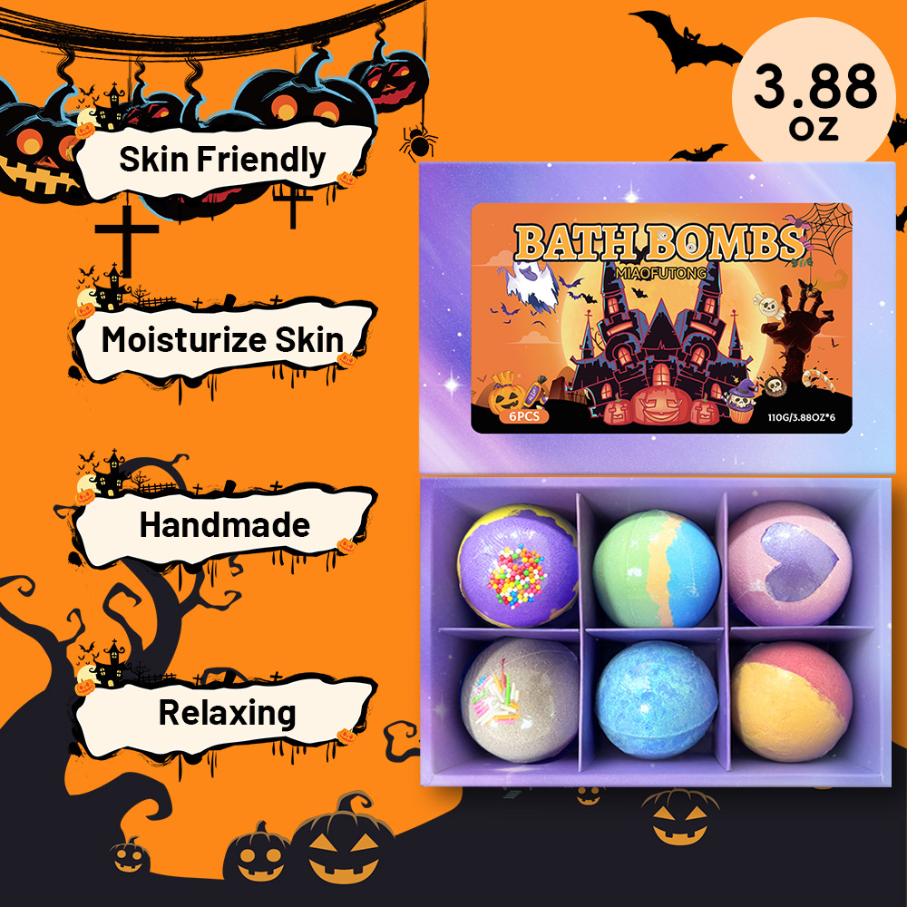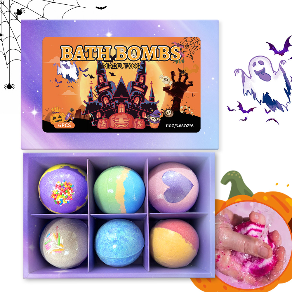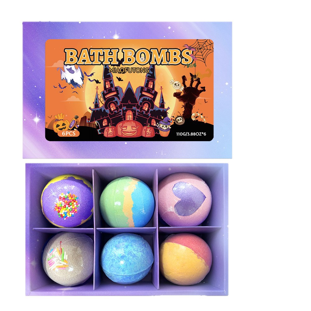 跨境泡澡浴盐球套装100g*6个香氛沐浴球爆炸泡泡浴球万圣节礼盒装