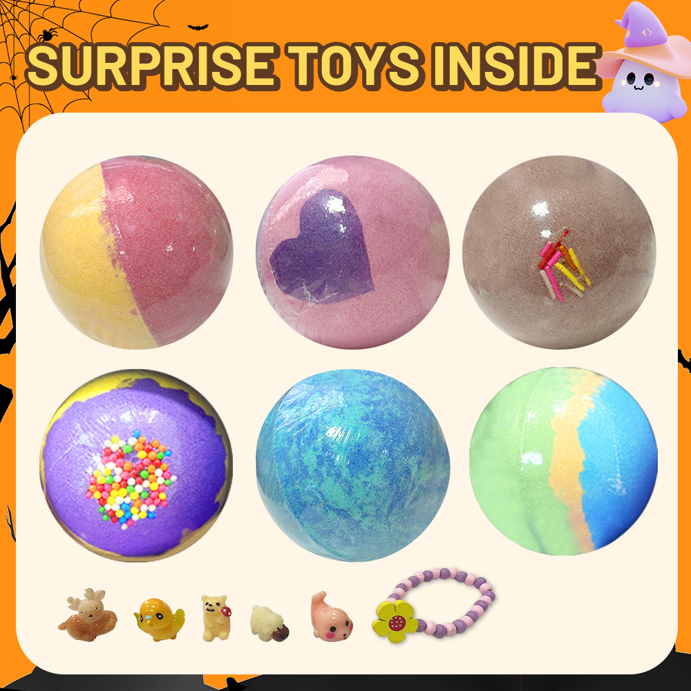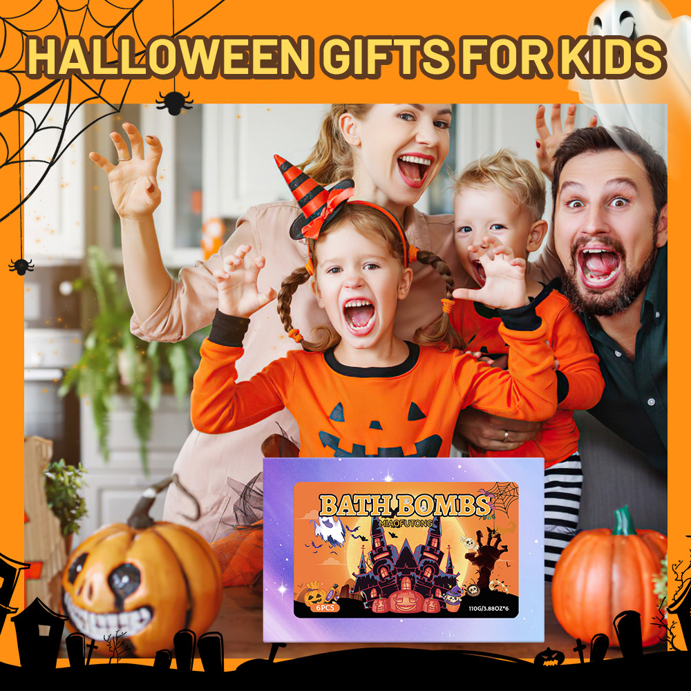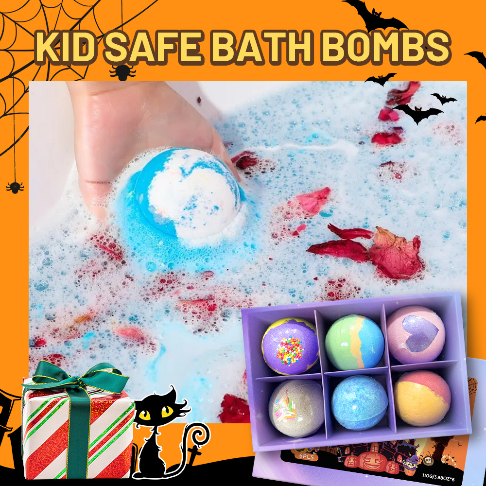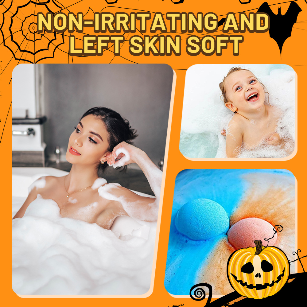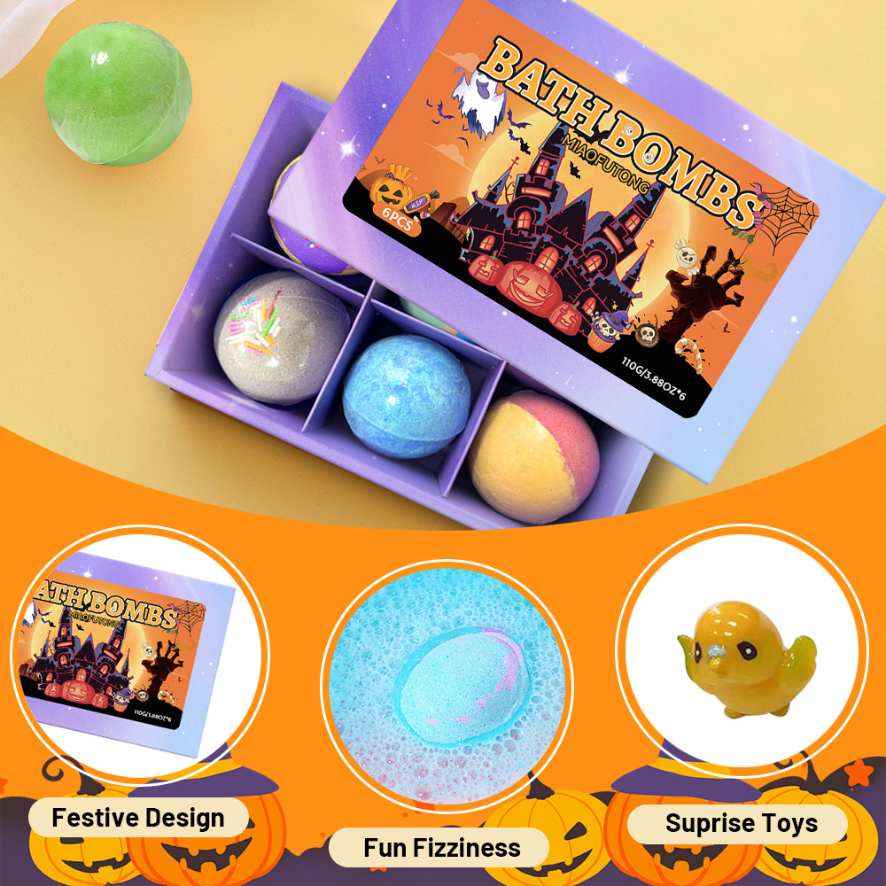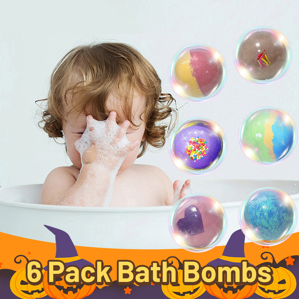 跨境泡澡浴盐球套装100g*6个香氛沐浴球爆炸泡泡浴球万圣节礼盒装