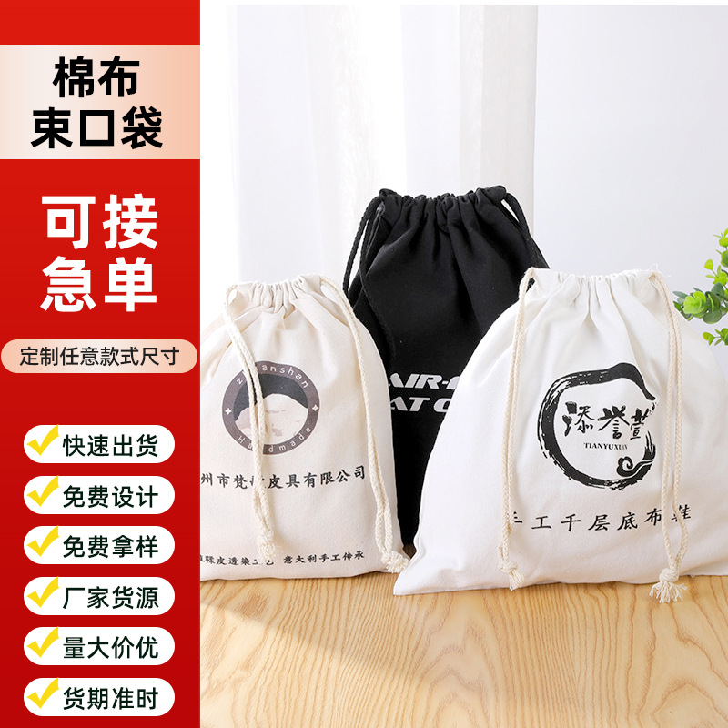 空白棉布束口袋防尘收纳抽绳大米帆布包装袋化妆品手提帆布袋批发
