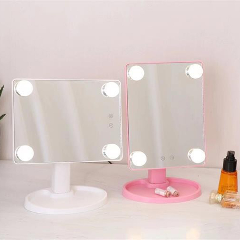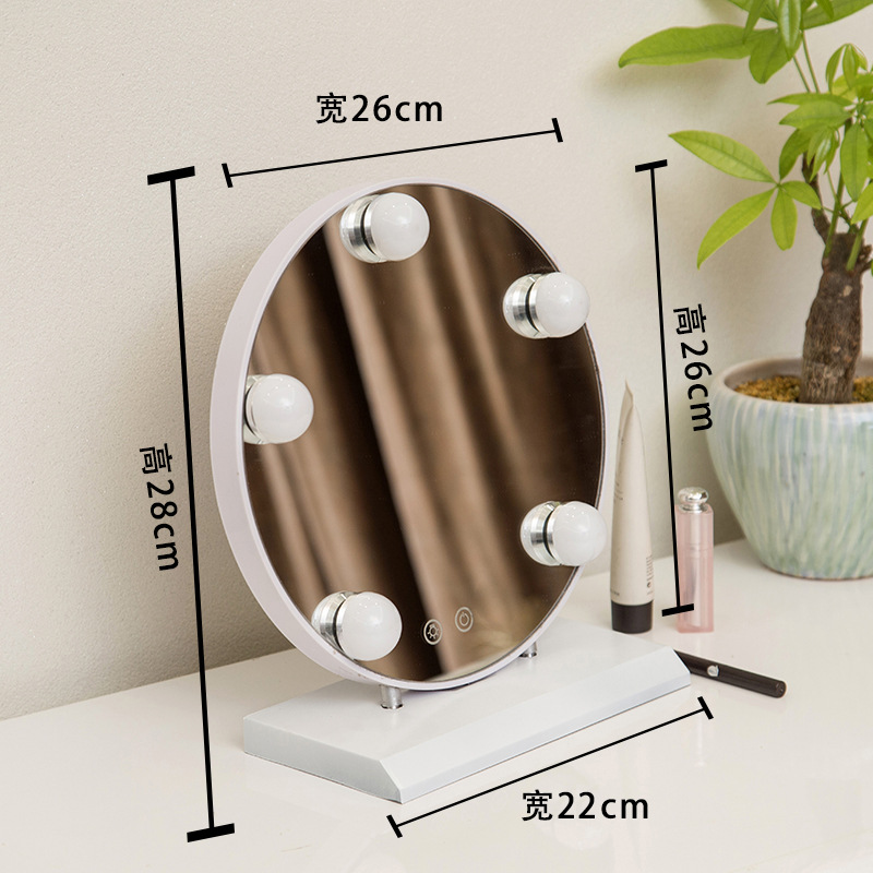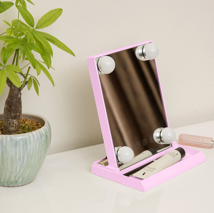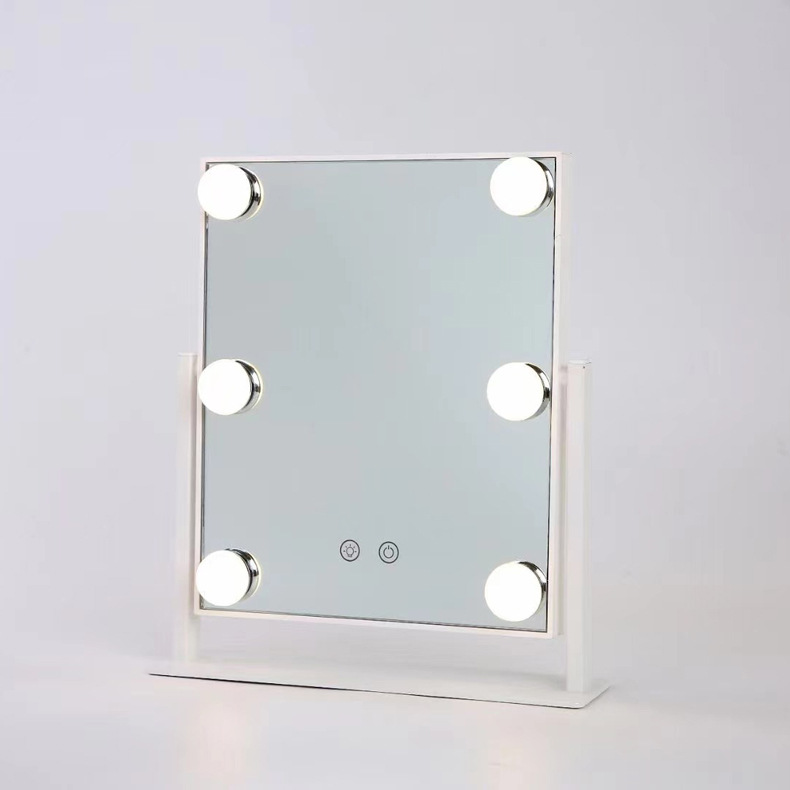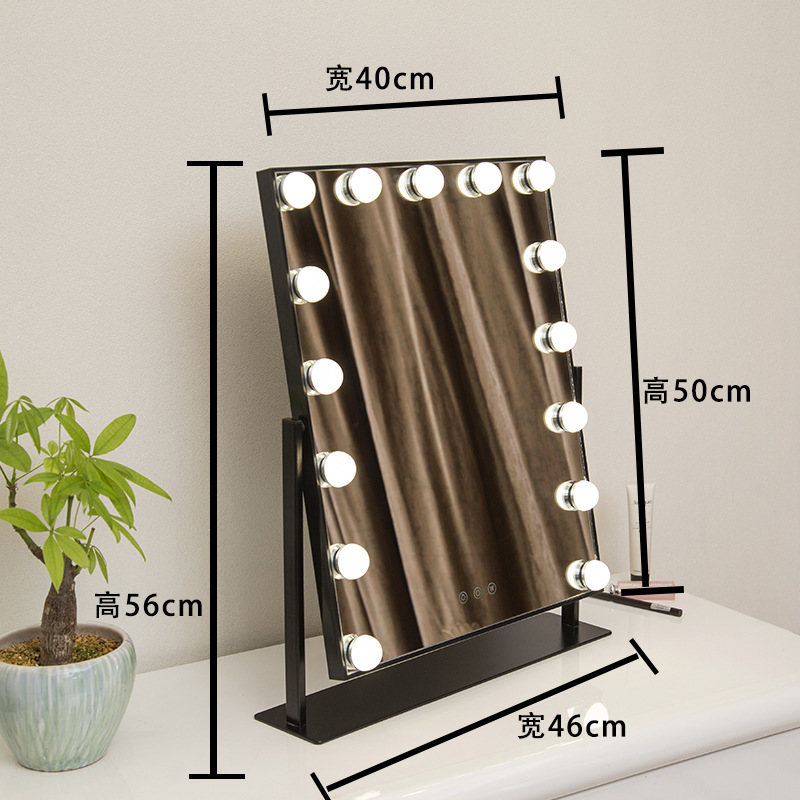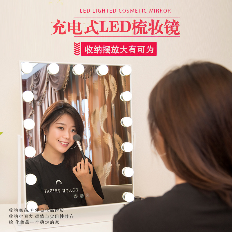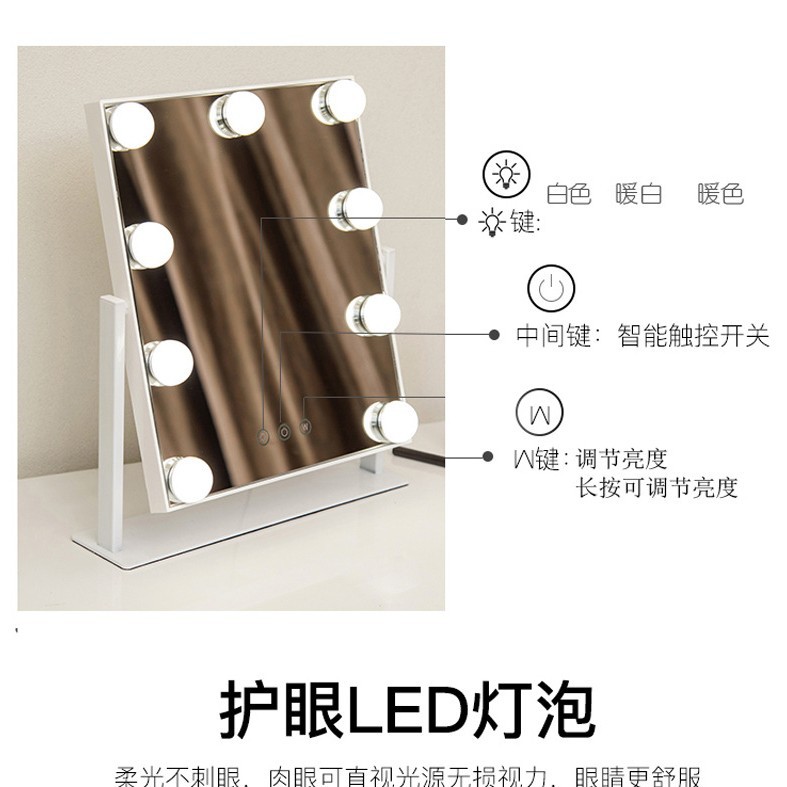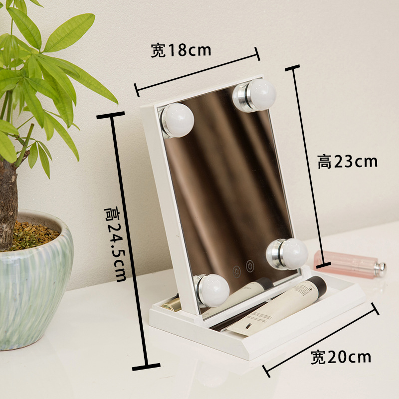 化妆镜LED带灯智能补光镜方形带灯泡台式梳妆镜 高清补光化妆镜子