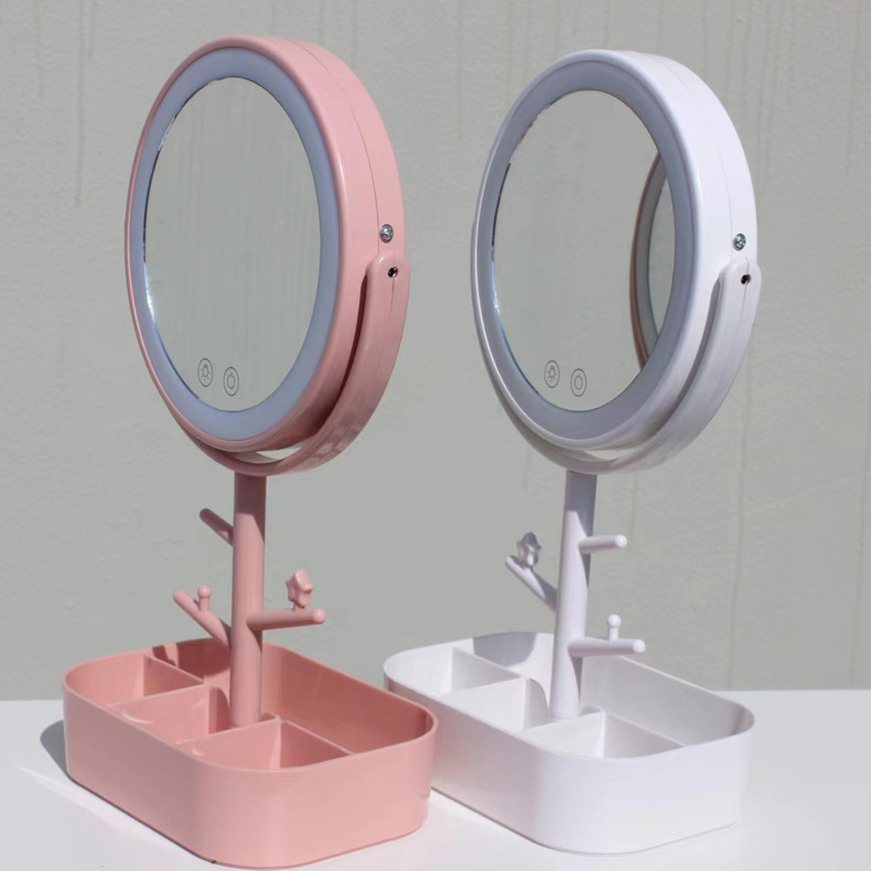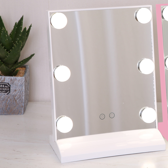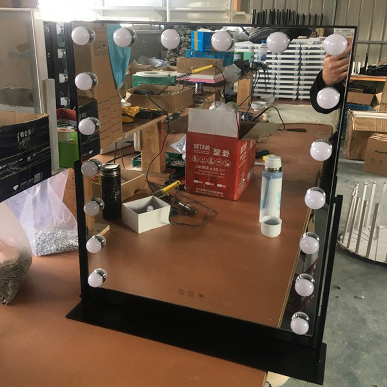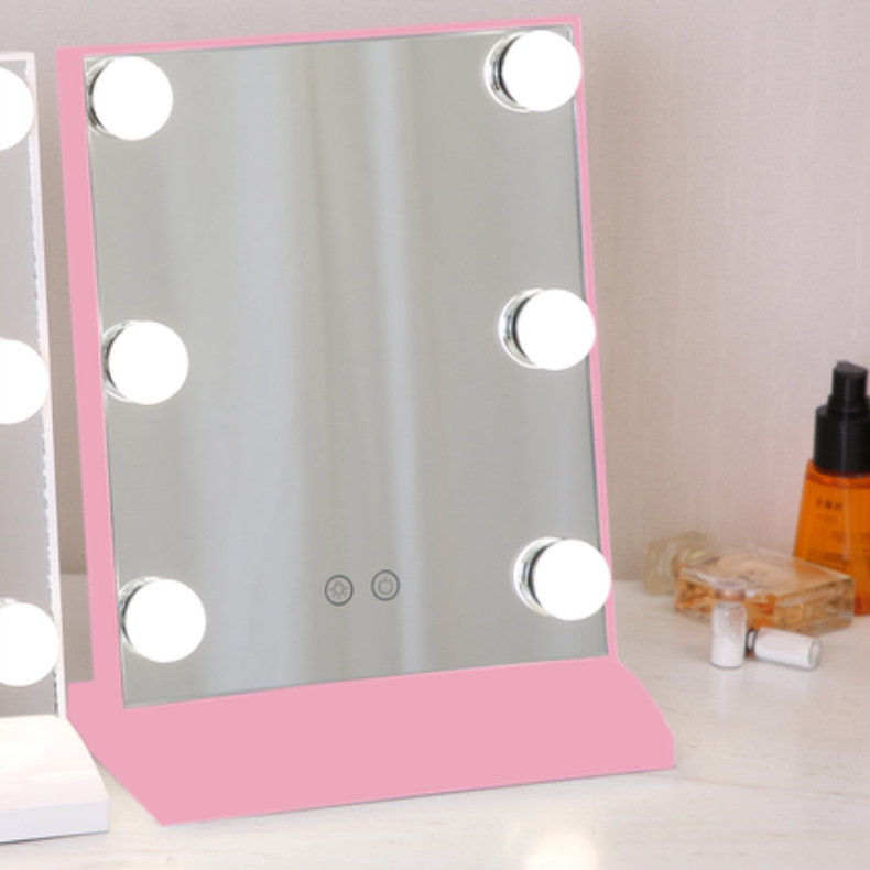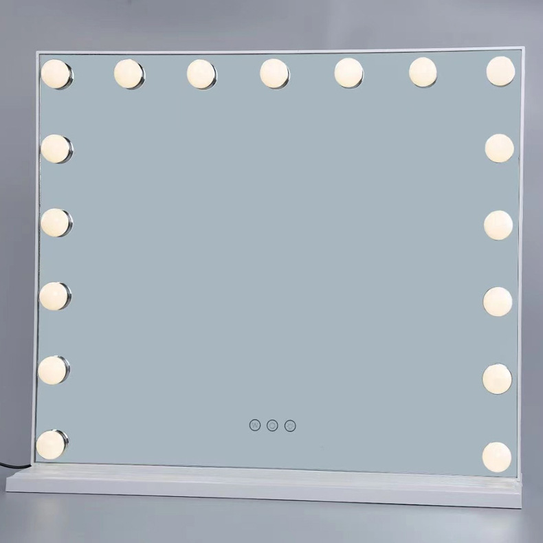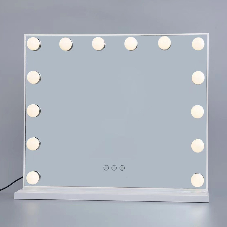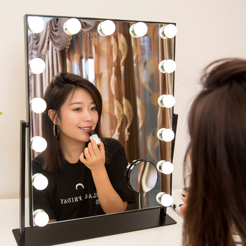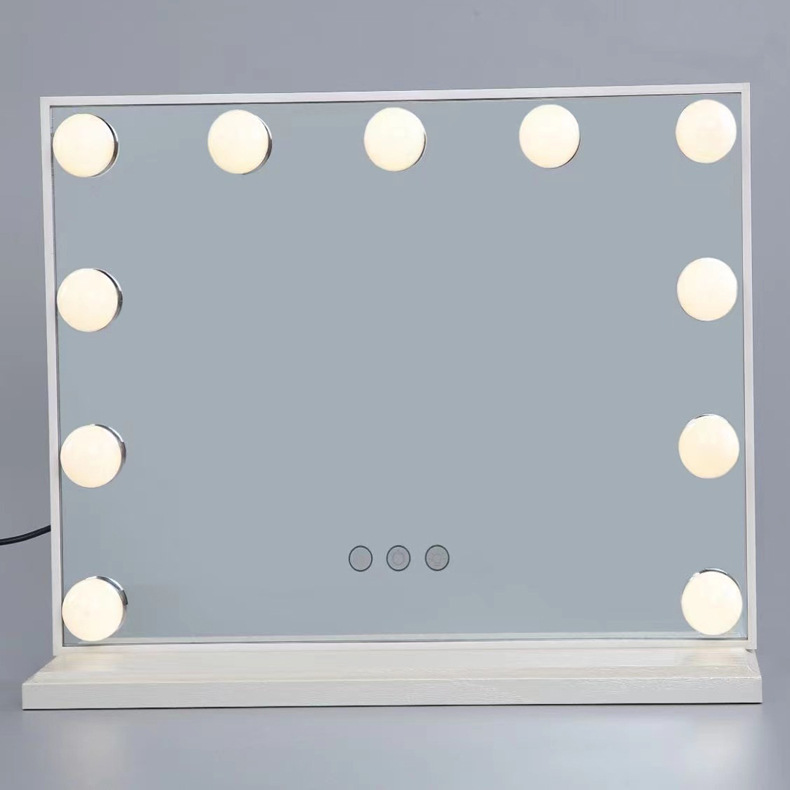 化妆镜LED带灯智能补光镜方形带灯泡台式梳妆镜 高清补光化妆镜子