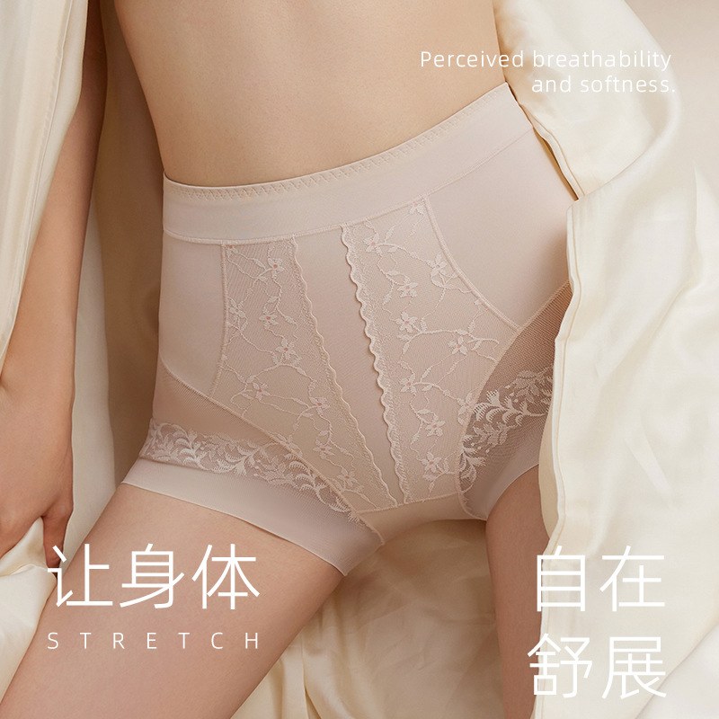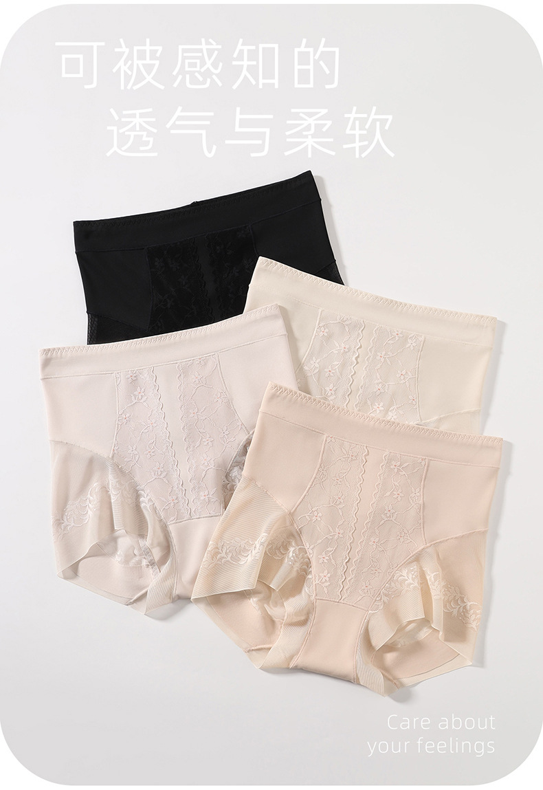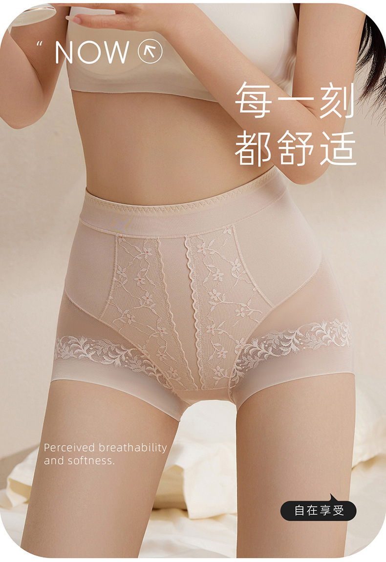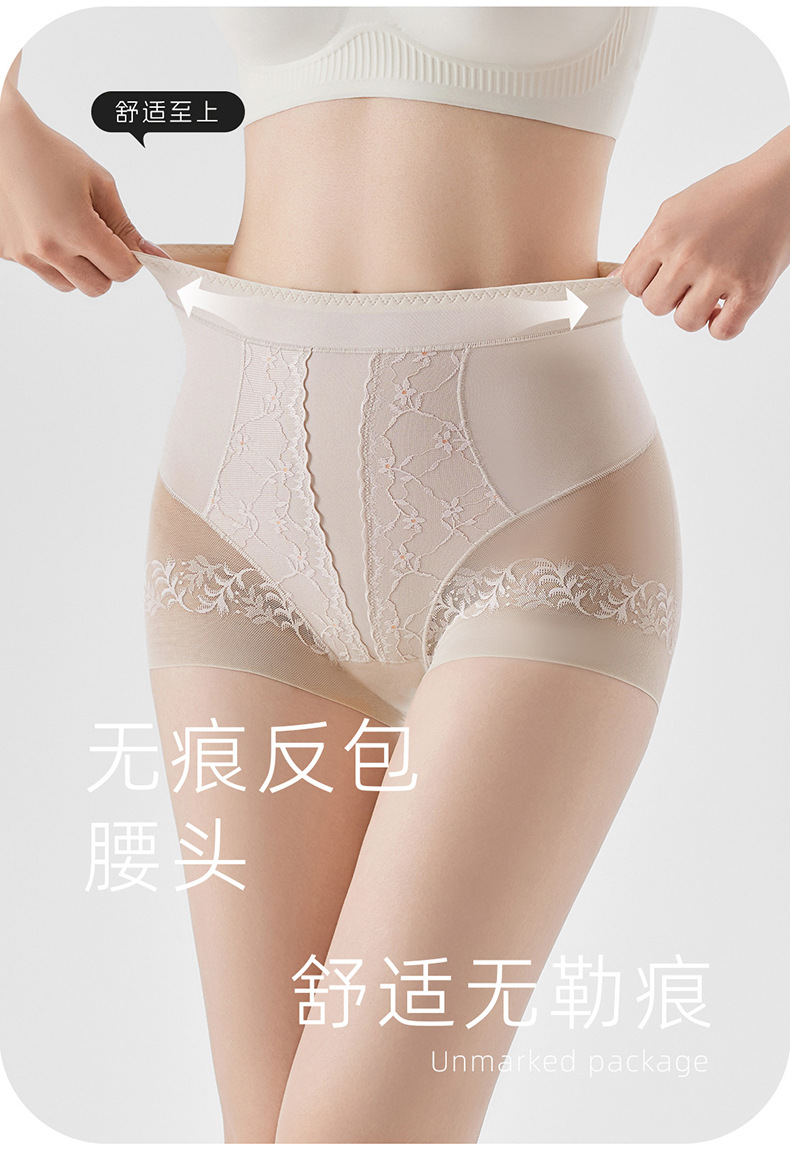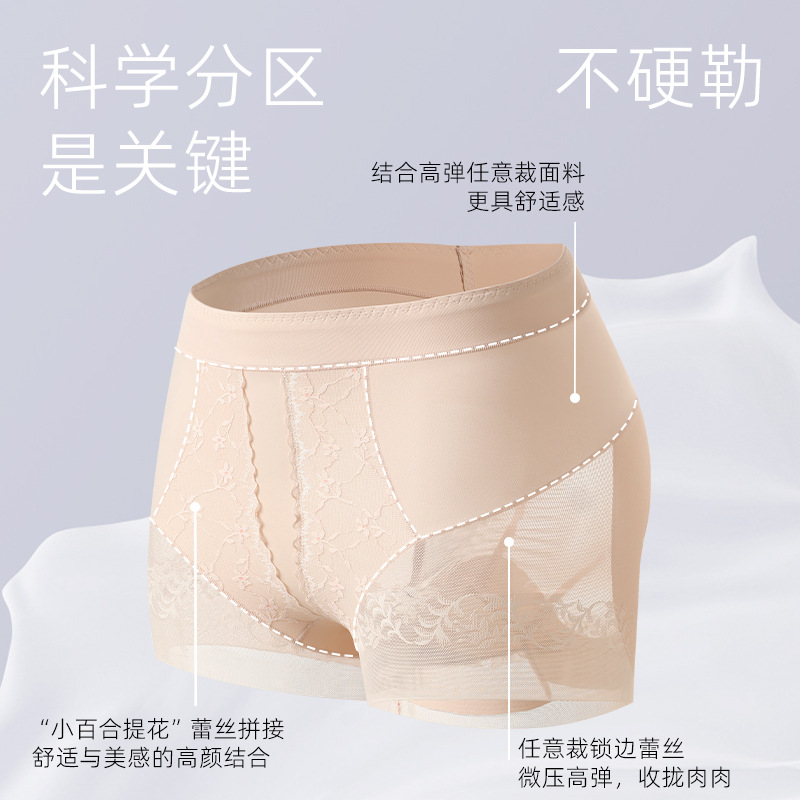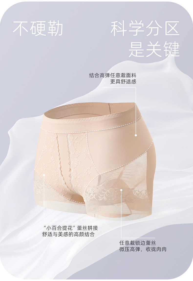 无痕蕾丝提花女塑身裤高腰收腹提臀长款桑蚕丝安全裤超薄打底